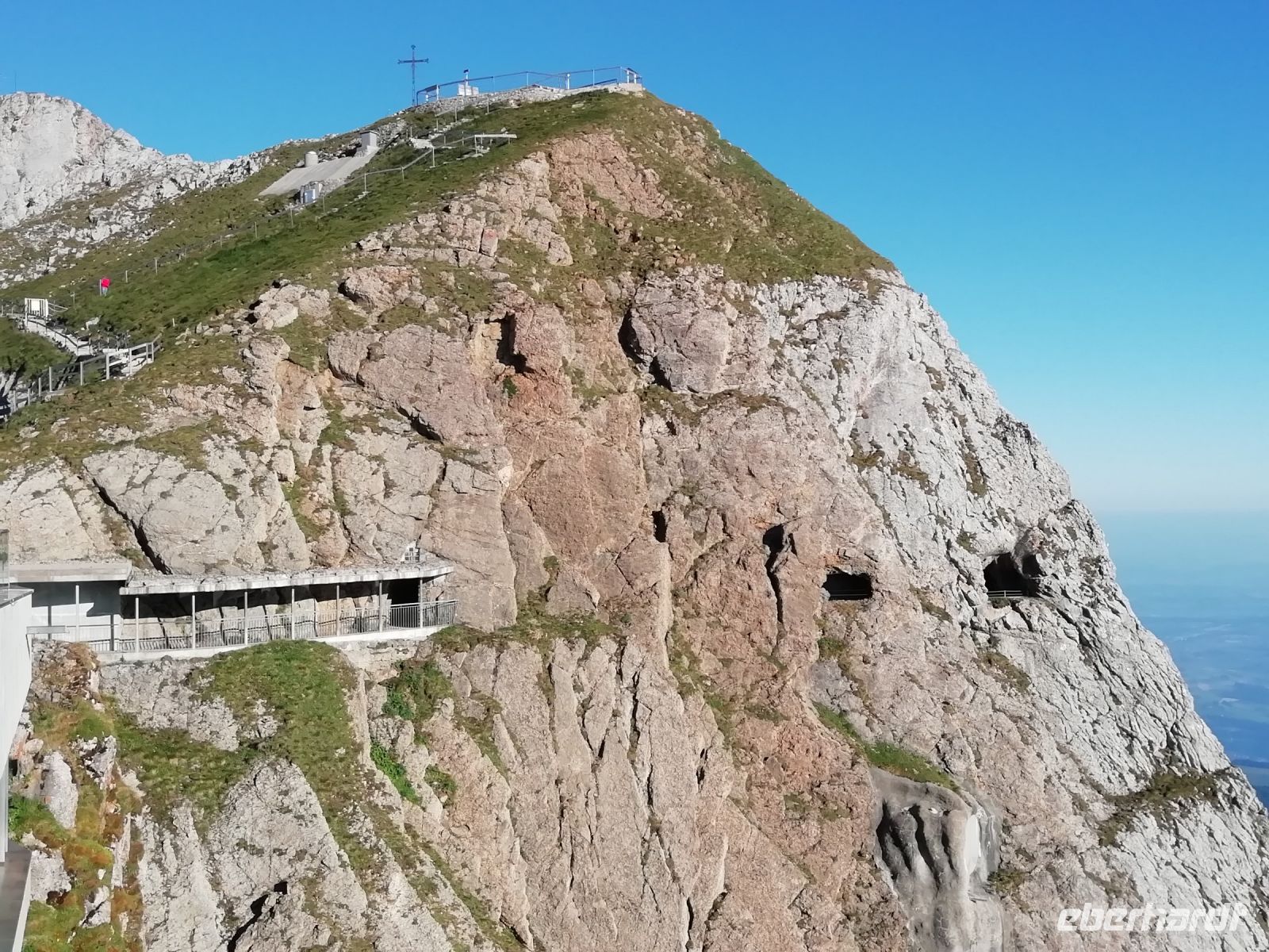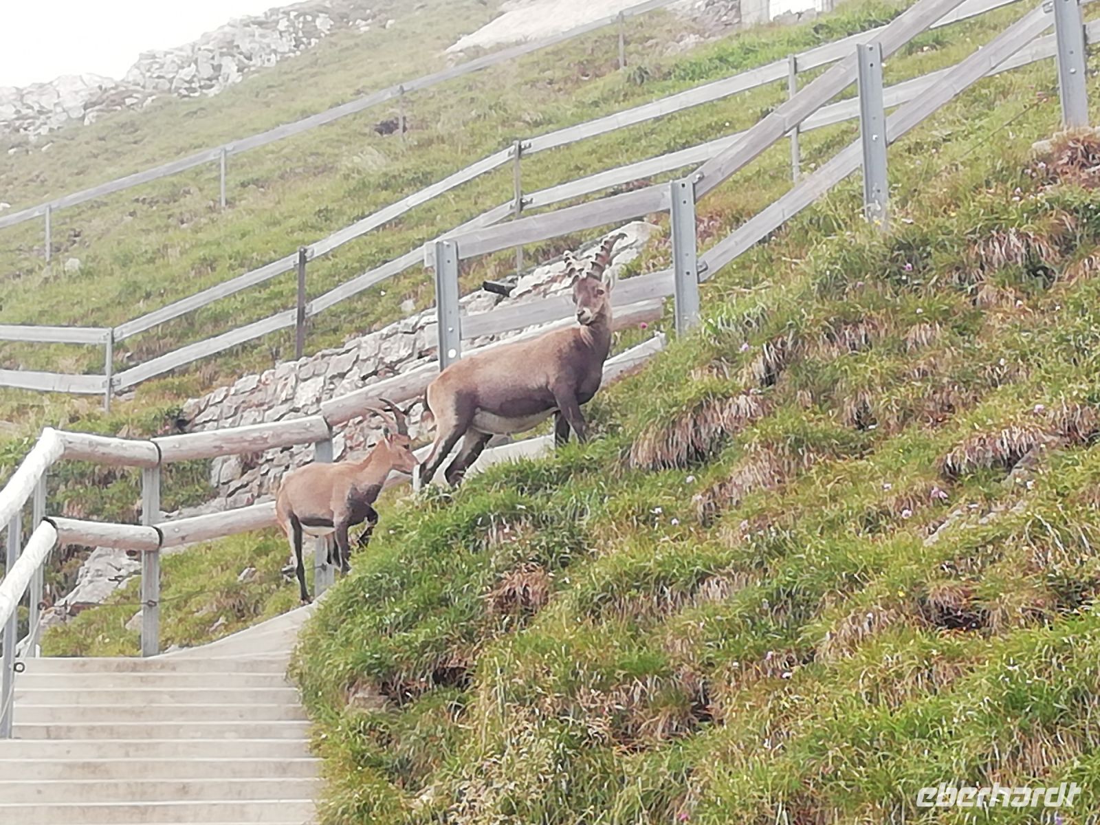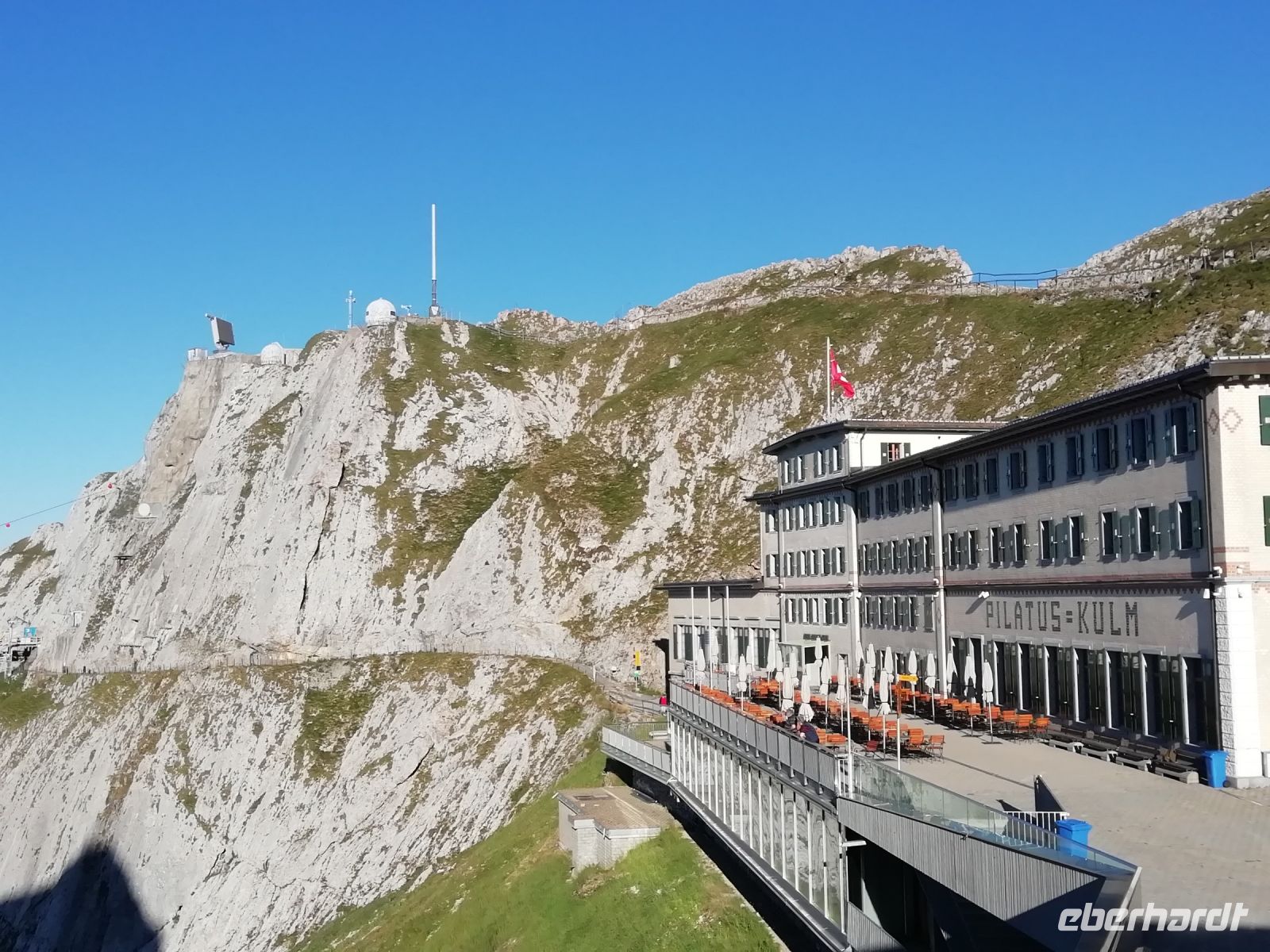 Von Zermatt müssen wir uns heute leider verabschieden. Gern wären wir noch länger geblieben. Mit dem Zug fahren wir nach Täsch, wo Frank mit dem Bus und den Koffern schon auf uns wartet. Durch das Mattertal und das Vispertal geht es hinunter zur Rhone und weiter durchs Goms. In Gletsch beginnt die Straße über den Grimselpass, die uns auf eine Höhe von 2165 Meter bringt. Auf der Passhöhe sind wir vom Nebel überrascht, war es doch in den letzten Tagen immer sonnig. Kurz unterhalb der Passhöhe machen wir dann unsere Mittagspause und beim nächsten Halt hat sich der Nebel schon wieder verzogen. Wir verkosten Schweizer Käse und Wurst und nehmen uns auch etwas für Zuhause mit. Dann legen wir noch einen Fotostopp mit Blick auf den Lungernsee ein. Am Nachmittag erreichen wir Alpnachstadt. Mit der steilsten Zahnradbahn der Welt fahren wir auf den Pilatus. Ein tolles Erlebnis! Oben angekommen beziehen wir unsere Zimmer mit den großen Panoramafenstern im Hotel „Bellevue“. Es folgt ein kleiner Erkundungsspaziergang auf dem Drachenweg, dann werden wir zum Apero und zum 3-Gang-Menü im Queen-Victoria-Saal des Hotels „Kulm“ erwartet. Danach besuchen uns noch die Steinböcke. Und einige Gäste erklimmen sogar das „Oberhaupt“.