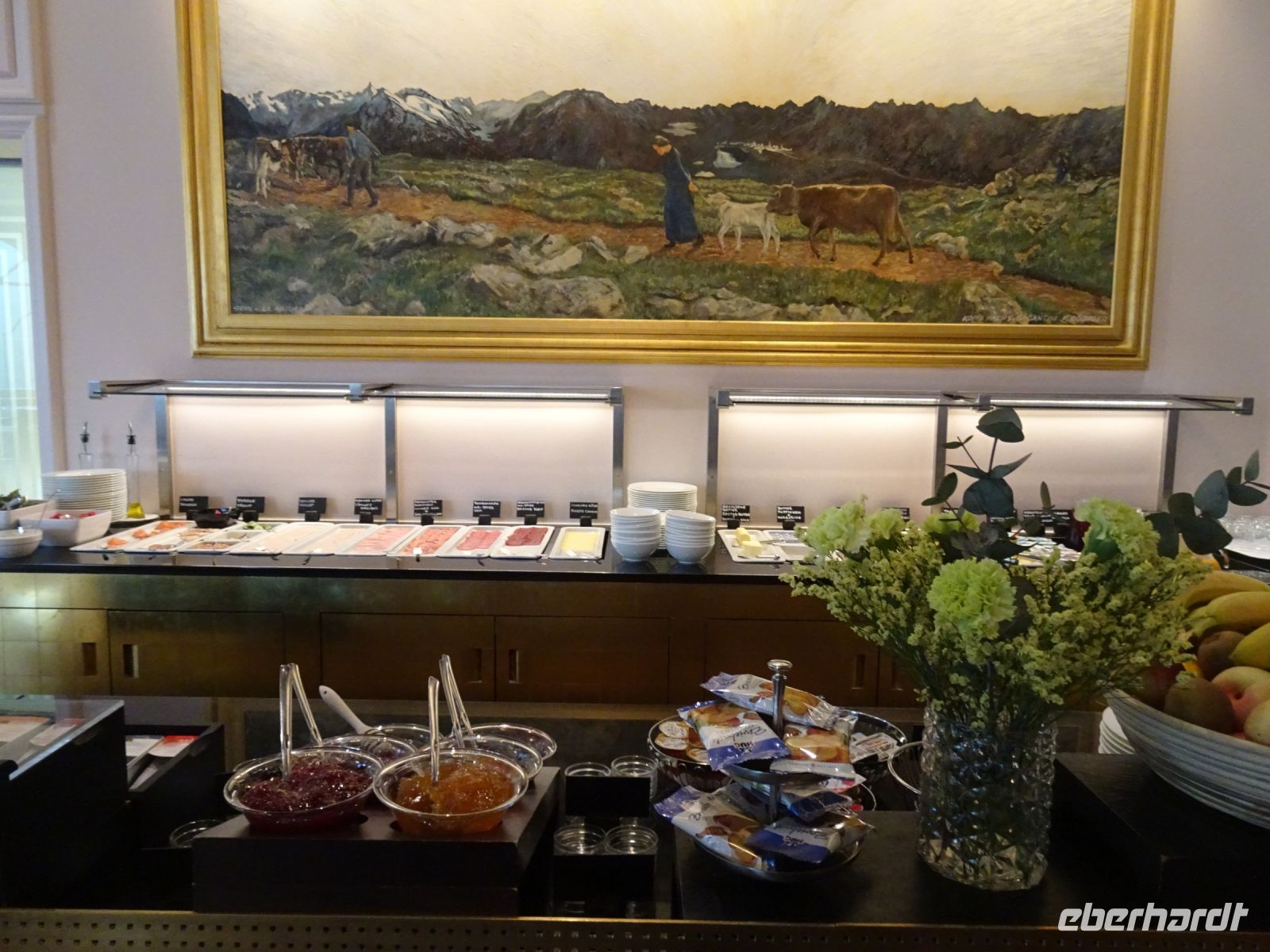 Wir fuhren über den Julierpass nach Oberengadin zu unserem in zentraler Lage von St. Moritz gelegenen 4 Sterne-Hotel "Schweizerhof". Ein seit über 120 Jahren existierendes traditionsreiches Haus mit beeindruckendem Entrée sowie einem grandiosen Speisesaal. Die hohe Qualität der Küche lernten wir beim dreigängigen Abendmenue und am nächsten Tag bei einem sehr reichhaltigen Frühstücksbuffet kennen und schätzen.