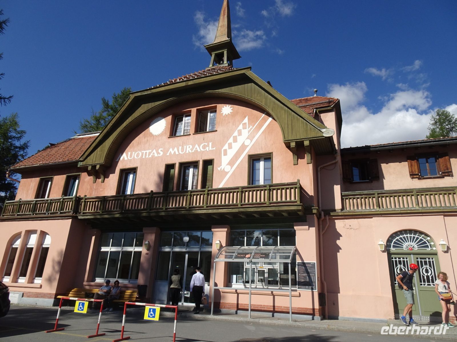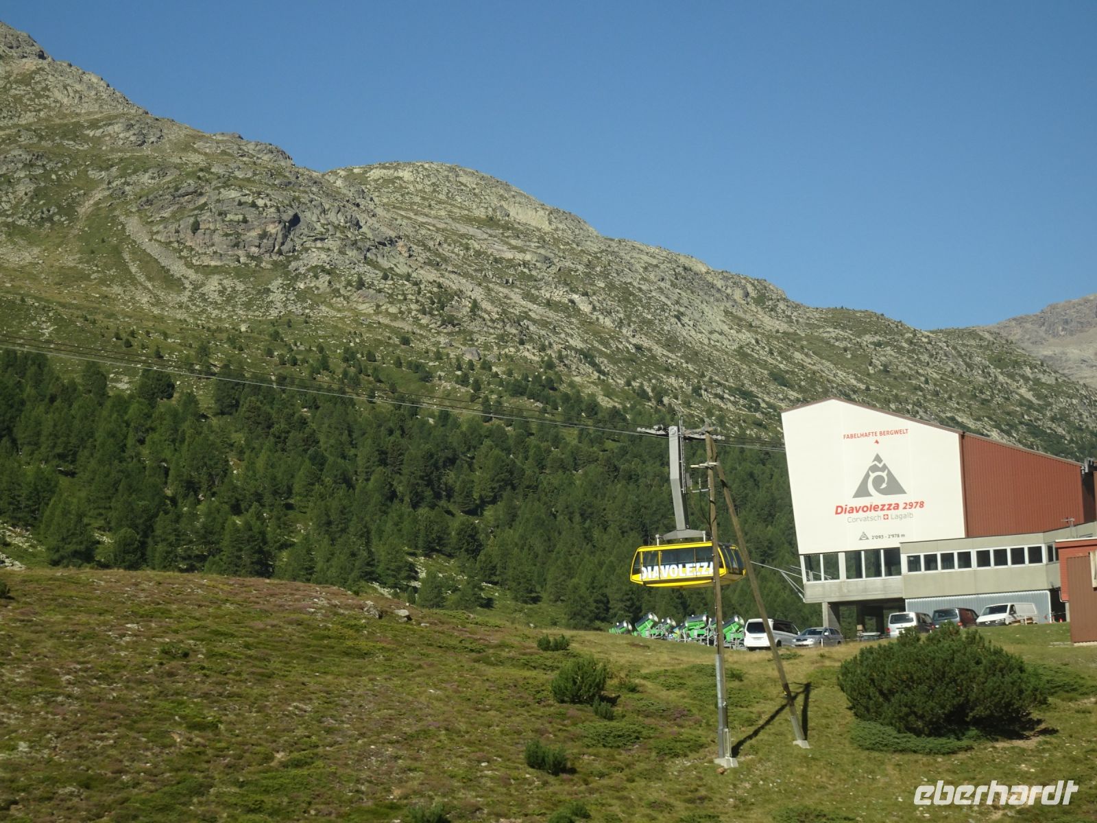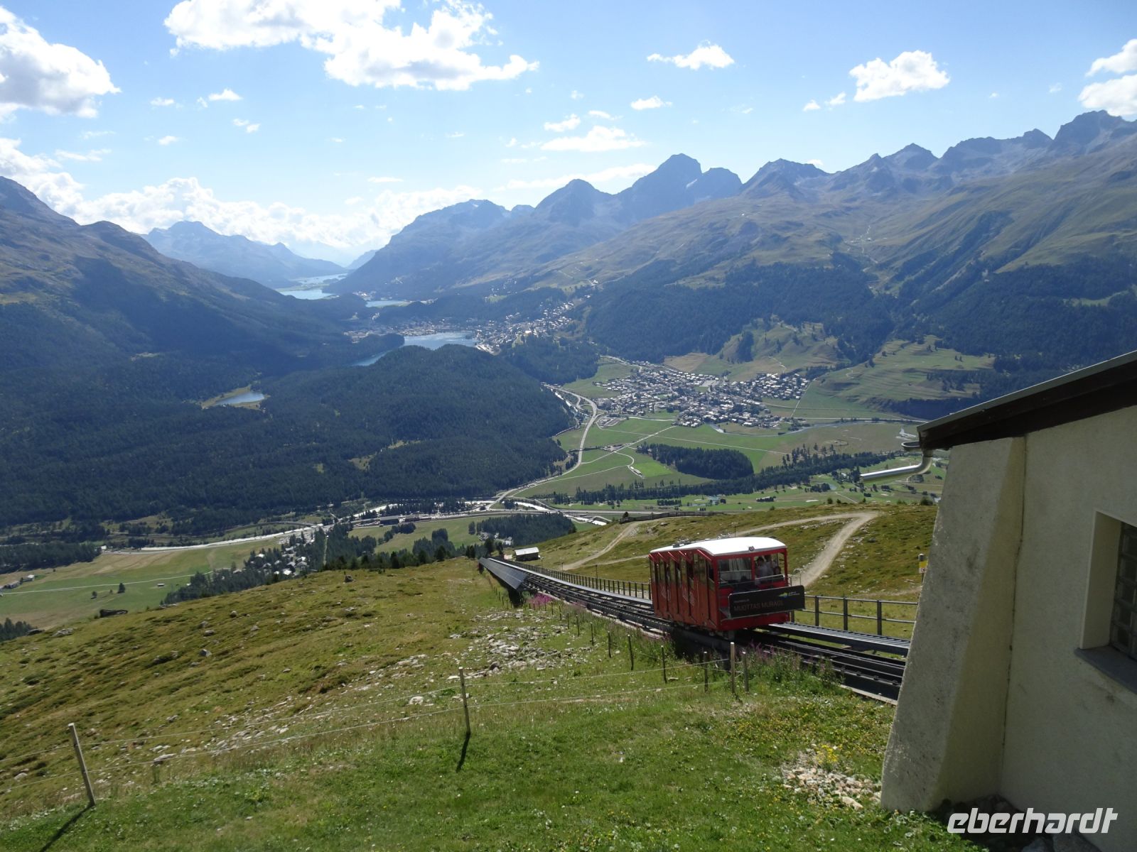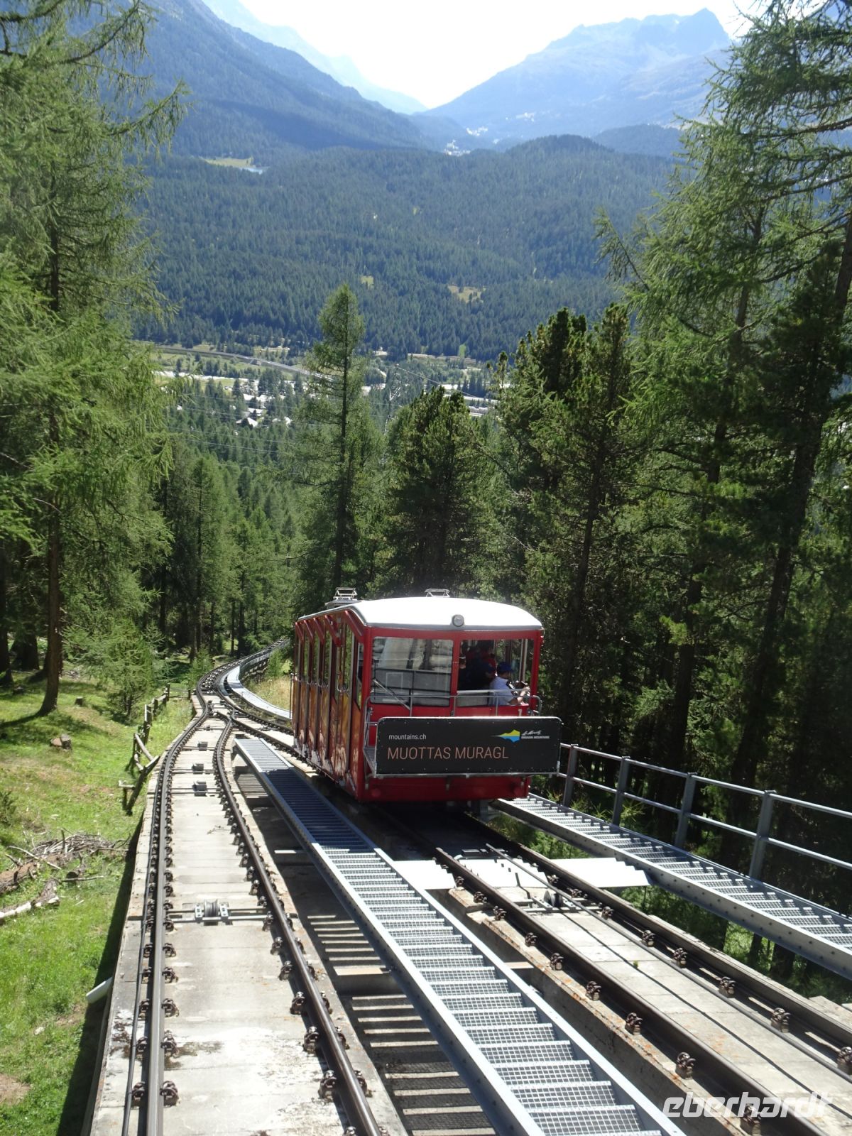 Auf der Rückfahrt mit unserem Busfahrer Jan über den Bernina-Pass noch einige Fotostopps und dann war schon unser nächstes Ziel erreicht - die Talstation der ältesten Standseilbahn zum Mouttas Muragl - dem Künstlerberg bei St. Moritz.