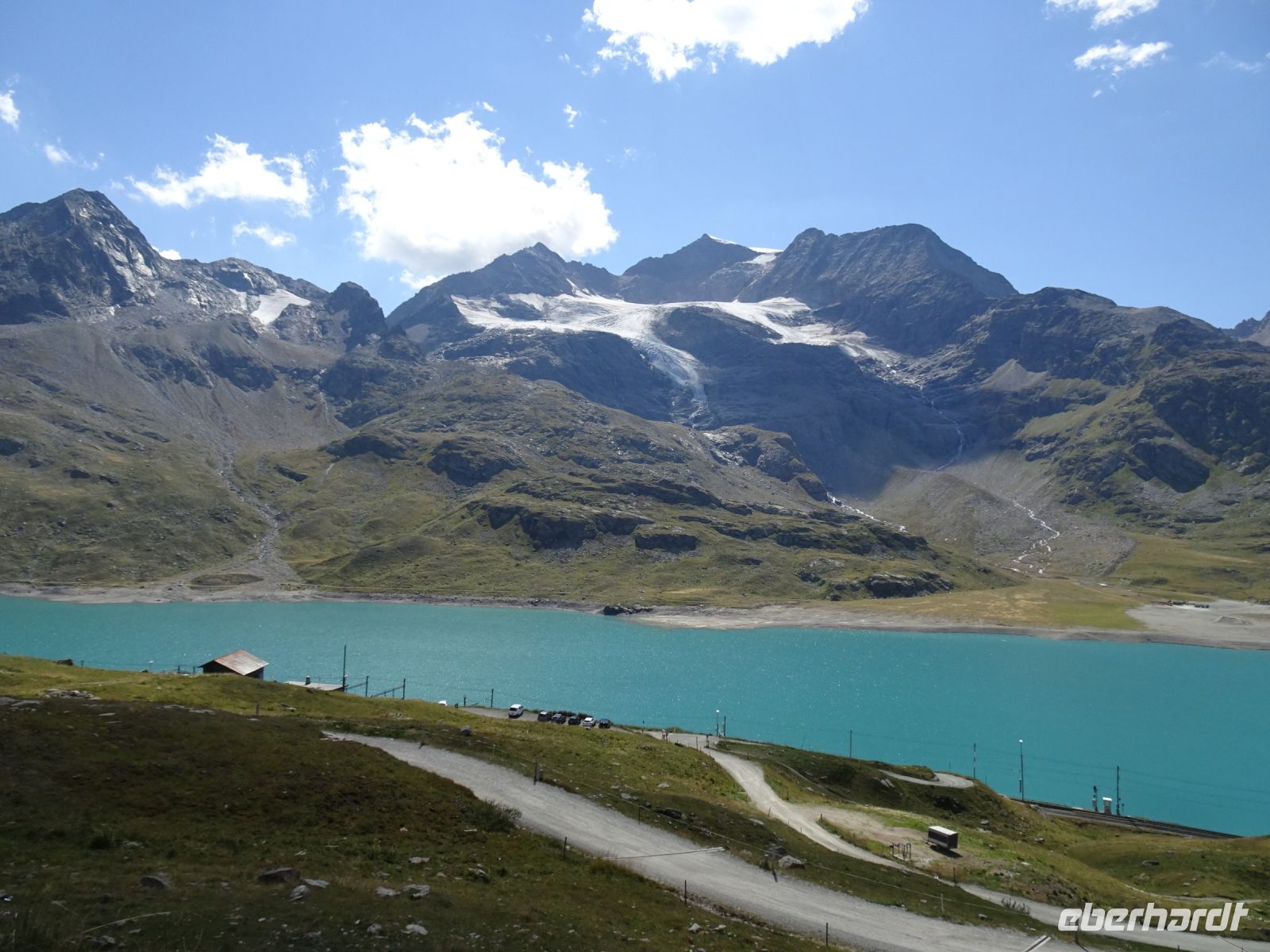 Vorbei am Morteratschgletscher, den wir am Nachmittag noch bei einem Fotostopp ablichten konnten, über die Wasserscheide zwischen Nordsee und Adriatischem Meer ging es mit Blick auf den Piz Bernina und vorbei am Weissen See in einer kurvenreichen Fahrt durch das Puschlav nach Tirano. Planäßiger Fotohalt an der Station Alp Grüm mit Blick auf den sich immer weiter zurückziehenden Palügletscher - es ist zum Jammern!!