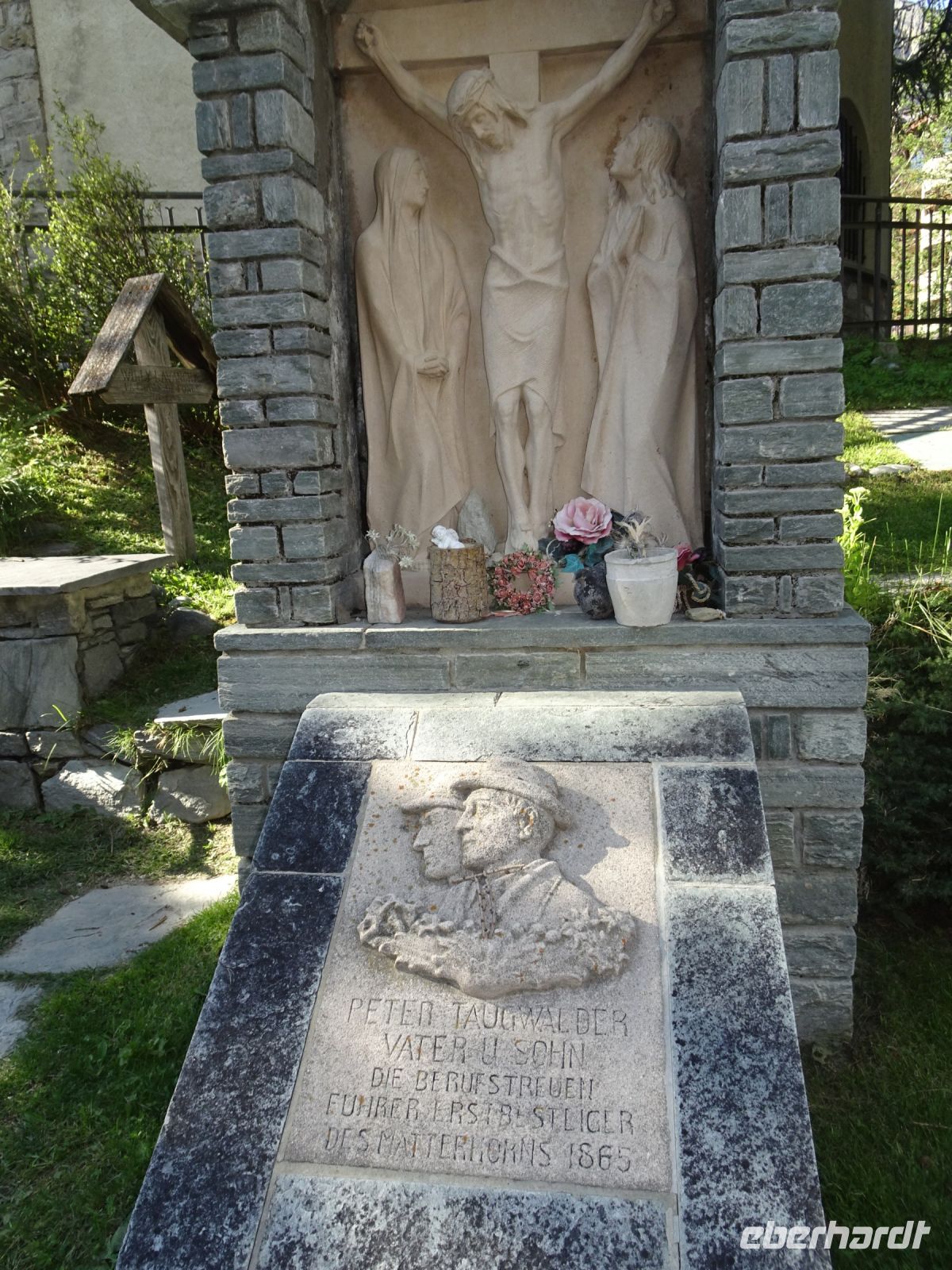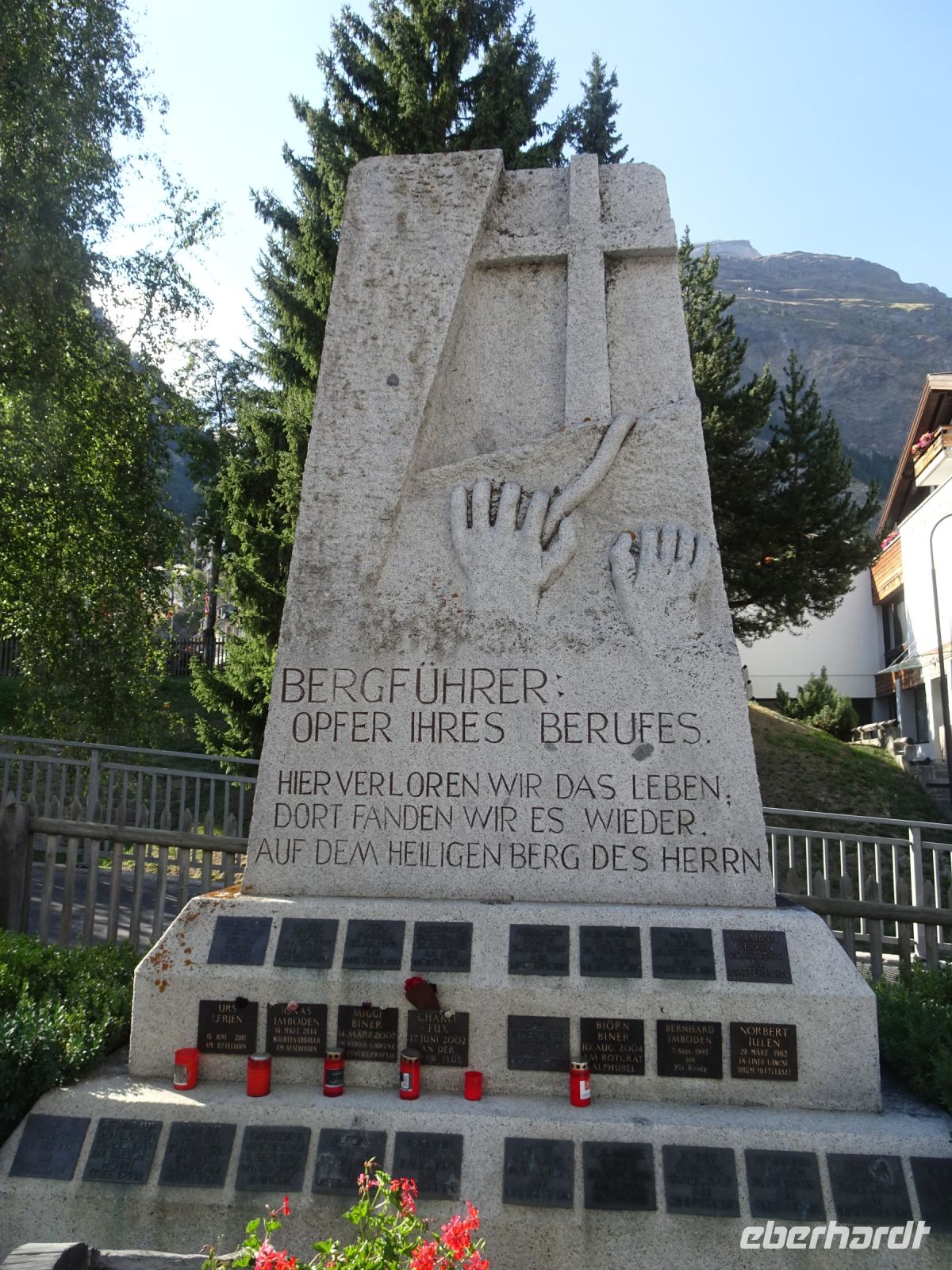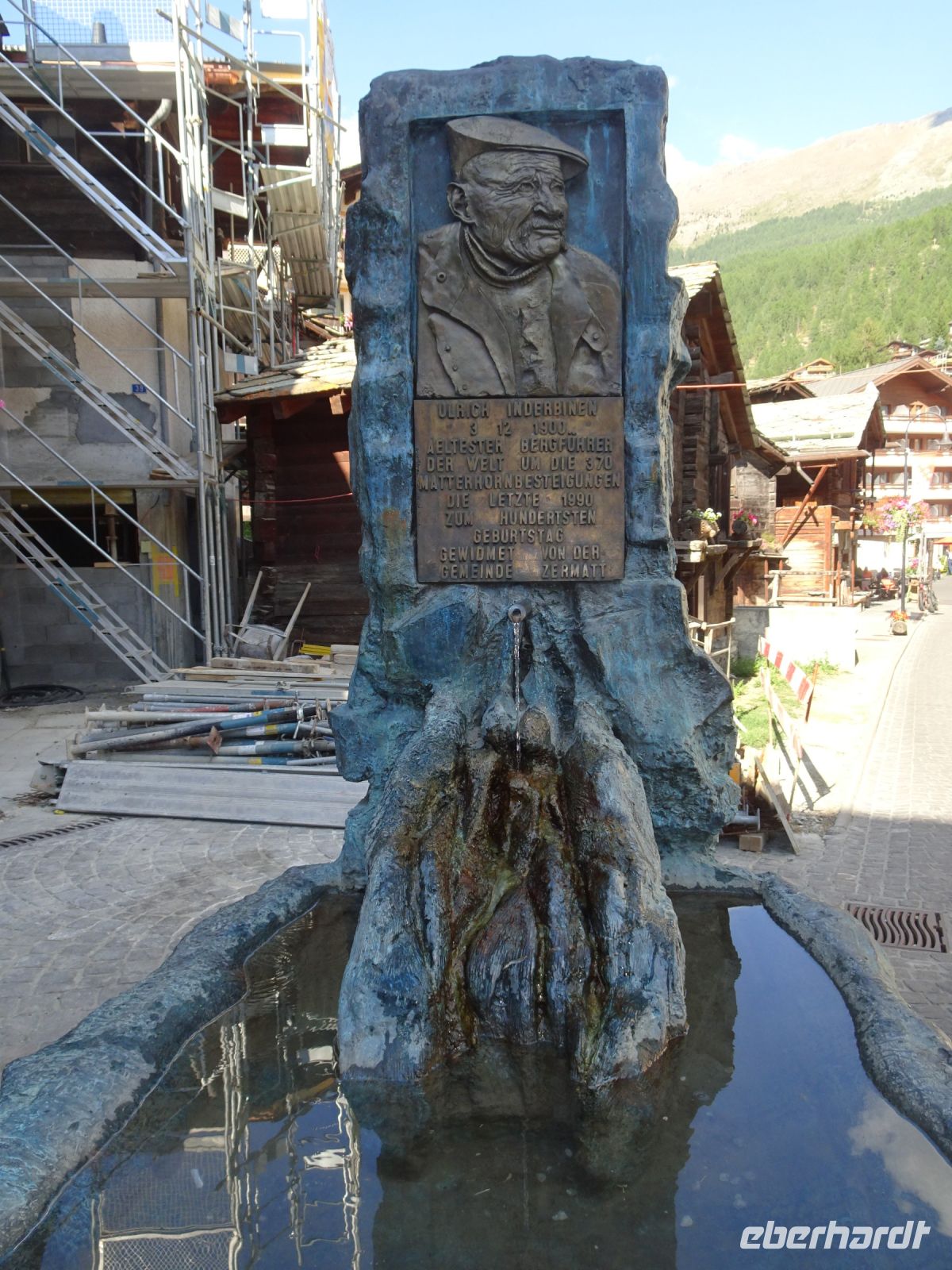 Aber auch in Zermatt gab es Interssantes: unser Reiseleiter hatte um 17 Uhr zu einer kleinen Ortsführung eingeladen, der einige Reisegäste folgten: Blick von der Mattervispa auf das Matterhorn, historischer Dorfkern mit moderner Galerie und Gedenkbrunnen für einen lokalen Bergführer, Bergsteigerfriedhof, Bergführerfriedhof, Bahnhofstraße mit Gedenkkacheln, Matterhornmuseum.... und natürlich nach Rekonstruktion der Murmeltierbrunnen.