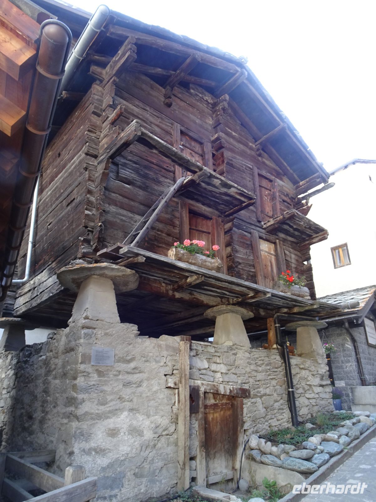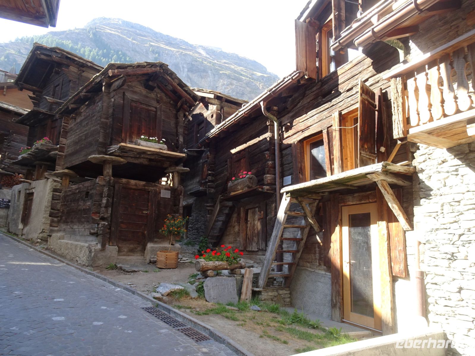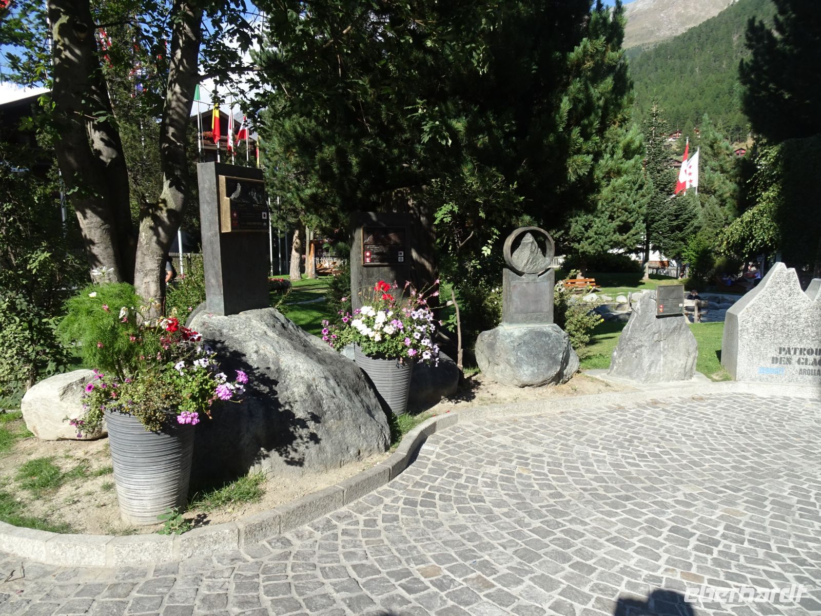 Aber auch in Zermatt gab es Interssantes: unser Reiseleiter hatte um 17 Uhr zu einer kleinen Ortsführung eingeladen, der einige Reisegäste folgten: Blick von der Mattervispa auf das Matterhorn, historischer Dorfkern mit moderner Galerie und Gedenkbrunnen für einen lokalen Bergführer, Bergsteigerfriedhof, Bergführerfriedhof, Bahnhofstraße mit Gedenkkacheln, Matterhornmuseum.... und natürlich nach Rekonstruktion der Murmeltierbrunnen.