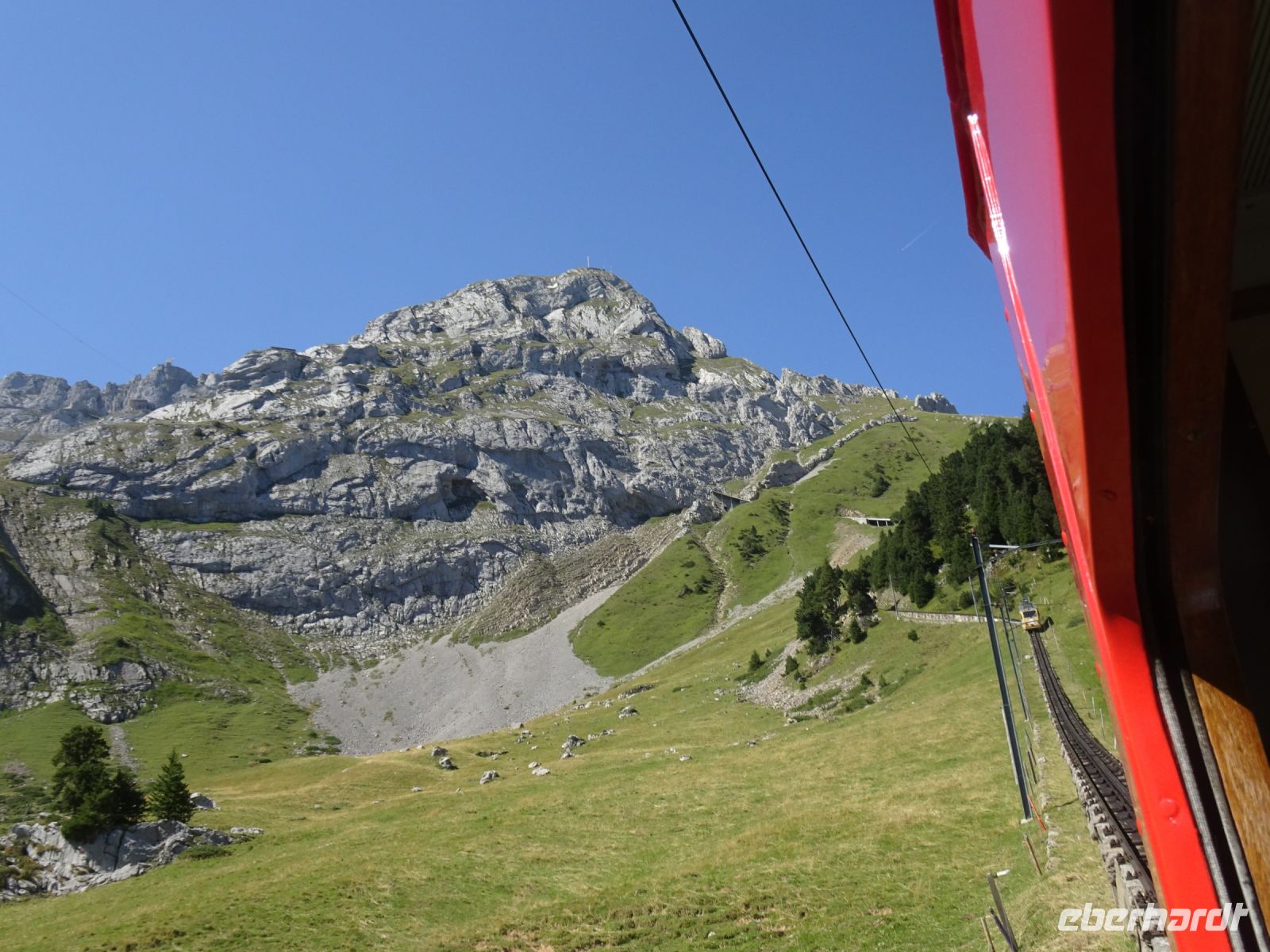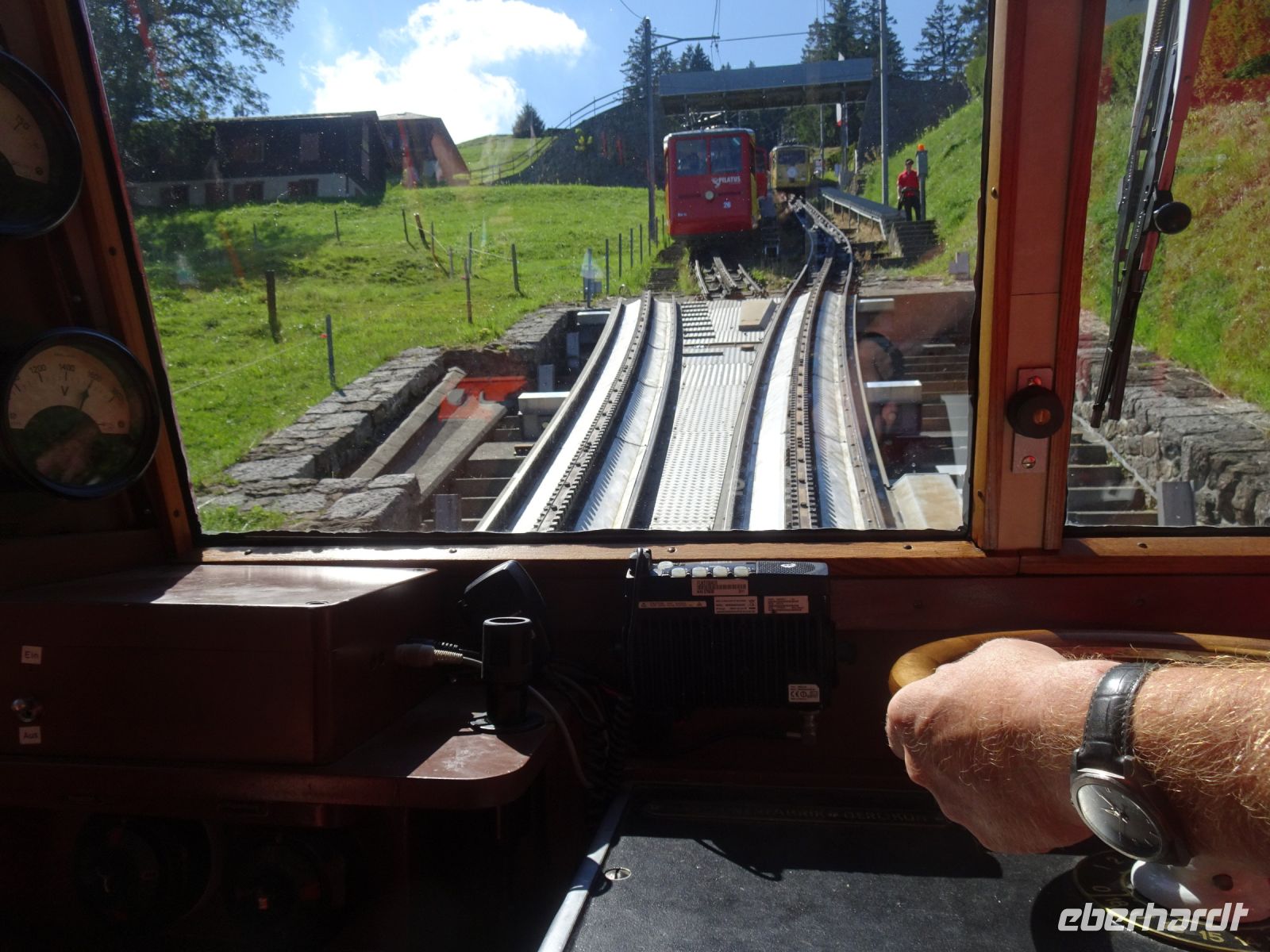 Die Pilatusbahn - eine technische Meisterleistung bei bis zu 48% Steigung. Die derzeitige Generation der Fahrzeuge aus 1938 soll in Kürze durch moderne Fahrzeuge ersetzt werden, ein Testexemplar haben wir schon gesehen.