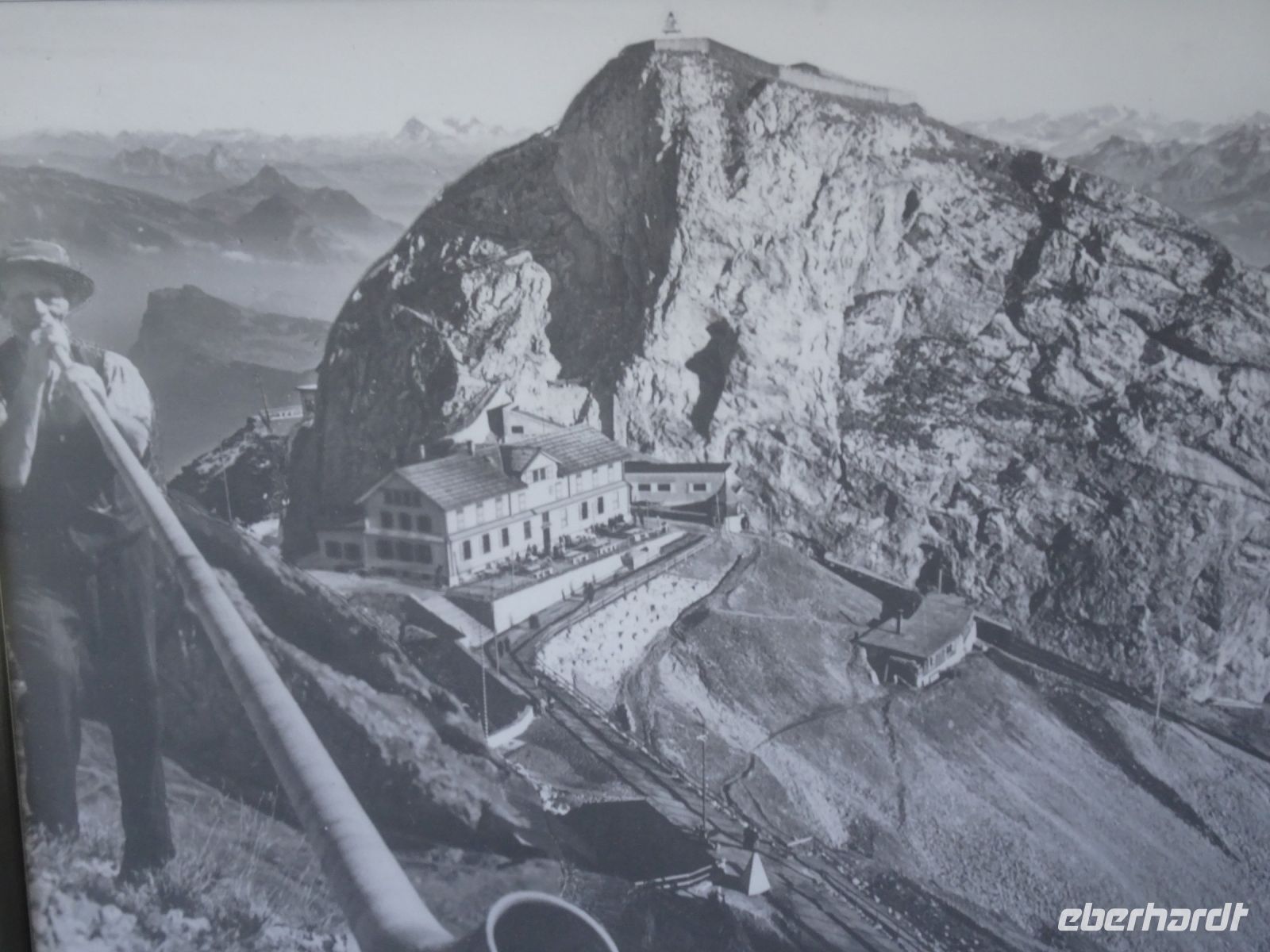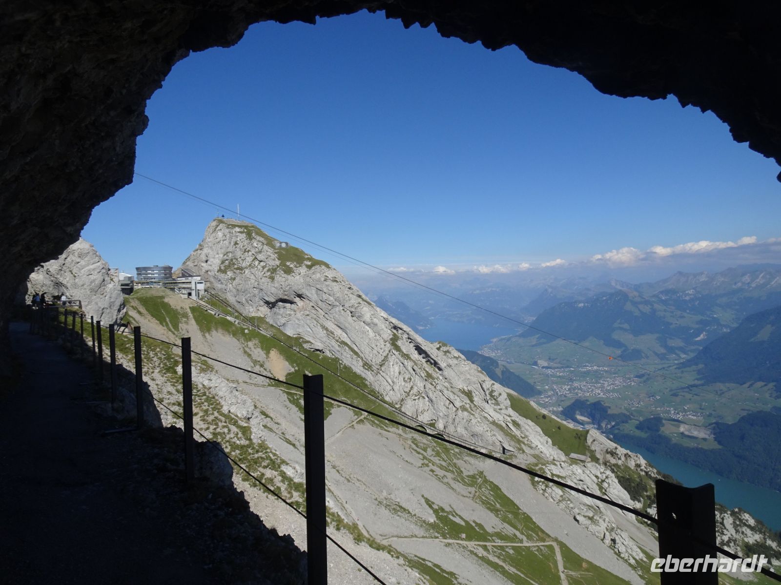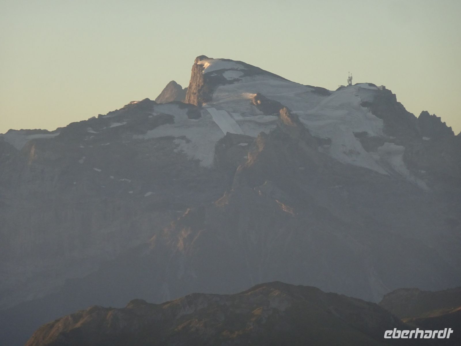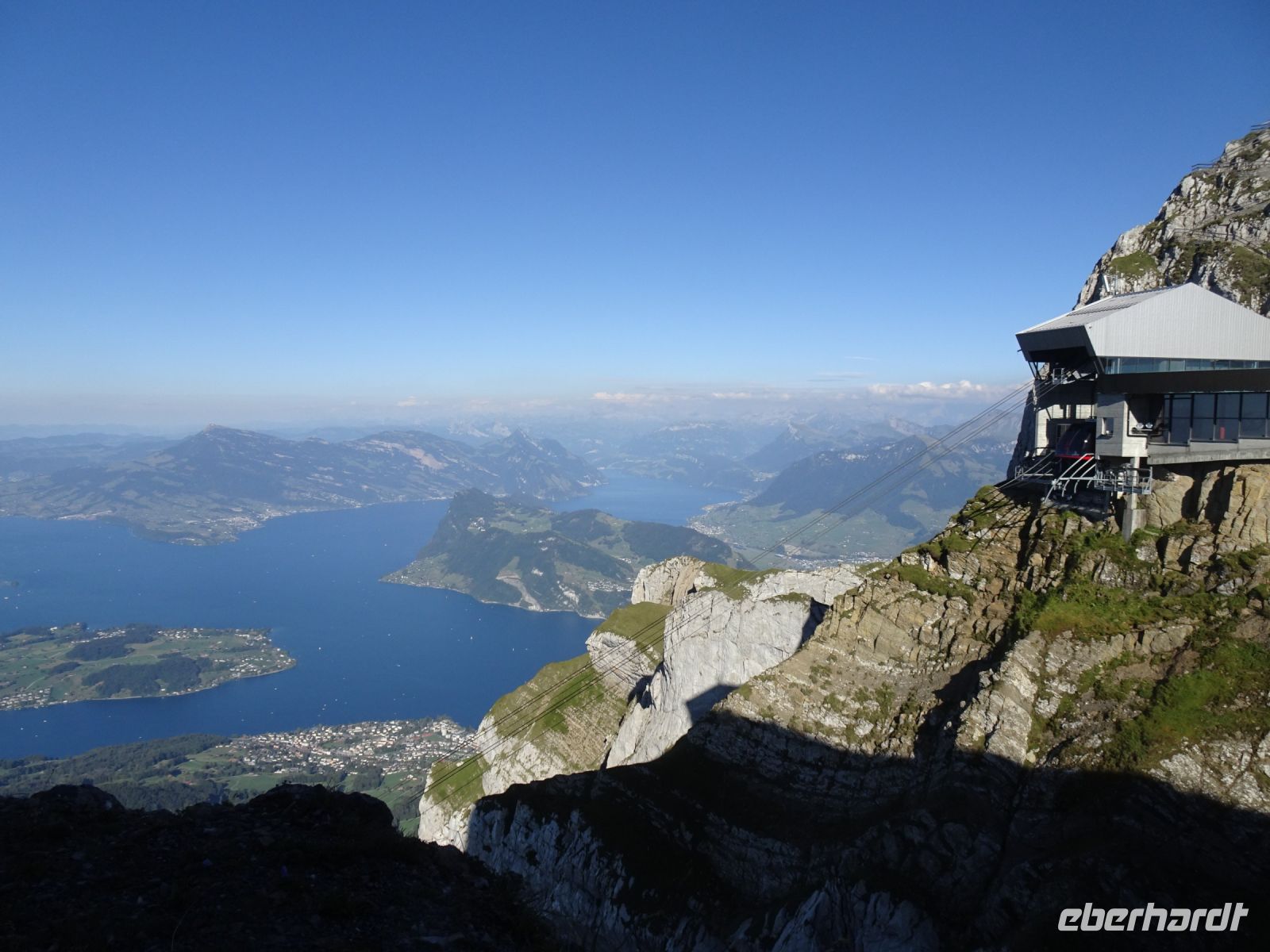 Sonnenaufgang 6:10 Uhr - einige beobachteten dies von ihrem Zimmer aus. Da das Hotel rund gebaut wurde, hatten alle beste Aussichten. Auf dem "Esel" selbst zelebrierten junge Leute eien Sonnenaufgangsparty - klasse Idee und bei klarer Sicht einmalig. Selbst bis zur Gipfelgruppe der Berner Alpen mit Jungfrau, Eiger und Mönch hatten wir Sicht. Und natürlich zum nahegelegenen Titlis. Vierwaldstätterr See und Luzern am Morgen - einmalige Bilder!