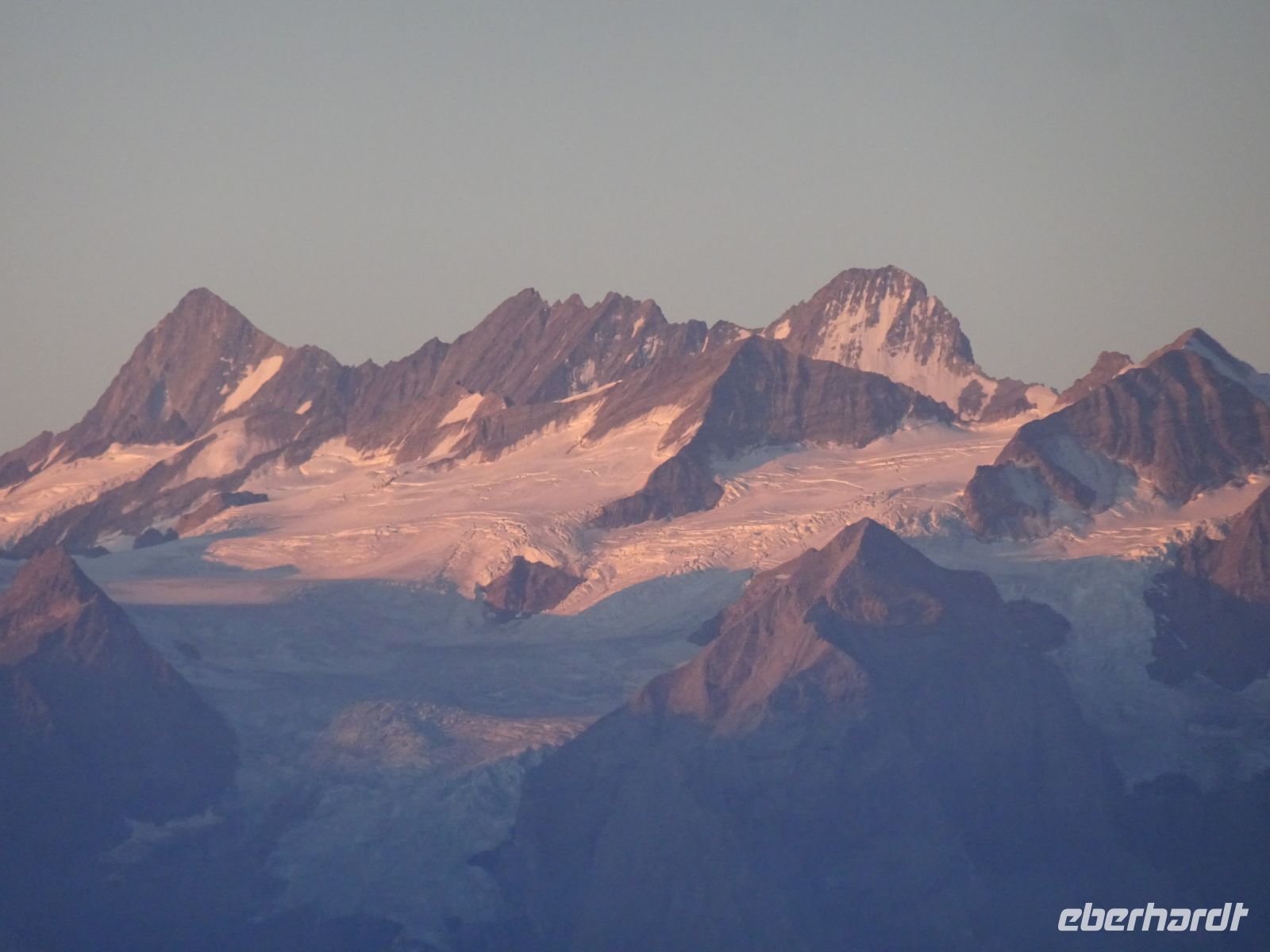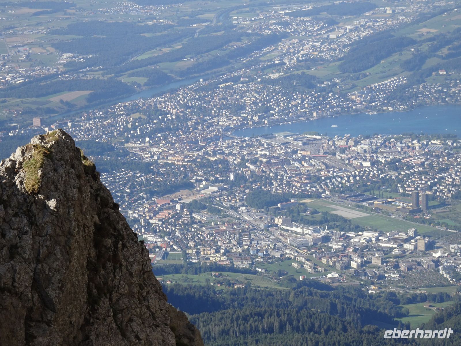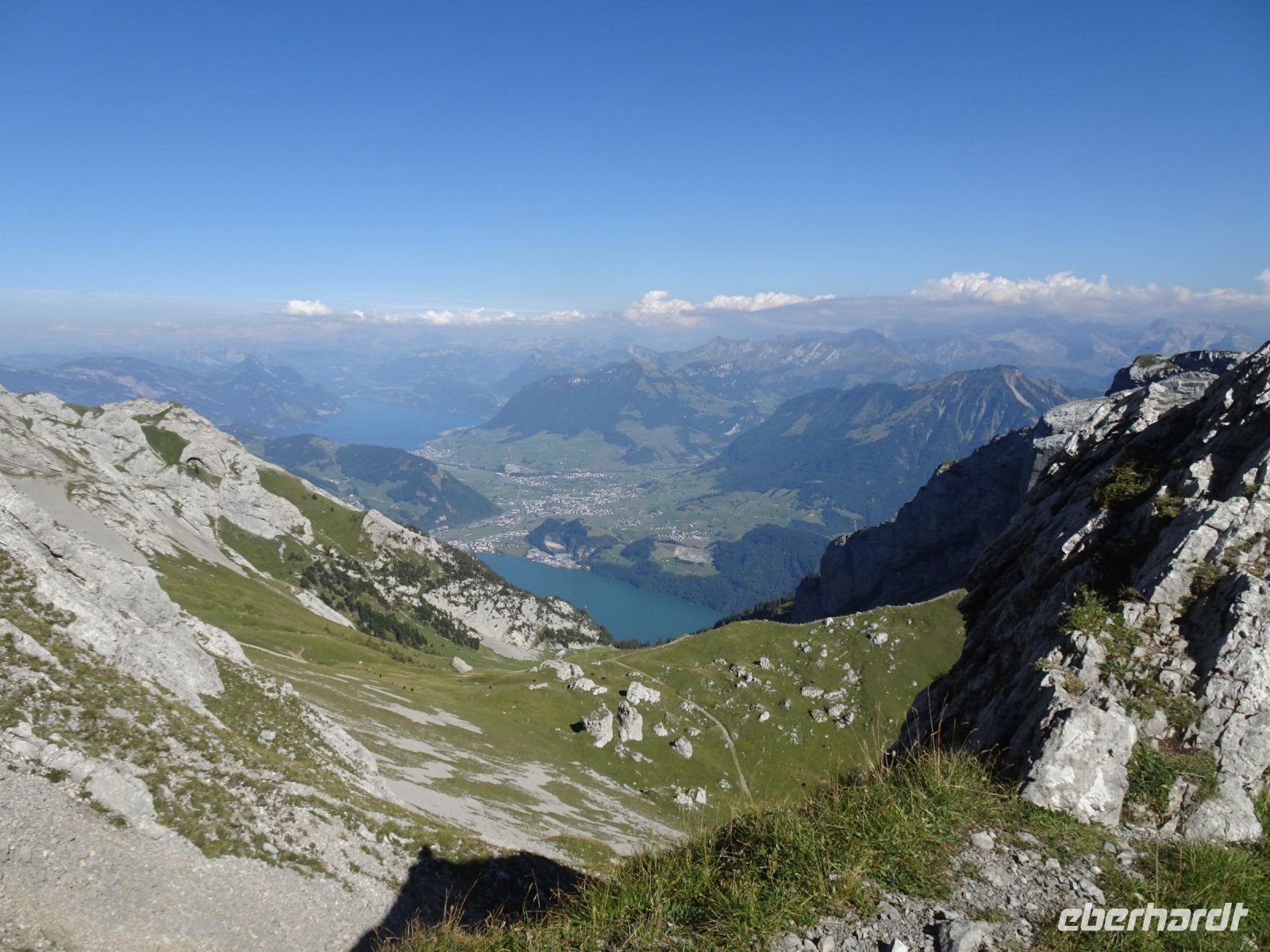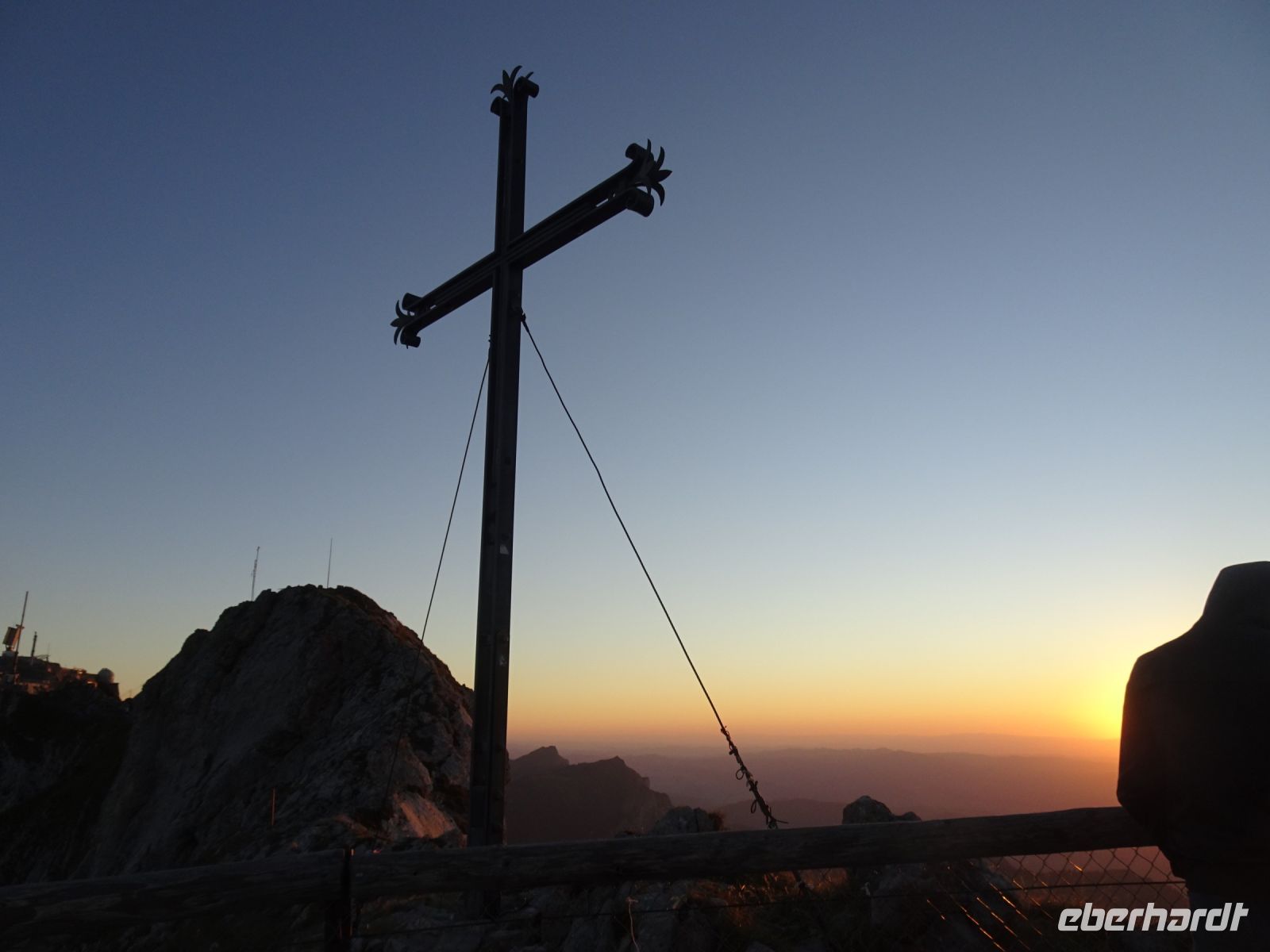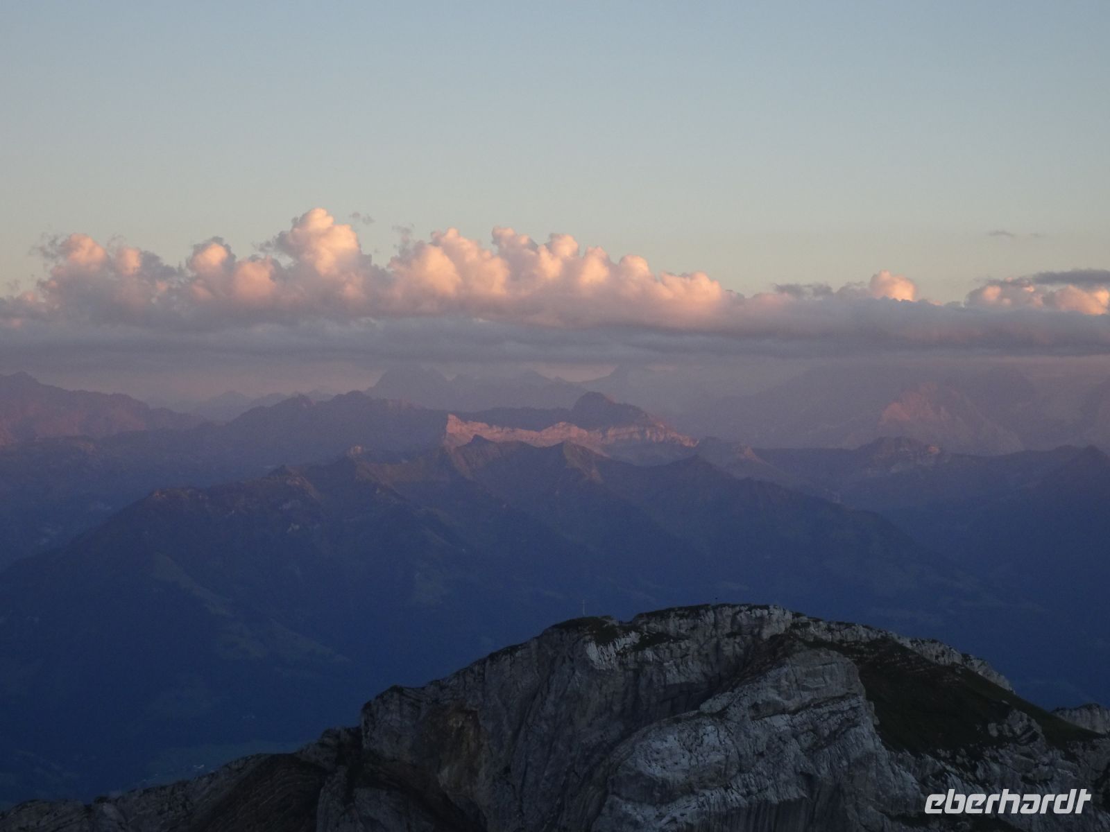 Sonnenaufgang 6:10 Uhr - einige beobachteten dies von ihrem Zimmer aus. Da das Hotel rund gebaut wurde, hatten alle beste Aussichten. Auf dem "Esel" selbst zelebrierten junge Leute eien Sonnenaufgangsparty - klasse Idee und bei klarer Sicht einmalig. Selbst bis zur Gipfelgruppe der Berner Alpen mit Jungfrau, Eiger und Mönch hatten wir Sicht. Und natürlich zum nahegelegenen Titlis. Vierwaldstätterr See und Luzern am Morgen - einmalige Bilder!
