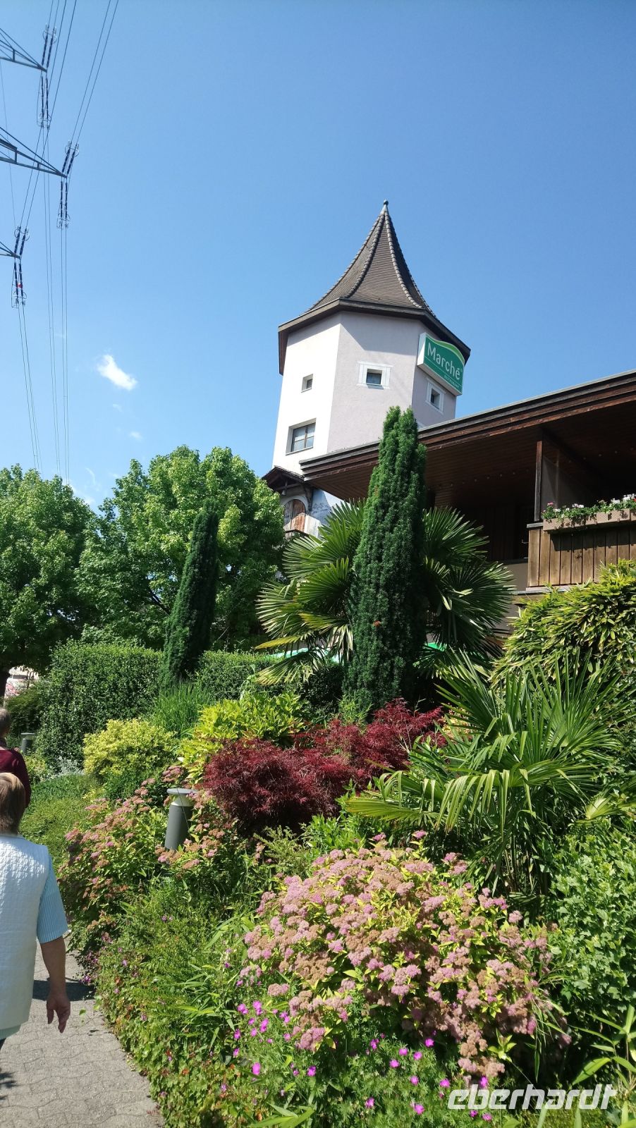 Nach unserem frühen Start im Raum Dresden brachte uns unser Busfahrer André Nagel nach verschiedenen Zwischenhalten, zuletzt in Lindau am Bodensee, sicher in die Schweiz. Wir trafen Punkt 17 Uhr am Rasthof Heidiland ein und hatten so die Gelegenheit, von Heidi im Turm des Rasthofes begrüßt zu werden.