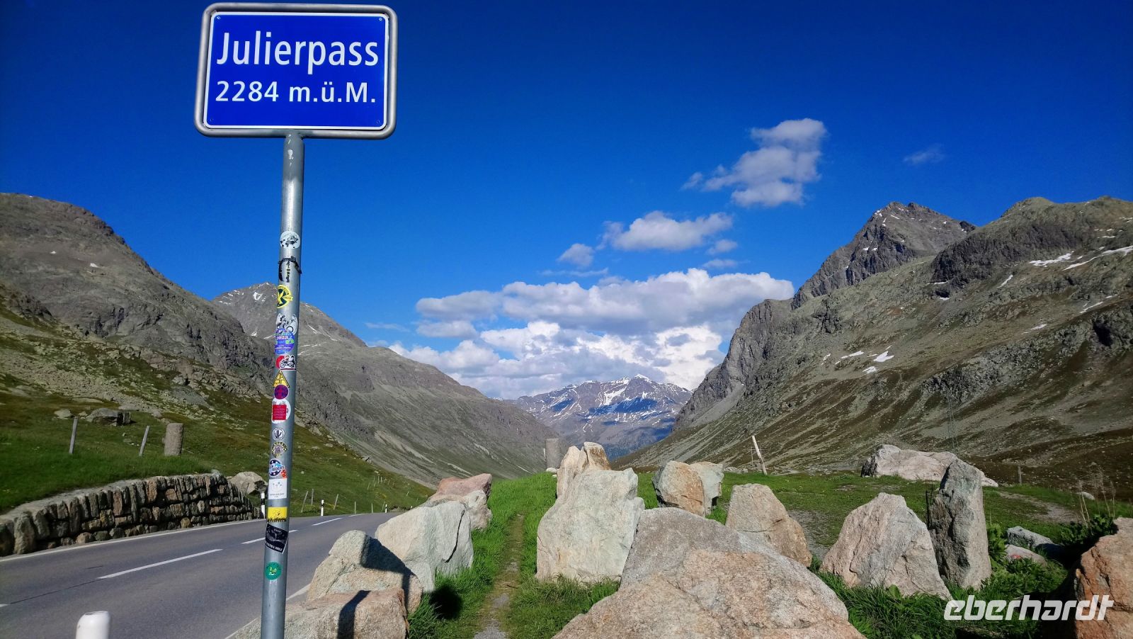 Vorbei am Rheinzusammenfluss bei Reichenau, der Viamala, der Solisbrücke, dem Ort Tiefencastel und dem Marmarastausee ging es zum Julierpass. Gemsen im Berg begrüßten uns, wir hatten einen wunderbaren Blick in's Oberengadin. Rechtzeitig vor dem Abendessen erreichten wir unser seit 1876 bestehendes Hotel "Edelweiss" in Sils-Maria und konnten bei markantem Arven- (oder auch Zirben-)duft in unsere Zimmer einschecken. Im Jugendstilsaal des Grand Restaurant erwartete uns unser 4gängiges Abendmenü - à la minute-zubereitet - Spitzengastronomie!