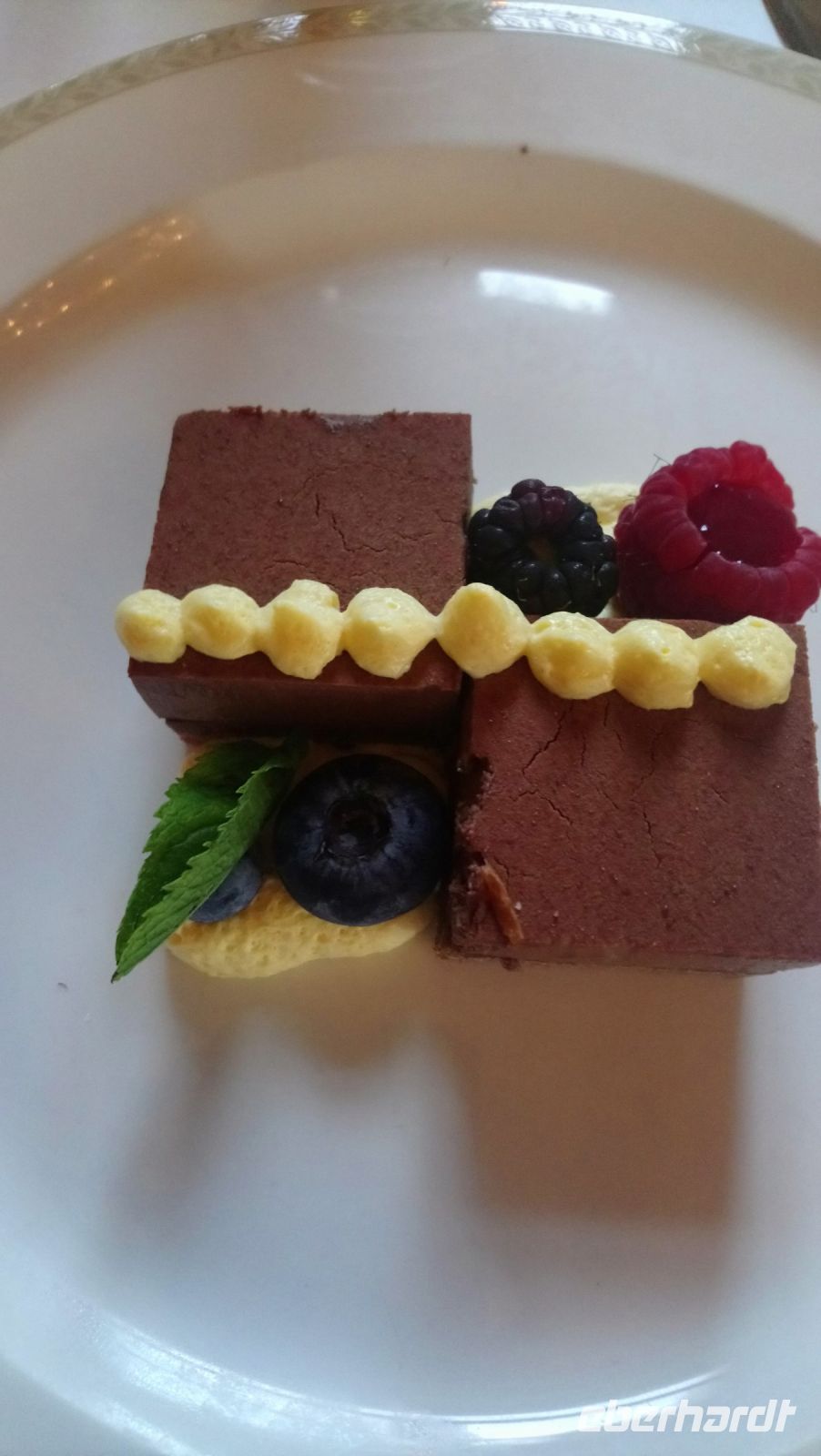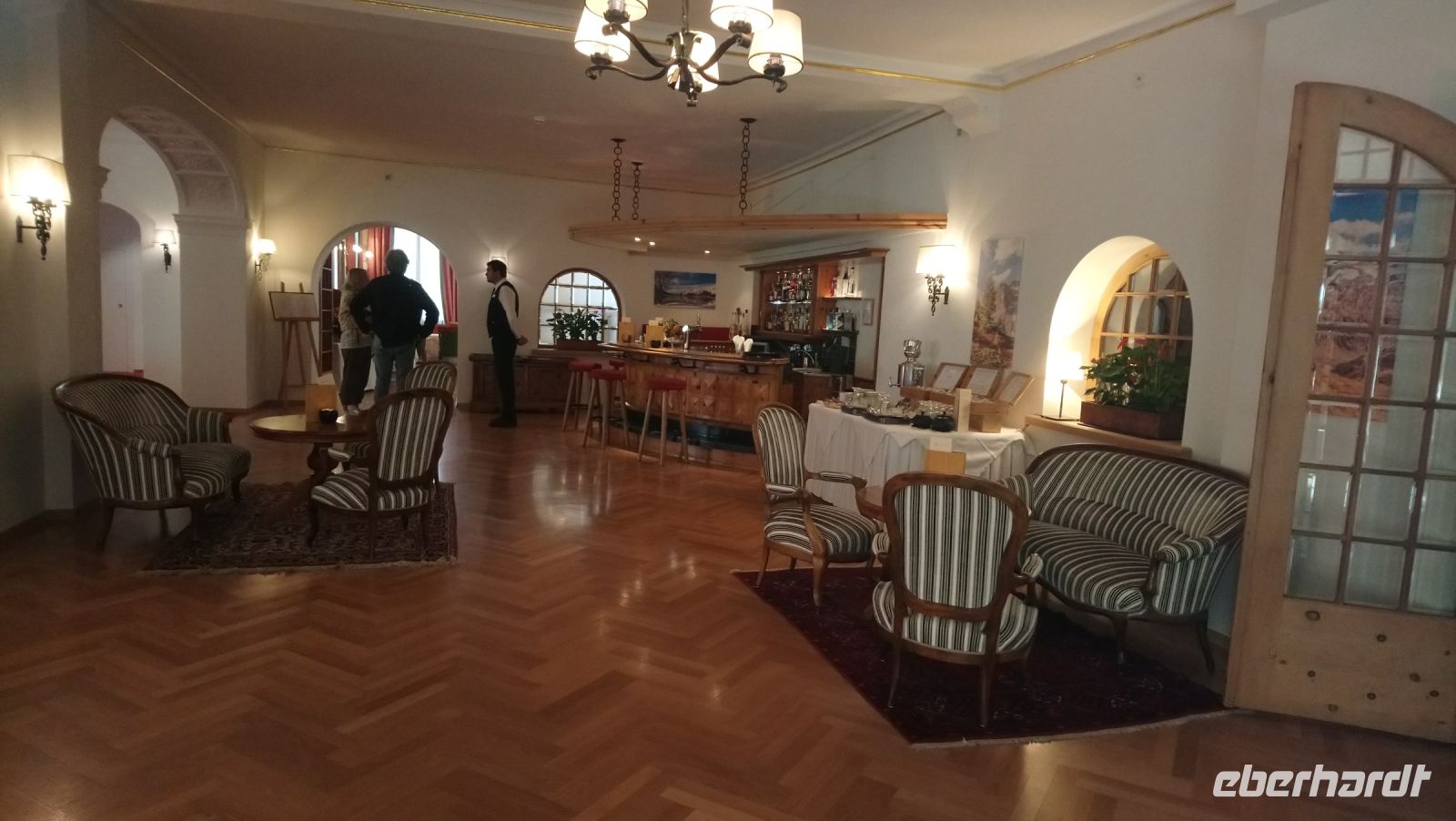 Nach uriger Rückfahrt erreichten wir unser Hotel zum Abendessen. Vor dem Galamenü - heute mit 5 Gängen und begeitender Pianomusik - gab und die Hotelchefin Frau Petermann einen Einblick in die Entwicklung des Hotels und verwies auf die architektonischen Details.