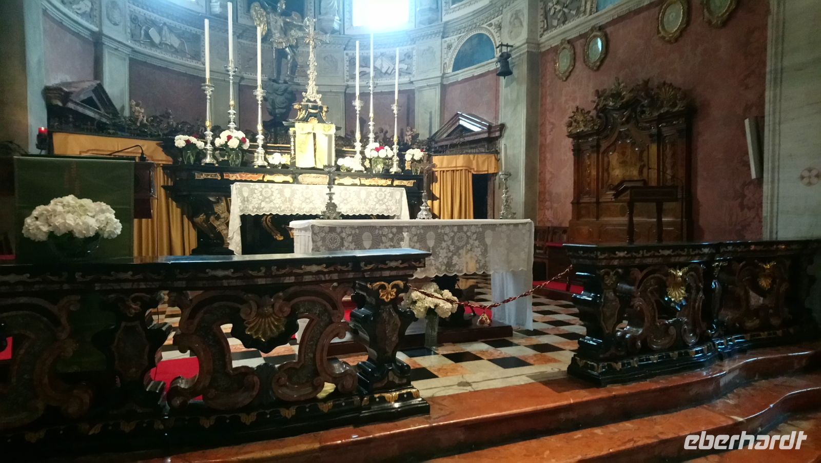 Nach Querung der Grenze kamen wir im italienischen Tirano an. Erste Station: die prächtige Wallfahrtskirche Madonna di Tirano. Bei einem Besuch der Kirche erlebten wir diese Pracht von innen- beeindruckend!