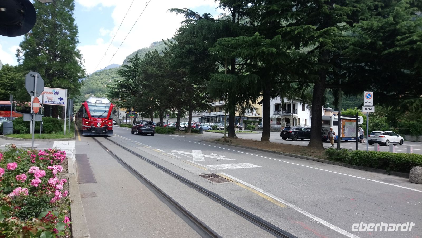 Nachdem uns unser Busfahrer André in der Nähe des Bahnhofes hat aussteigen lassen, wurden wir durch unseren Reiseleiter Hartwig informiert, dass auf Grund einer Streckensperrung wegen Bergrutschgefahr in der Nähe von Tiefencastel die planmäßige Zugrückreise nicht möglich ist. Nach verschiedenen Abstimmungen kam dann der Alternativvorschlag, bereits eine Stunde eher mit dem Bernina-Express in der zweiten Klasse zurückzufahren. Damit war die Fahrt im Panoramawagen des Bernina-Express gesichert. In der verbliebenen Zeit unternahmen wir mit unserem Reiseleiter Hartwig einen Rundgang durch die Altstadt von Tirano - typisch italienisch, aber sehr gemütlich. Eis, Espresso, eine Pizza, so oder ähnlich genossen unsere Reisegäste das südländische Flair.
