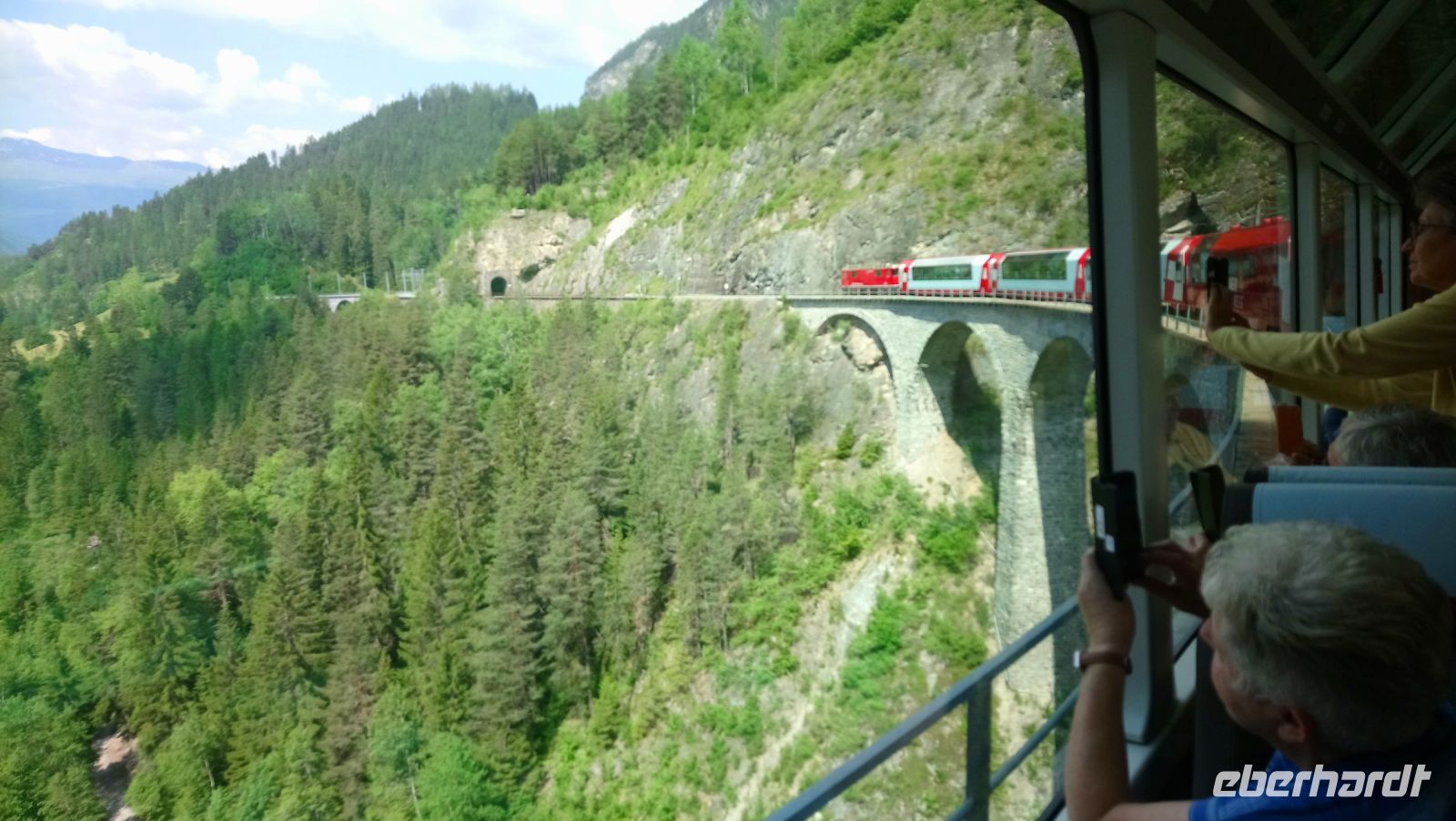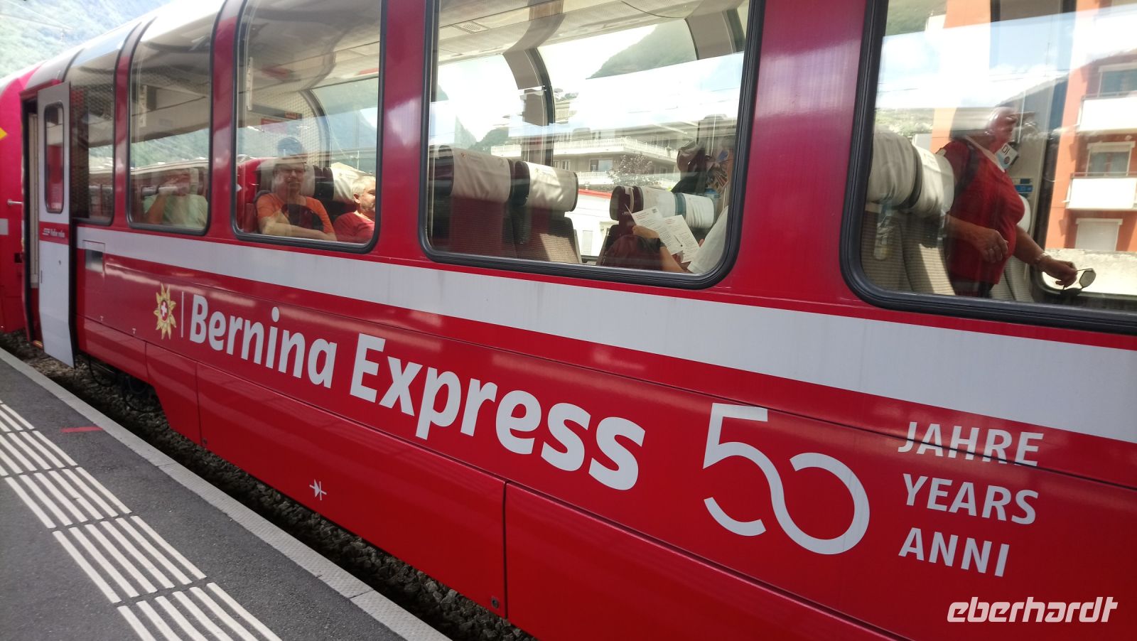 Im Bernina–Express zwischen dem italienischen Tirano und Pontresina unterwegs