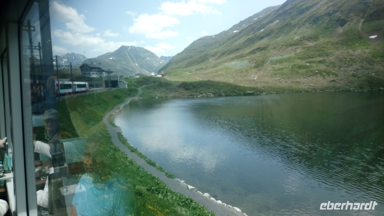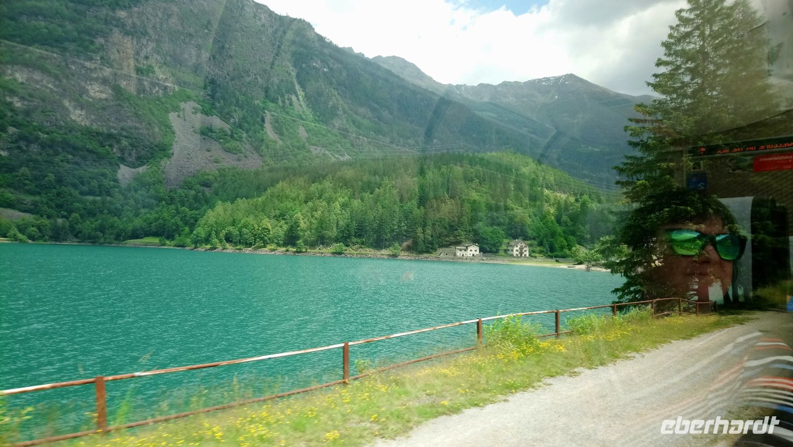 Auf reservietren Plätzen ging es dann mit dem Bernina-Express durch die nun schon etwas bekannte Gegend. Nur den Halt in Alp Grüm erlebten wir erstmals: der gewaltige Palügletscher mit See und Wasserkraftwerk - der Energiezentrale für den Bernina-Express.