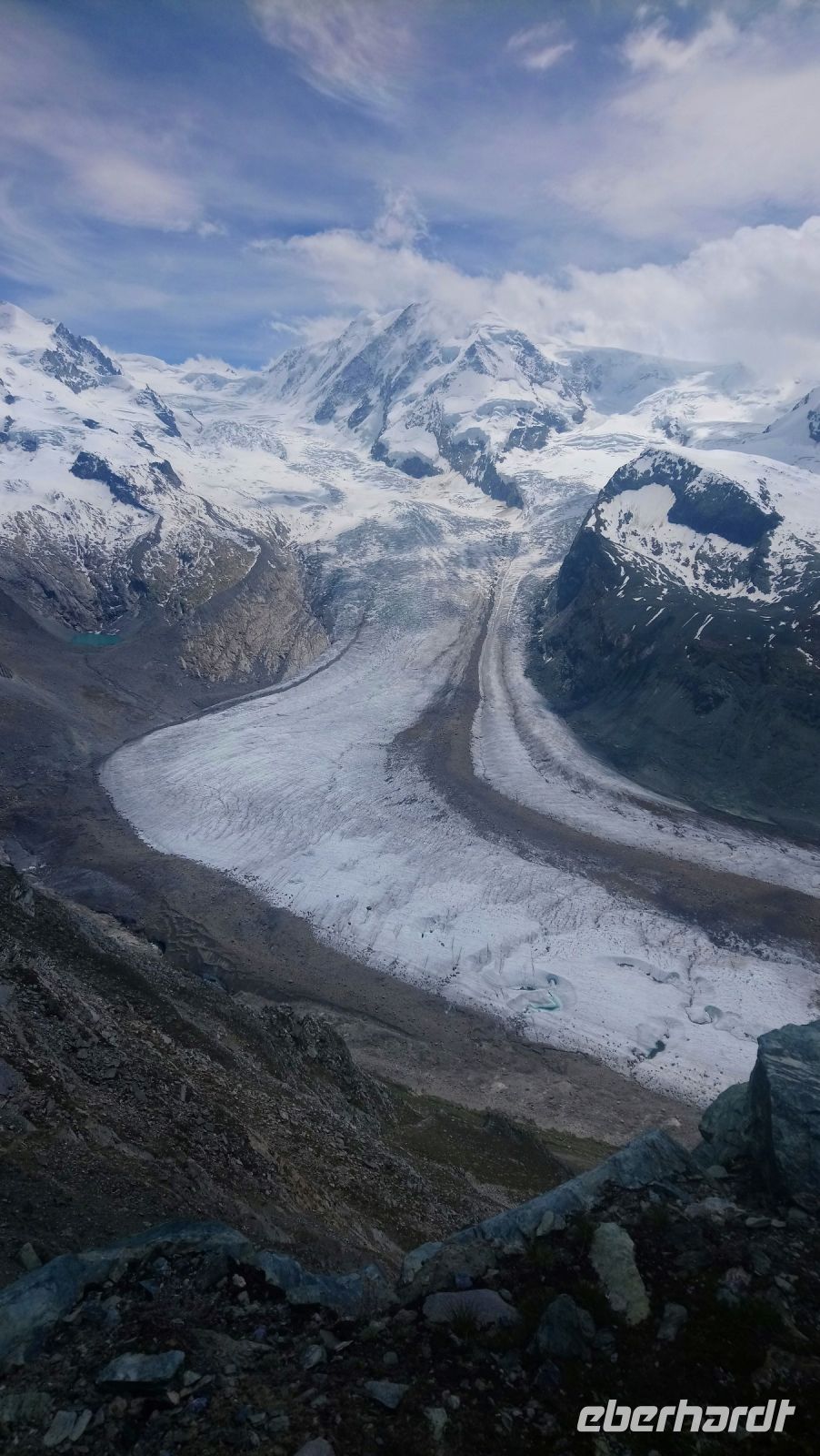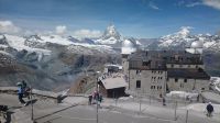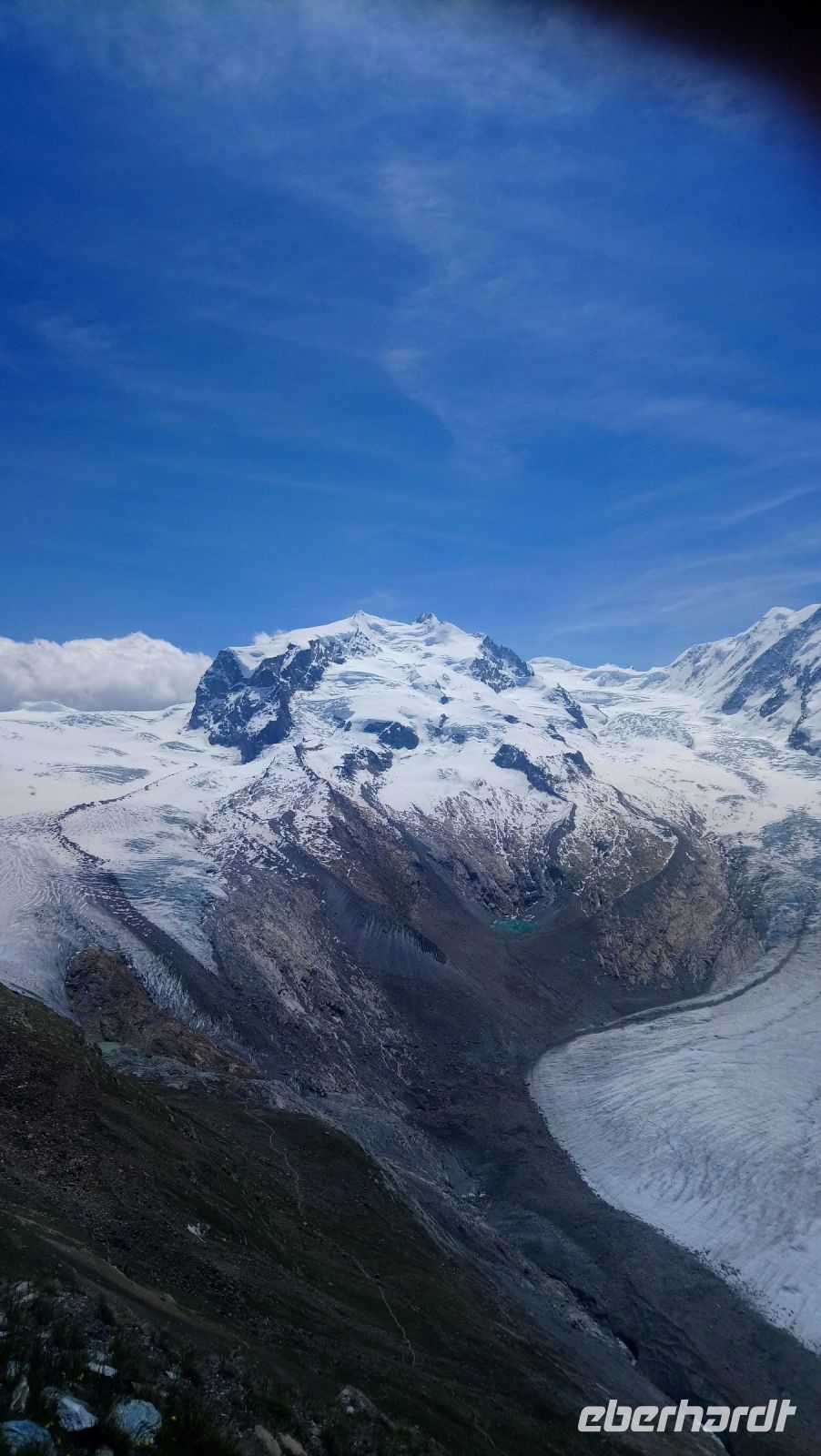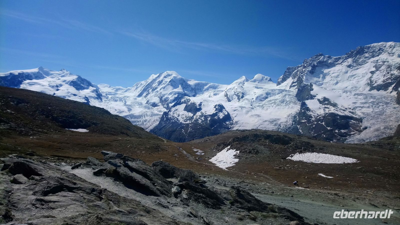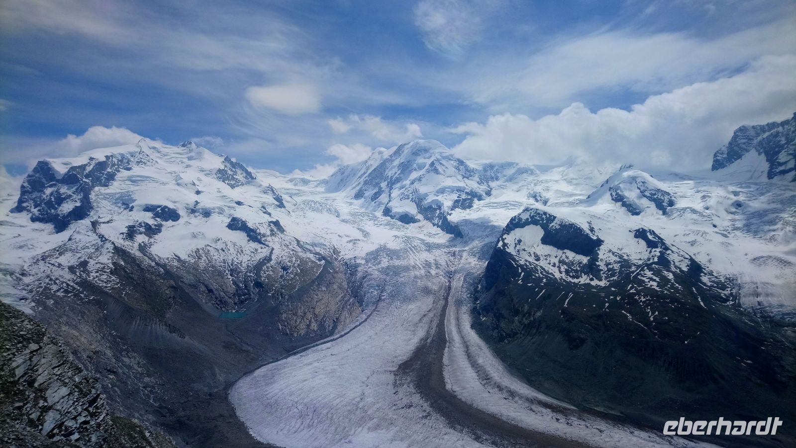 Nachdem wir einen Zug übersprungen hatten, ging die Auffahrt zum Gornergrat weiter. Kulmhotel, Ausstellung Zooom mit virtuellem Flug um das Matterhorn, Kapelle und natürlich die Aussichtsplattform. Wir hatten ein tolles Panorama. Erläuterungen und die Benennung der Berge in den aufgestellten Teleskopen brachten einen sehr guten Überblick über die Bergwelt rund um die Bergstation Gornergrat.