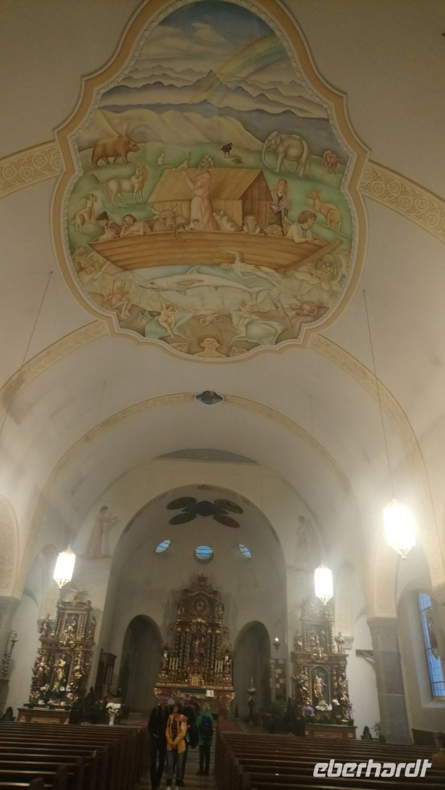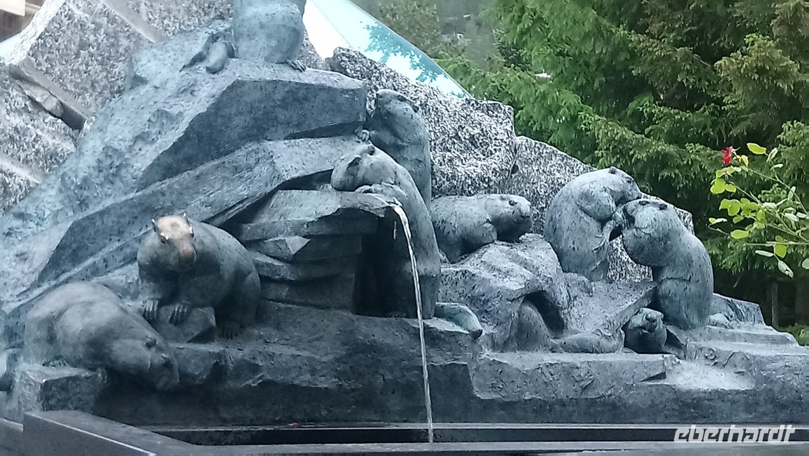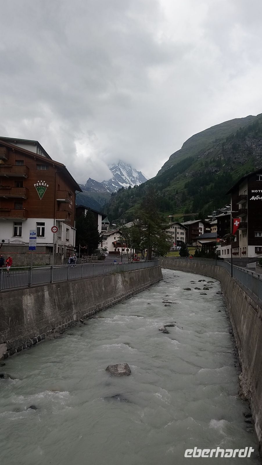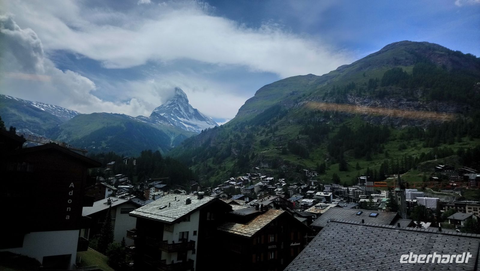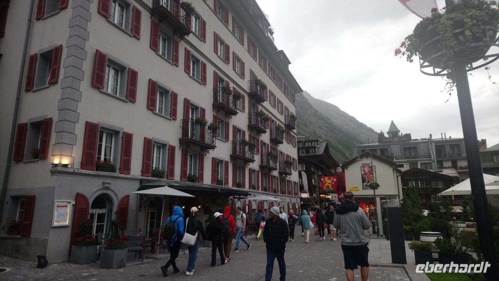 Um späten Nachmittag bot unser Reiseleiter dann noch einen Rundgang durch Zermatt an. Blick auf das Matterhorn mit Mattervispa, alter Dorfkern, Bergsteiger- und Bergführerfriedhof, Pfarrkirche mit dem 1980 geschaffenen Deckengemälde Arche Noah, Gedenkfliesen im Gehweg für die Erstbesteiger usw. Allerdings: der nun restaurierte Murmeltierbrunnen war gedankenlos hinter einer Bude versteckt - wir haben das Murmeltier trotzdem gefunden und berührt, mal sehen, ob es wieder für einen Besuch reicht.