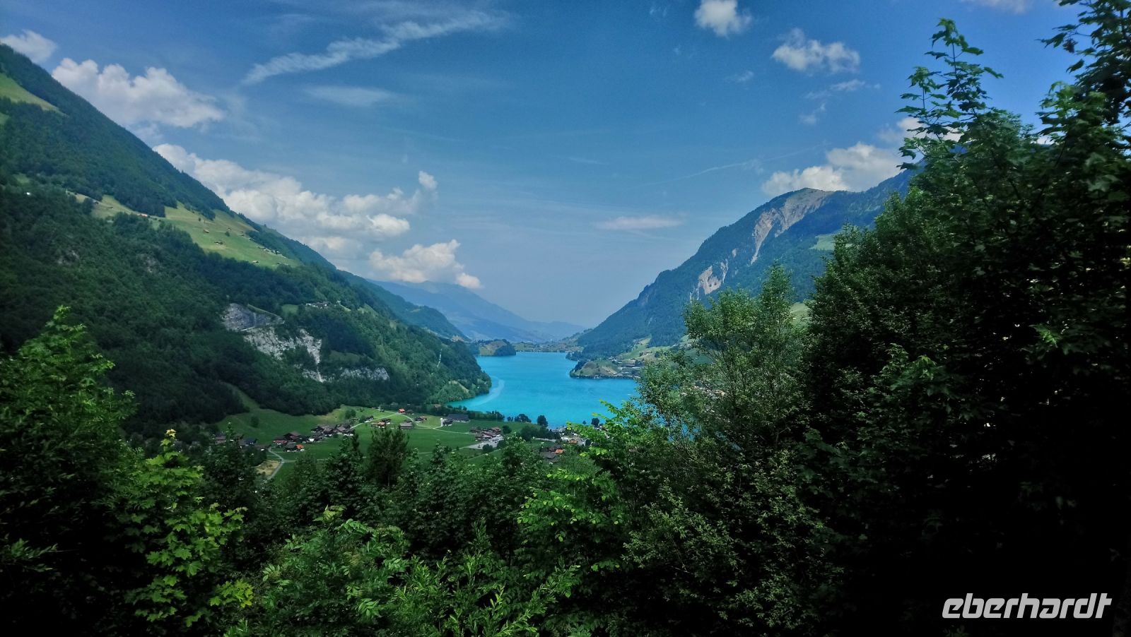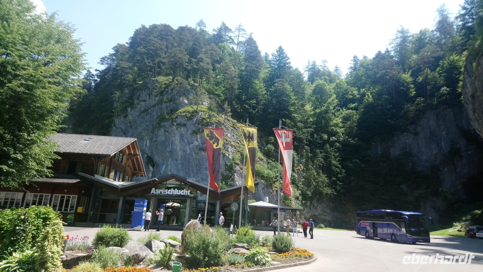 Ein schöner Halt war anschließend auf Empfehlung von André der Westausgang der Aareschlucht, danach Ortsbesichtigung per Bus von Meiringen, der Sherlock Holmes-Stadt. Meiringen ist aber auch als Stadt des Desserts aus Zucker und Eischnee - Merinque oder Baiser - bekannt. Bei unserer Weiterfahrt "bezwangen" wir den niedrigsten Pass der Schweiz, den Brünigpass mit 1008 m. Neue Landschaften taten sich uns anschließend bei der Fahrt zum Pilatus auf. Am Lungernersee hatten wir wieder tolle Fotomotive.