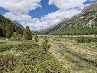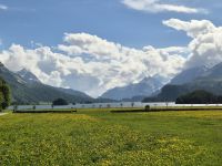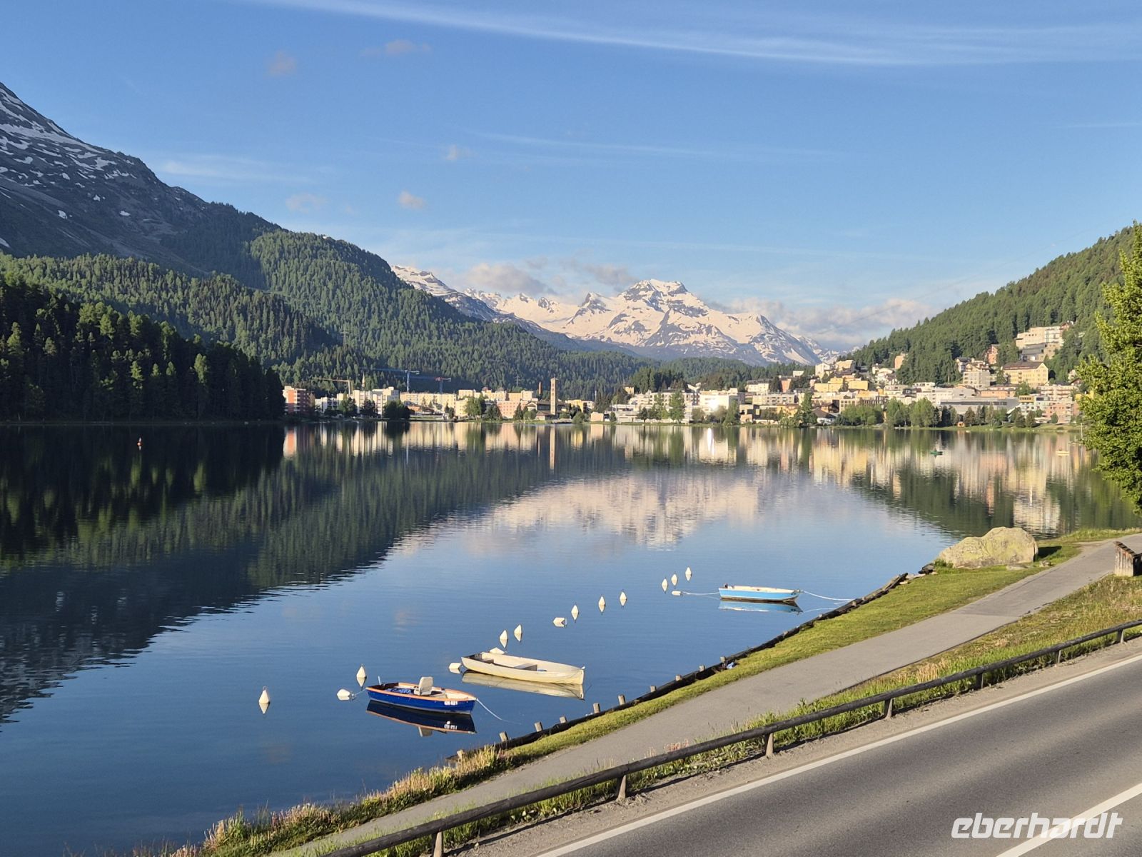 Vorbei am Silvaplana-See - und mit Sonne, die sich immer mehr in den Vordergrund rückt - erreichen wir das weltberühmte St. Moritz. Zweimal fanden hier Olympische Winterspiele statt, 1928 und 1948. Lang ist es her. Doch St. Moritz bleibt in aller Munde und Feriendestination im Sommer, aber vor allem natürlich im Winter. Bei einem geführten Stadtrundgang lernen wir den Ort besser kennen. Vor allem die Naturbobbahn begeistert, kommt sie doch jetzt im Sommer als normaler Wanderweg daher, entpuppt sich aber im Winter als künstlich hergestellte Eisrinne. Man muss wissen, dass dies eine Bobbahn ist, sonst käme man gar nicht auf die Idee. Doch hier finden Weltcuprennen und Weltmeisterschaften statt. Imposant!