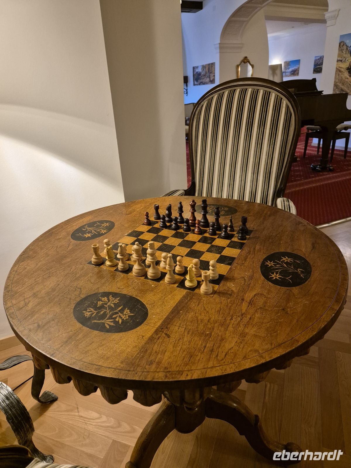 Unser Speisesaal ist ein Prachtbau mit schönen Deckenverzierungen. Ein vorzügliches Abendessen, nein ein Schlemmermenü, entschädigt für die lange Reise und die feuchte Begrüßung. All das müssen wir erst einmal setzen lassen. Die Stille hier am Silser See wird uns eine angenehme Nacht bescheren.