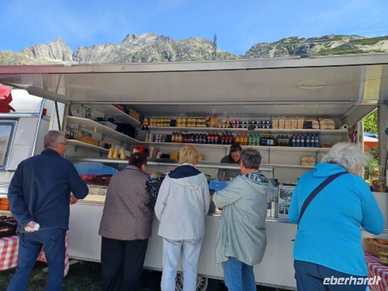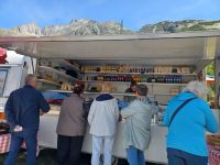 Am Ende des Grimselstausses mit dem 100 jährigen Staubauwerk erwartet uns schon Judith an ihrem Käsestand mit Käse- u. Wurtskostproben. Eine gute Idee, die Schweizer Originale, frisch verpackt mit nach Hause zu nehmen. Michael ruft noch die fertigen heißen Wiener aus-u. ,was gibt es Schöneres als in den Bergen am Stausee eine Brotzeit einzulegen?