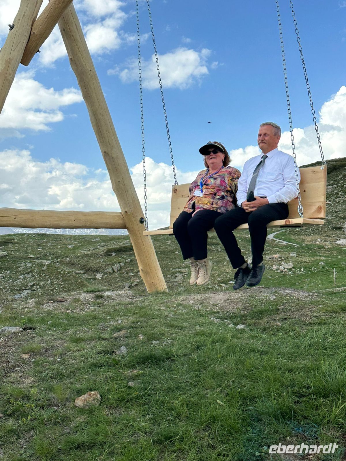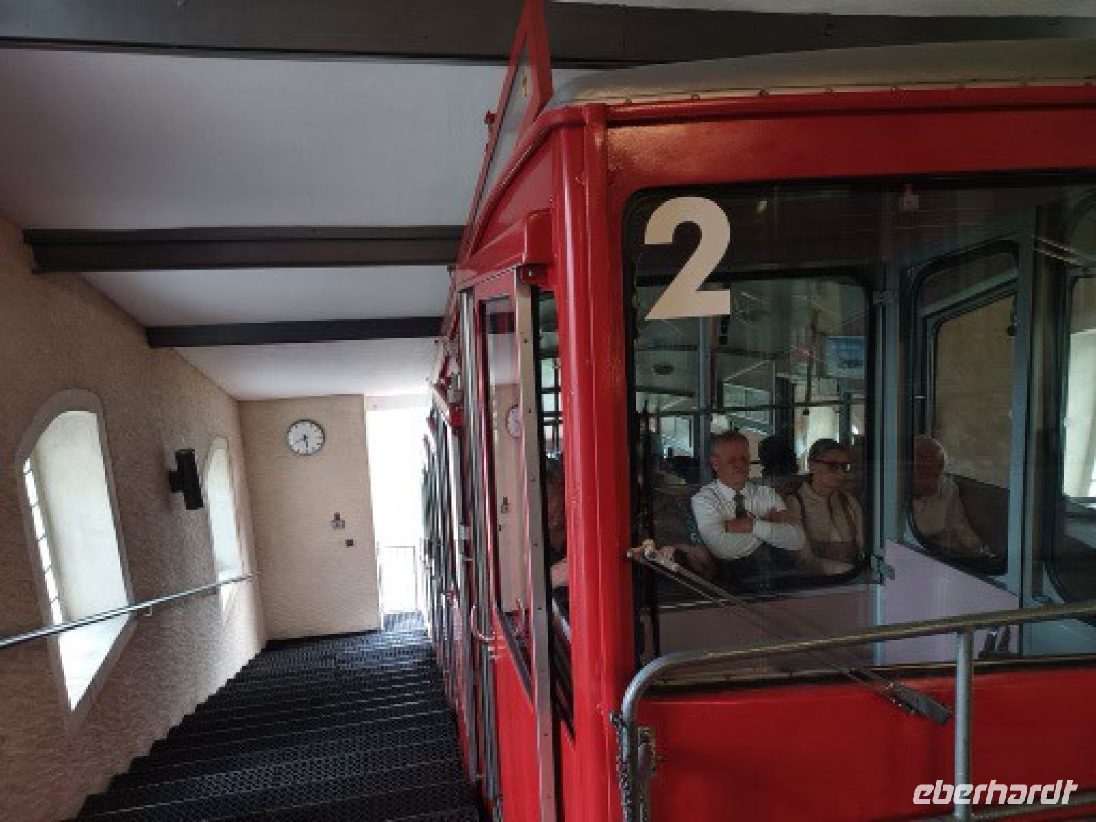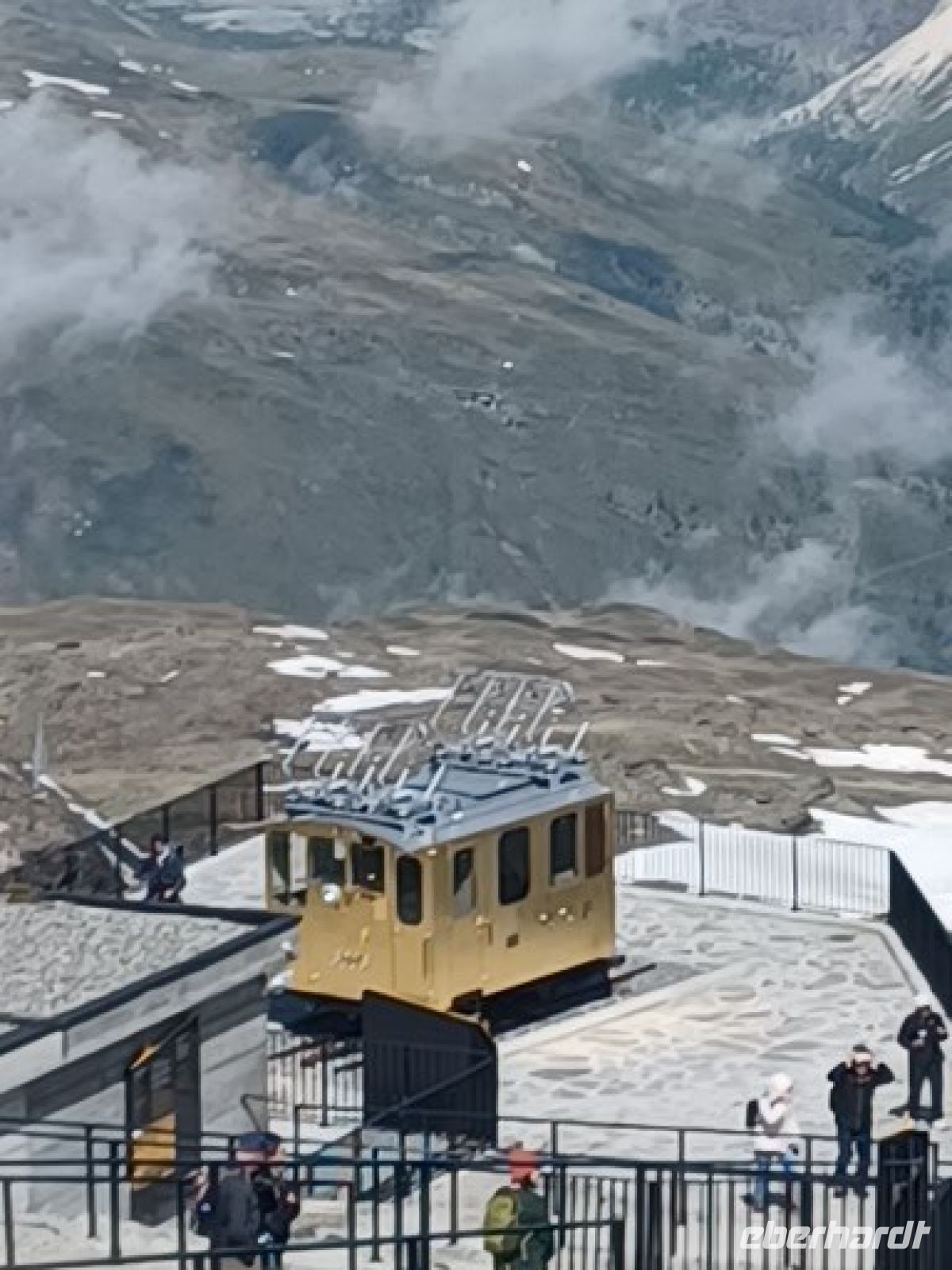 Es war ein schöner Ausflug in die Natur u. eigentlich der Tag mit zwei Programmpunkten erfüllt, wenn nicht, ja, wenn nicht die Reiseleitung u. der Busfahrer noch eine Überraschungsauffahrt auf den Muottas Muragi (2453 m) als Zusatzangebot geplant haben: begeistert steigen wir an der Zahnradbahnstation aus dem Bus u. zwängen uns noch in die anvisierte Wunschkabine mit einer asiatischen Gruppe. Die Standseilbahn wurde 1907 erbaut, u. von der modernisierten Aussichtsplattform genießen wir den Blick über die Engadiner Seenplatte. Wer möchte, kann den Blick im Stehen bei einer Champagnerofferte des Restaurants genießen. Aber wir drehen eine kleine Runde auf dem Berg u. können uns satt sehen in der neuen Aussichtsschaukel.