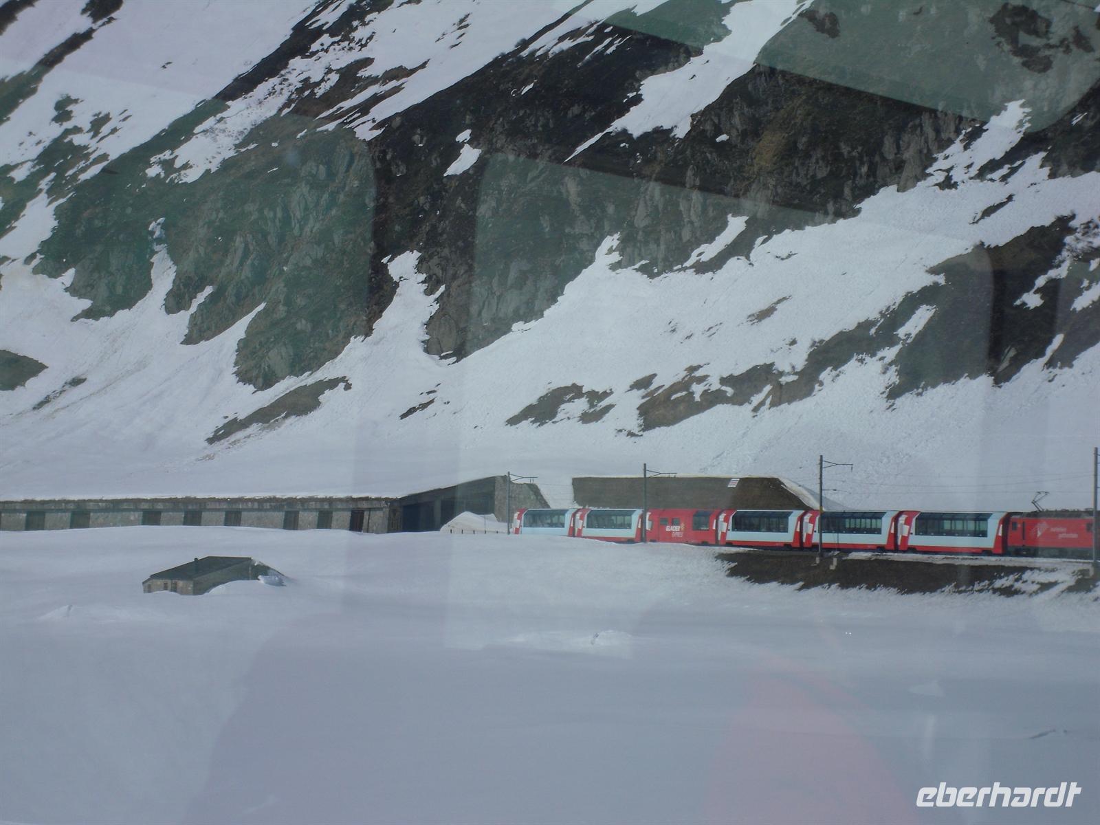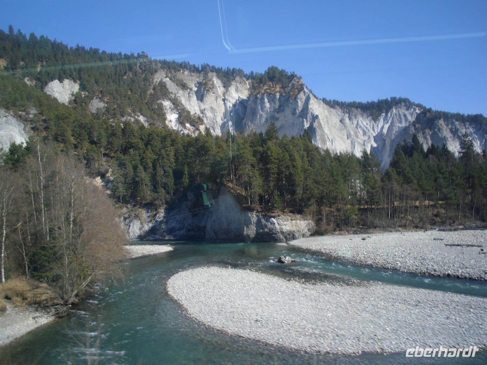 Der nächste Höhepunkt unserer Reise steht heute an - die Fahrt mit dem "Glacier-Express"! Am Vormittag spazieren wir ganz gemütlich zum Bahnhof in Thusis. Zuvor verabschieden wir uns von unserem Buschauffeur André, der allein mit dem Bus und unserem Gepäck die weite Strecke bis ins Wallis zurücklegt.