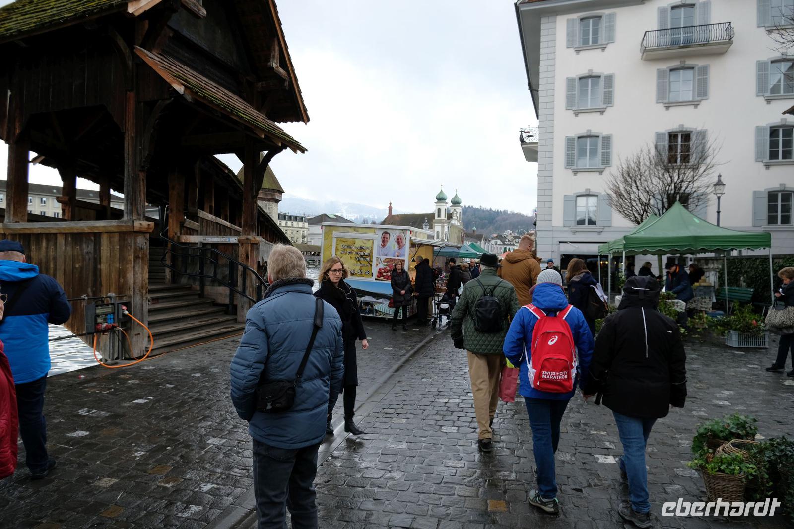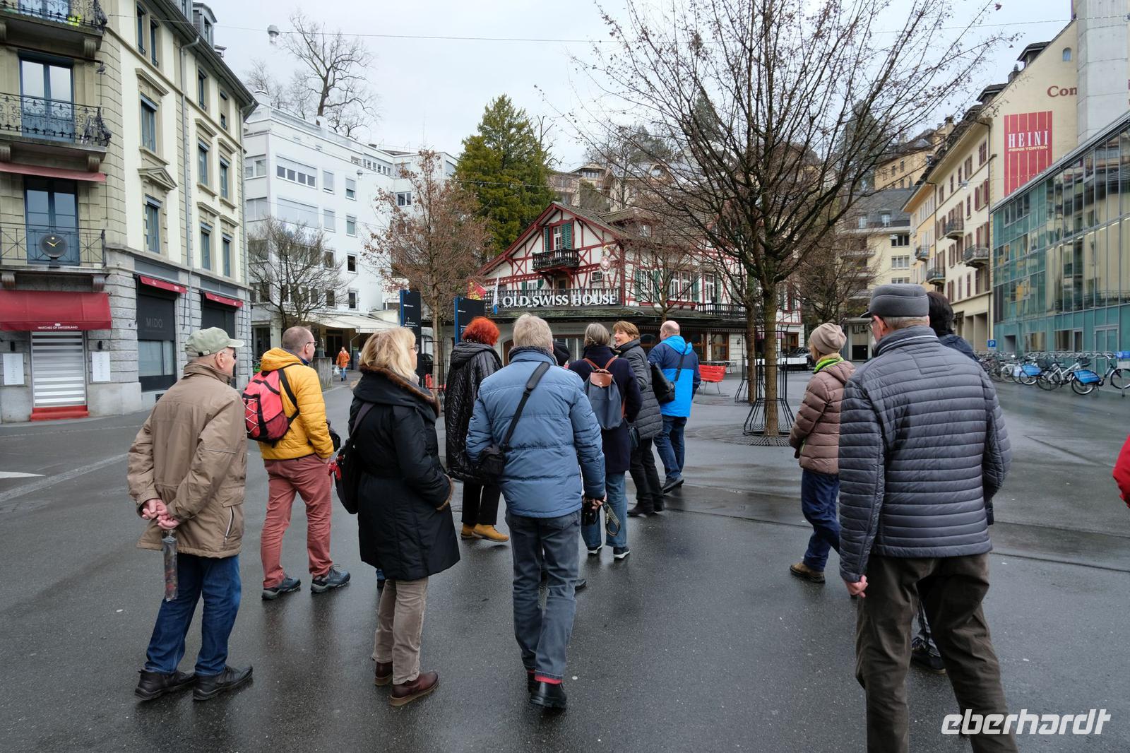 9.00 Uhr fuhren wir heute voller Erwartungen nach Luzern. Obwohl es regnete wollte sich keiner der Gäste die Laune verderben lassen. Unser erstes Ziel war der Busparkplatz Inseli hinter dem Bahnhof, wo uns schon Susy Hoffstetter, unsere Stadtführerin, erwartete. Mit ihr machten wir zunächst eine kleine Stadtrundfahrt. Unser Weg führte uns zunächst am Verkehrsmuseum vorbei und später zum Löwendenkmal. Nach umfangreichen Erklärungen ging es dann zu Fuß durch die Stadt Luzern. Sie ist das Tor zur Zentralschweiz und eine der schönsten Städte des Landes. Susy führte uns über die Kapellbrücke und zur Jesuitenkirche mit interessanten Erläuterungen im Innern der Kirche. Dann ging sie mit uns zum Marktplatz und weiter durch die Altstadt wieder zurück zum Schwanenplatz. Susy, die uns ihre Stadt sehr gut vermittelte, gab uns auch Einblicke in soziale Verhältnisse, Spannungsfelder und ökonomische Zwänge durch das Ausbleiben der asiatischen Gäste. Nach der Verabschiedung unserer Stadtführerin blieb uns noch Zeit für eine heiße Schokolade im Cafehaus Bachmann.