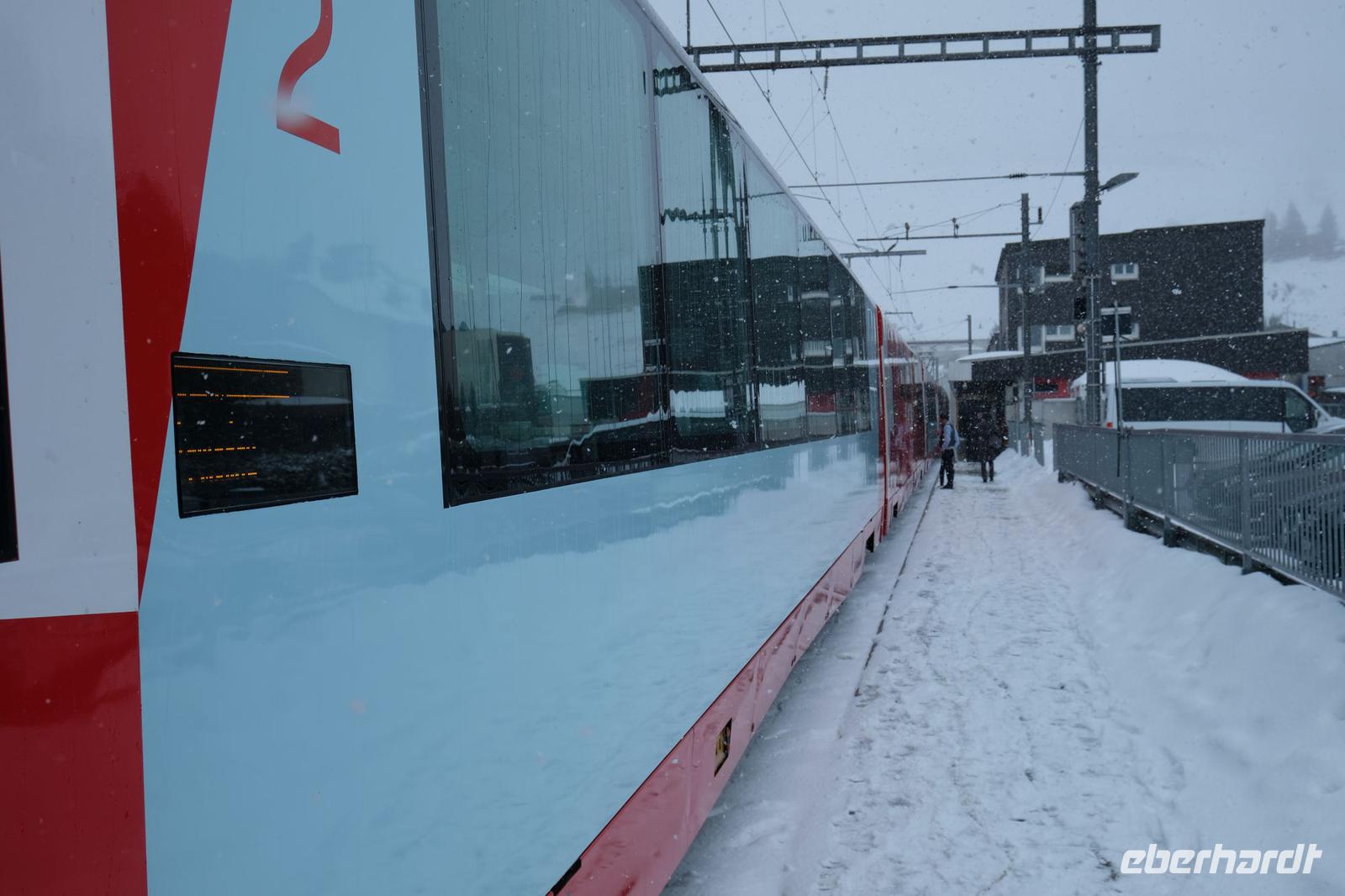 6.00 Uhr am Morgen starteten 17 reiselustige Gäste vom Flughafen Dresden zu einer Wintertraumreise mit den Schweizer Bahnen. Unsere Fahrt führte uns über Nürnberg, Ulm, Lindau vorbei am Fürstentum Lichtenstein, den Churfirsten und Luzern direkt nach Sarnen. Am Abend erreichen wir in Sarnen unser Hotel Krone, in dem wir 3Tage untergebracht waren. Nach dem Check in trafen wir uns zu einem schmackhaftem 3-Gänge-Menü im Hotelrestaurant. Nach einem langen Anreisetag war die Nachtruhe sehr willkommen.