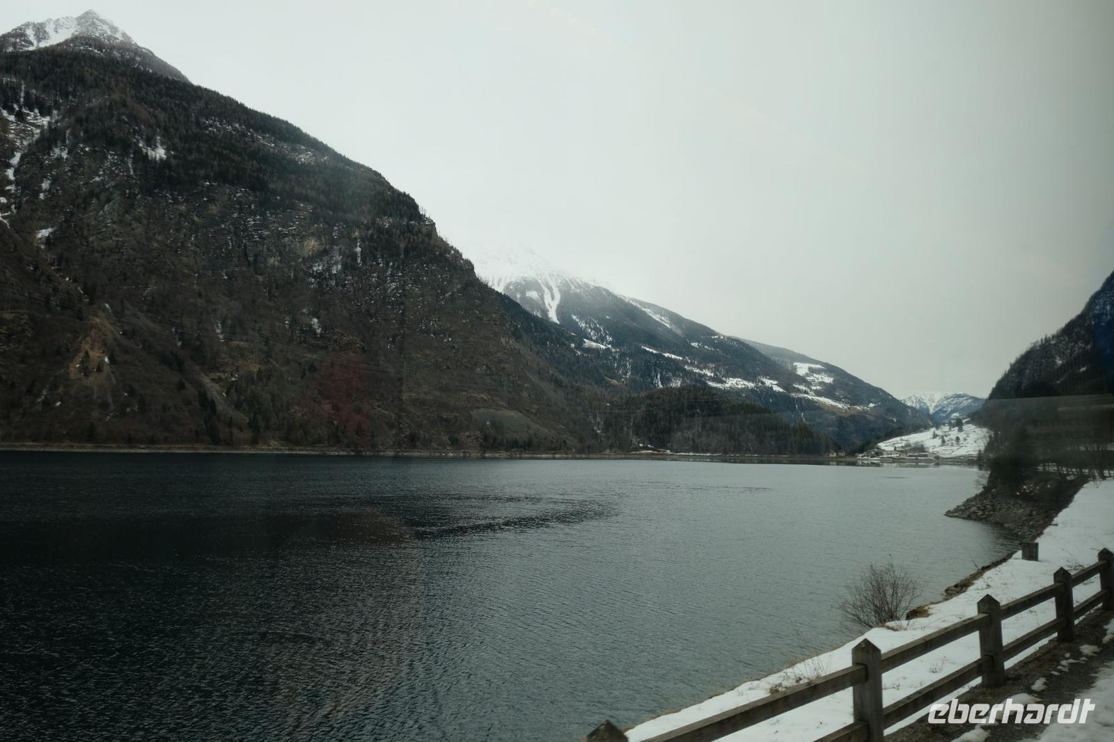 Nach dem Frühstück ging es heute eilends Richtung Pontresina. Am Marmarola-Stausee machten wir unseren ersten Halt, um den Stausee und das Schneepanorama zu fotografieren. Nächster Halt war auf dem Julierpass. 10.45 Uhr waren wir in Pontresina. Nach kurzer Kaffeepause stiegen wir in den Zug nach Tirano. Zuvor wurden wir informiert,, dass eine Fahrt bis Tirano nicht möglich ist, und wir an der schweizerisch-italienischen Grenze aussteigen müssen.