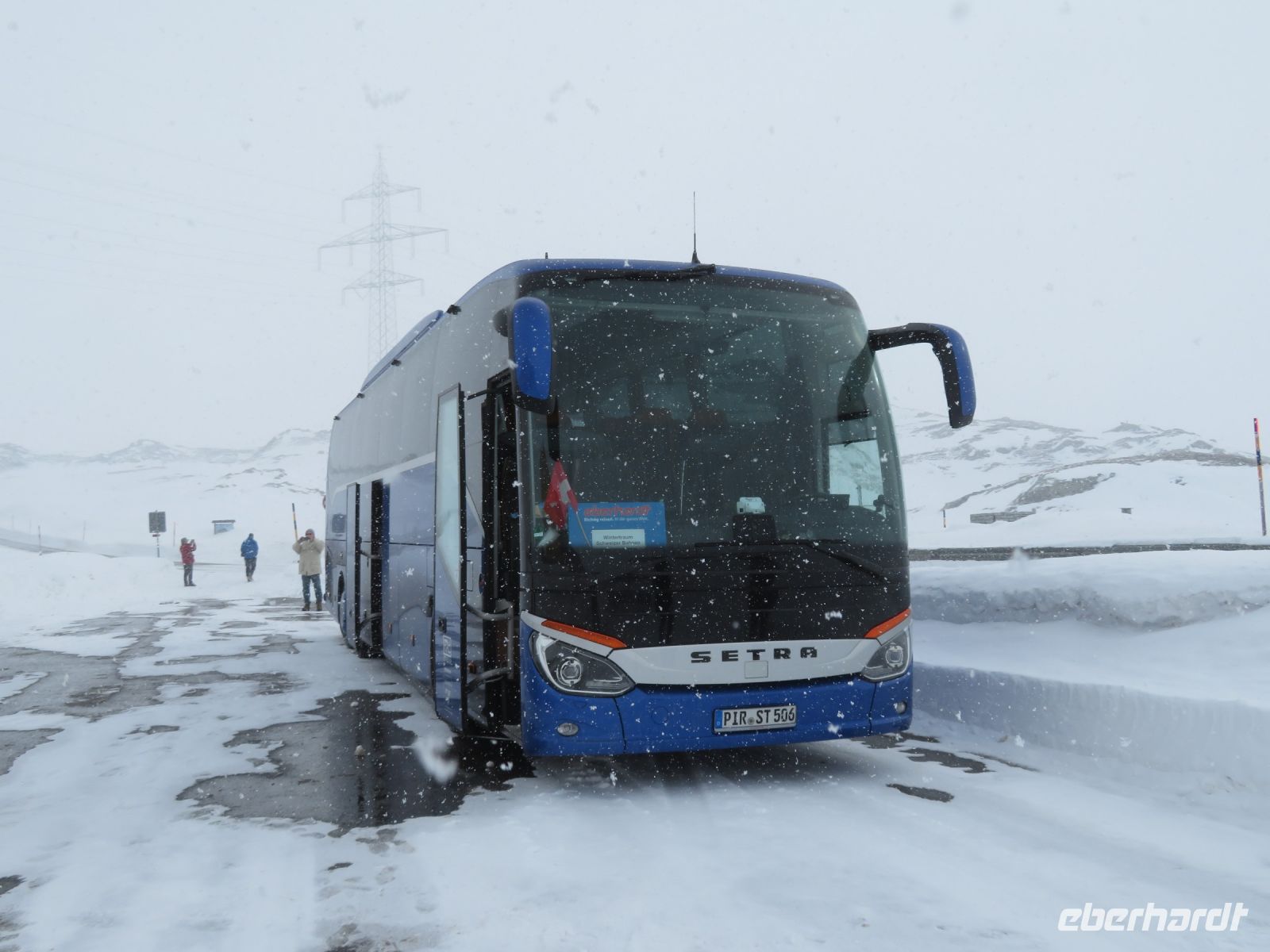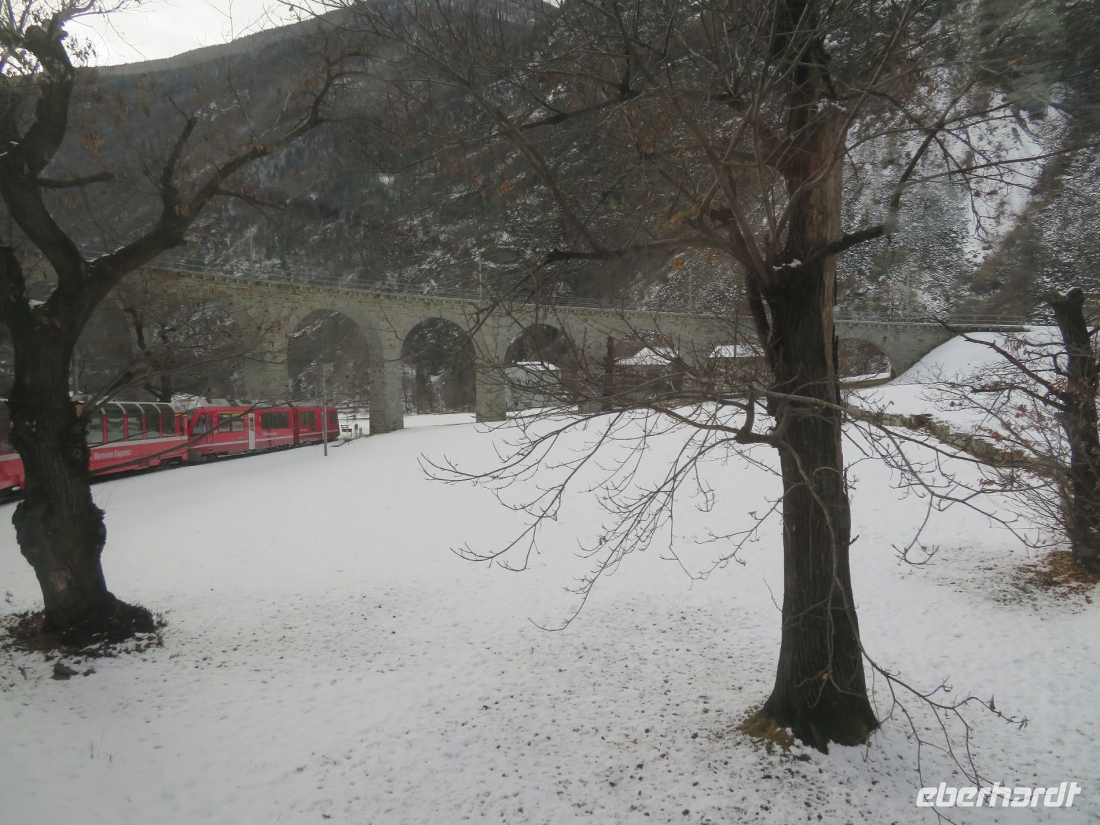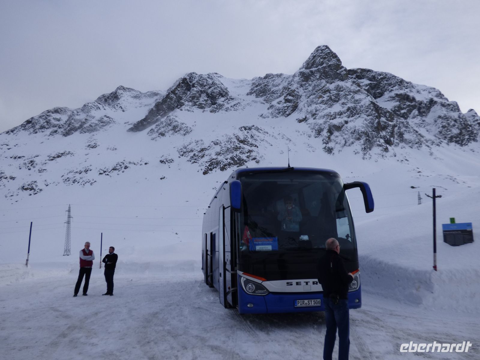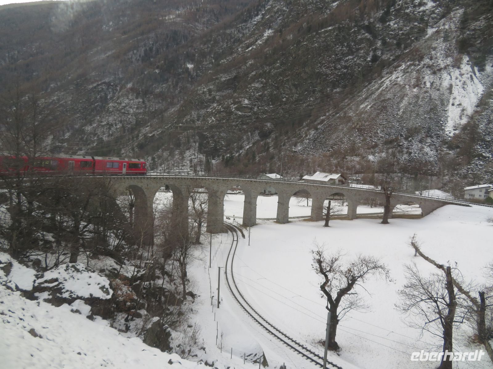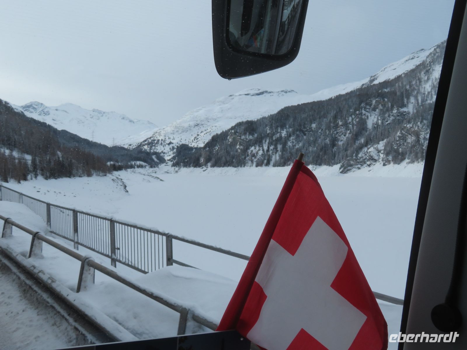 Im Hotel beginnen wir den Tag mit einem Frühstück vom reichhaltigen Buffet. Anschließend fahren wir mit dem Bus über den Julierpass nach Pontresina. Bis zur Abfahrt des Bernina-Express bleibt noch etwas Zeit, um sich auf dem Bahnhof umzuschauen. Im Panorama-Wagen der 2. Klasse beginnt unsere Reise durch die winterlichen Berge. Die Bernina-Linie ist die höchste Bahnverbindung der Alpen, die offen und ohne Scheiteltunnel über die Alpen führt. Die Bahnstrecke ist eine der faszinierendsten technischen Meisterleistungen in der Geschichte des Bahnbaus. Sie führt über schwindelerregende Brücken, Kehren und atemberaubende Strecken mit herrlichen Aussichten. Wir fahren vorbei an zugefrorenen Wasserfällen und können den Morteratschgletscher, einen der größten Gletscher der Schweiz, nur im Nebel erahnen. Auf dem Berninapass erreichen wir den höchsten der Zugfahrt mit 2.235 Metern. Entlang des zugefrorenen Lago di Bianco geht es durch die Graubündner Bergwelt. Auf der Alp Grüm legen wir eine Pause ein. Hier befindet sich das einzige Restaurant in der Schweiz, welches nur durch die Bahn oder zu Fuß erreichbar ist. Wir genießen die einzigartigen Ausblicke in die Gletscherwelt und ins Puschlav. Nach dem Stopp überwindet der Zug nun auf einer atemberaubenden Stecke mit Kehrtunneln ca. 1.000 Höhenmeter hinab ins Puschlav. Durch das Tal fahren wir weiter und bei Brusio erleben wir einen letzten Höhepunkt dieser Fahrt: der Zug überwindet mit Hilfe des berühmten Kreisviadukts einen Höhenunterschied von 20 Metern. Der Lokführer fährt extra langsam über das Viadukt, so dass wir sehr schöne fotografieren können. In Campocolongo auf ca. 450 Metern Höhe endet unsere beeindruckende Bahnreise. Jan, unser Chauffeur erwartet uns mit dem Bus. Nun reisen wir zurück über den Berninapass. Wir legen auf der Passhöhe einen kleinen Stopp ein. Es schneit. Während der gesamten Fahrt genießen wir erneut die faszinierenden Ausblicke auf die einzigartige Bahnstrecke, auf der wir am Morgen gereist sind! In St. Moritz machen wir nochmals eine Pause. Besonders im Winter ist der internationale Kurort beliebter Treffpunkt der europäischen Prominenz. Wir bummeln durch St. Moritz-Dorf vorbei an luxuriösen Hotelbauten und vornehmen Geschäften. Auf dem zugefrorenen See sehen wir die Zeltstadt und das Rennareal für die alljährlich im Februar stattfindenden Pferderennen White Turf. Nun führt uns unsere Route zurück über den Julierpass nach Thusis. Den Tag lassen wir beim gemütlichen Abendessen ausklingen.