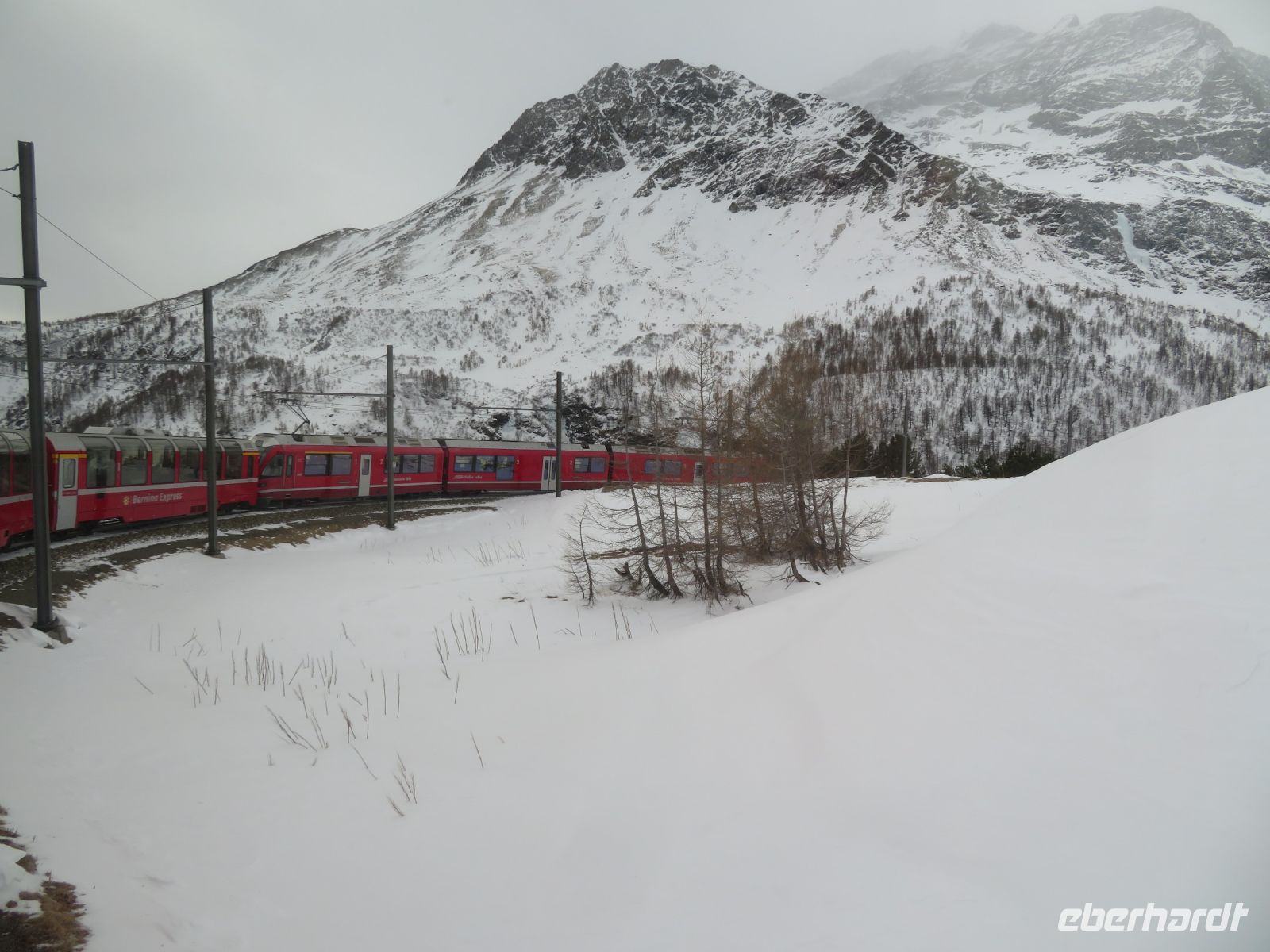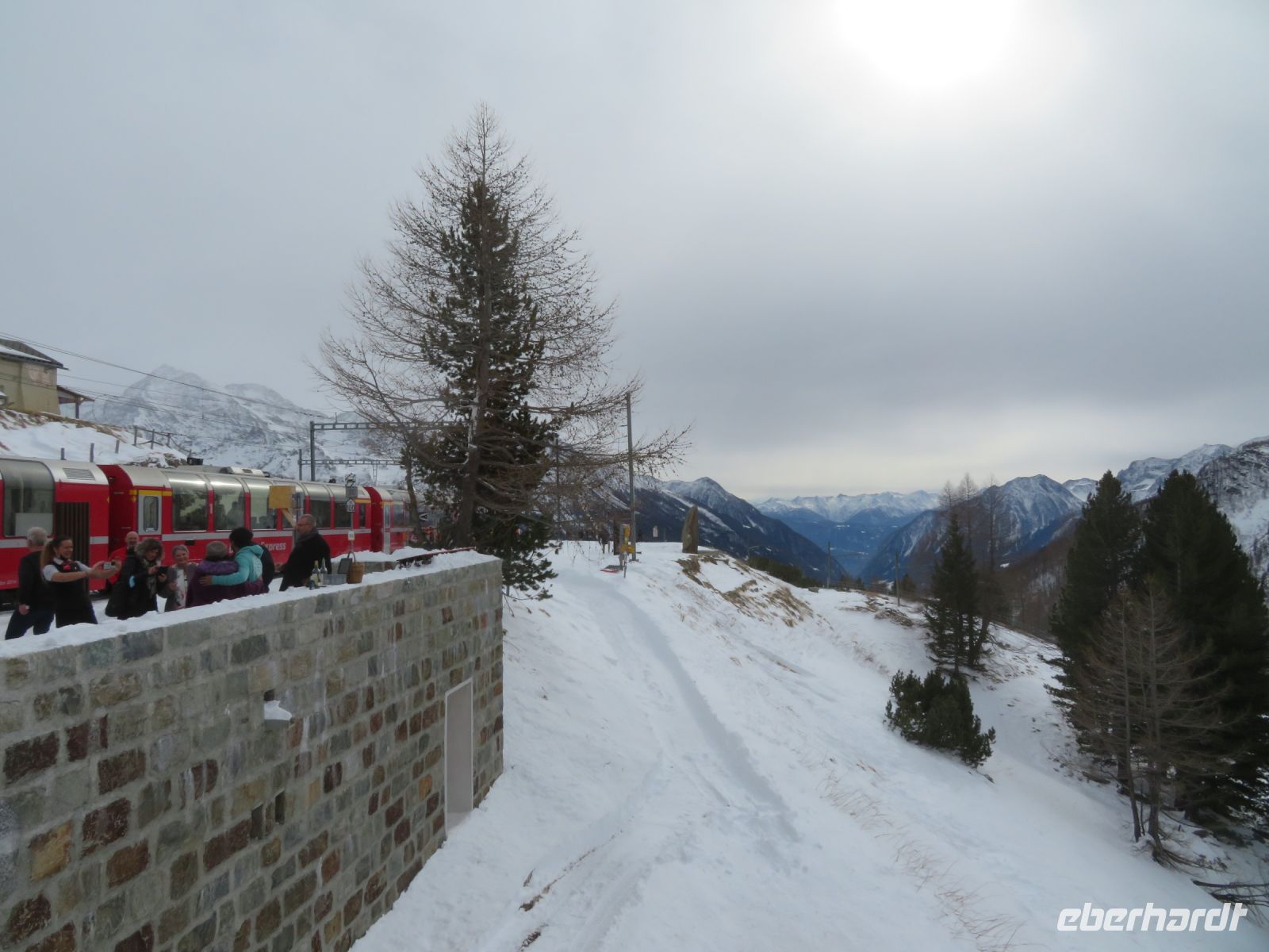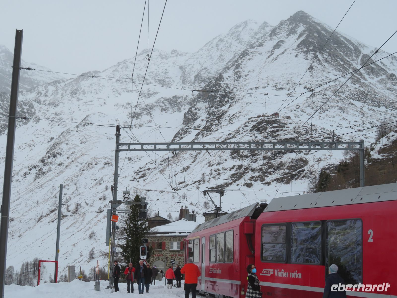 2. Tag – 16.02.2022: Zugfahrt mit dem Bernina–Express von Pontresina nach Campocolongo und Ausflug nach St. Moritz