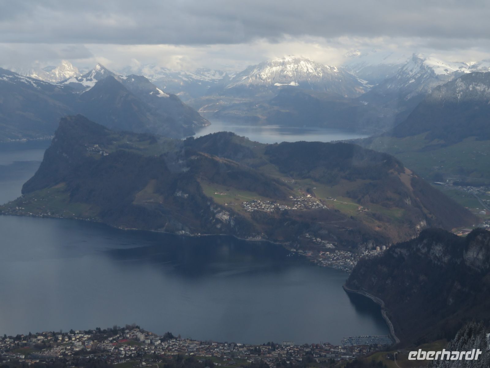Heute entdecken wir zunächst Luzern. Susy, unsere Stadtführerin, erwartet uns bereits in der wunderschönen Stadt am Nordufer des Vierwaldstättersees. Wir fahren zum Löwendenkmal. Gebannt hören wir der Geschichte des sterbenden Löwen zu. Das Denkmal erinnert an die 1792 beim Tuileriensturm in Paris gefallenen Schweizergardisten. Anschließend spazieren wir durch die Gassen zum Fritschibrunnen. Überall sind schon die Vorbereitungen für die bevorstehenden Fasnachtstage in vollem Gang. Wir erfahren, wie diese Tage in Luzern ablaufen. Weiter führt unser Weg über die berühmte Kapellbrücke. Wir statten der reich verzierten Jesuitenkirche einen Besuch ab. Das Nadelwehr, über welches der Wasserstand des Vierwaldstättersees geregelt wird und die Spreuerbrücke, ebenfalls eine historische Holzbrücke, lassen uns staunen. Wir sehen die bunt bemalten Bürgerhäuser, welche vom Reichtum ihrer Erbauer erzählen. Nun gehen wir auf eigene Erkundungen in der Stadt Luzern. Anschließend ruft wieder der Berg: Wir unternehmen einen Ausflug auf den Pilatus. Jan bringt uns mit dem Bus nach Kriens. Mit der Panorama-Gondelbahn und der Luftseilbahn "Dragon Ride" schweben wir auf den Pilatus. In 2.070 Metern Höhe gekommen, haben wir Glück und es eröffnet sich eine gute Sicht über den Vierwaldstättersee und das Flachland im Norden. Gen Süden verstecken sich die Berge der Berner Alpen leider in den Wolken. Wir nutzen den Aufenthalt zu einem kleinen Imbiss oder zu einem Spaziergang im Schnee auf der Station Fräkmüntegg. Am Nachmittag bringt uns die Bahn ins Tal zurück. Mit dem Bus erreichen wir unser Hotel Krone in Sarnen. Am Abend genießen wir ein typisches Schweizer Käsefondue.