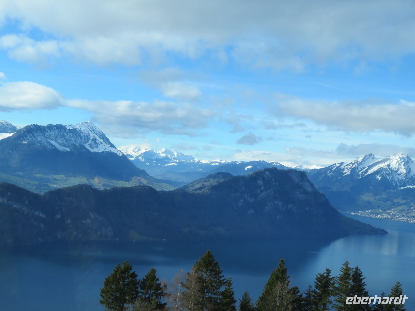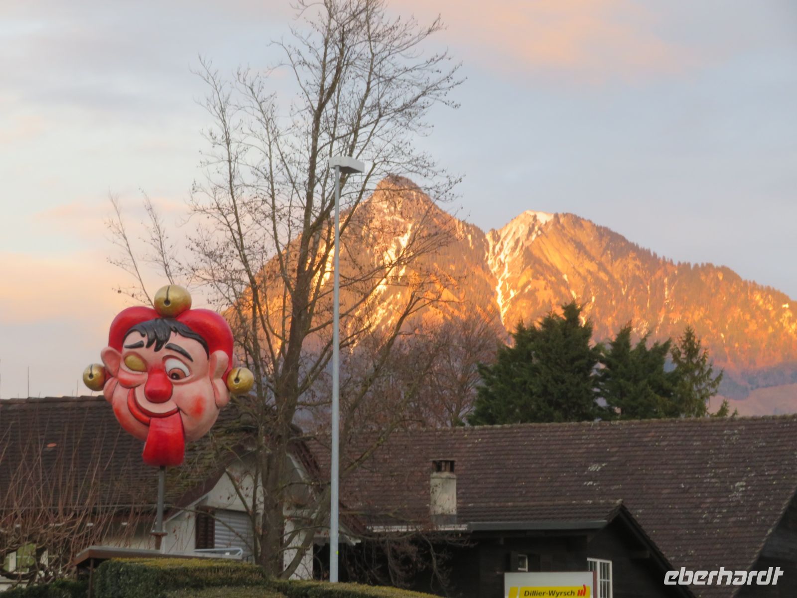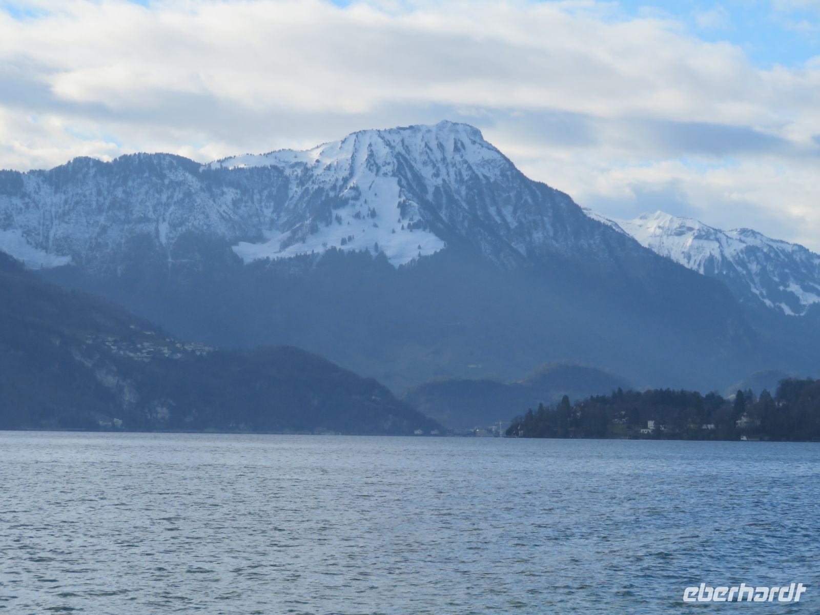 Nach dem Frühstück brechen wir zu unserem letzten Ausflug während unserer Reise auf: Die Rigi, auch Königin der Berge genannt, steht auf unserem Programm. Bei herrlichstem Sonnenschein – wiederum überrascht uns das Wetter, denn es war viel schlechter anagesagt – fahren wir mit dem nach Vitznau. Wir sind zu zeitig in Vitznau aber ganz problemlos können wir die Fahrt mit der Rigi-Bahn, der ältesten Zahnradbahn der Welt, um eine Stunde vorziehen. Der Zug windet sich über eine imposante Strecke ganz gemächlich durch die winterliche Landschaft auf die Rigi in 1.798 Metern Höhe. Auf dem Berg angekommen bietet sich uns ein einzigartiger Blick! Aber schnell merken wir, dass der Wind auch ganz heftig bläst und uns die kalte Luft um die Nase weht. Also entscheiden wir, auch die Rückfahrt etwas früher anzutreten. Nun genießen wir aber zunächst die fantastische Sicht auf das Panorama vom Säntis, die Glaner Alpen, die Zentralschweizer Alpen mit dem 3.200 Meter hohen Titlis und die Berge der Berner Alpen mit Eiger, Mönch und Jungfrau, Schreckhorn und Wetterhorn, die Viertausender bis zum Pilatus. Einfach nur atemberaubend, diese Landschaft! Auf der Nordseite liegen uns der Vierwaldstättersee, der Zugersee der Laurenzer See zu Füßen und in der Ferne sehen wir den Sempacher und den Sursee. Wir sind beeindruckt! Nun steht für uns ein historischer Wagen aus dem Jahr 1936 mit der netten, fröhlichen und sehr kompetenten Wagenführerin Melanie für die Rückfahrt bereits. Während der Talfahrt erfahren viele interessante Details zur Rigi-Bahn. Wir erreichen über Rigi-Staffelhöhe und Rigi-Kaltbad wieder Vitznau. Zum krönenden Abschluss dürfen wir noch einen kurzen Blick in das Depot der Rigi-Bahn werfen. Wir sehen einen neuen Triebwagen, welcher ab April 2022 auf der Strecke zum Einsatz kommt. Besonders interessant sind aber die historischen Loks und Wagen aus verschiedenen Epochen aus der 150jährigen Geschichte der Bahngesellschaft. Besonders die Lok 7 mit ihrem stehenden Kessel und die Dampflok 17 sind die Schätze der Rigi-Bahn und immer noch in Betrieb. Das ist noch ein toller Abschluss! Auf der Uferstraße reisen wir entlang des Sees. An der Hohlen Gasse, wo Wilhelm Tell mit einem Schuss mit seiner Armbrust den Landvogt Gessler getötet haben soll, legen wir noch eine kurze Pause ein. Wir lauschen im Info-Pavillon der Tell-Geschichte und der Geschichte der Erhaltung der Hohlen Gasse als Schweizer Nationaldenkmal. Am späten Nachmittag erreichen wir das Hotel Krone in Sarnen wieder.