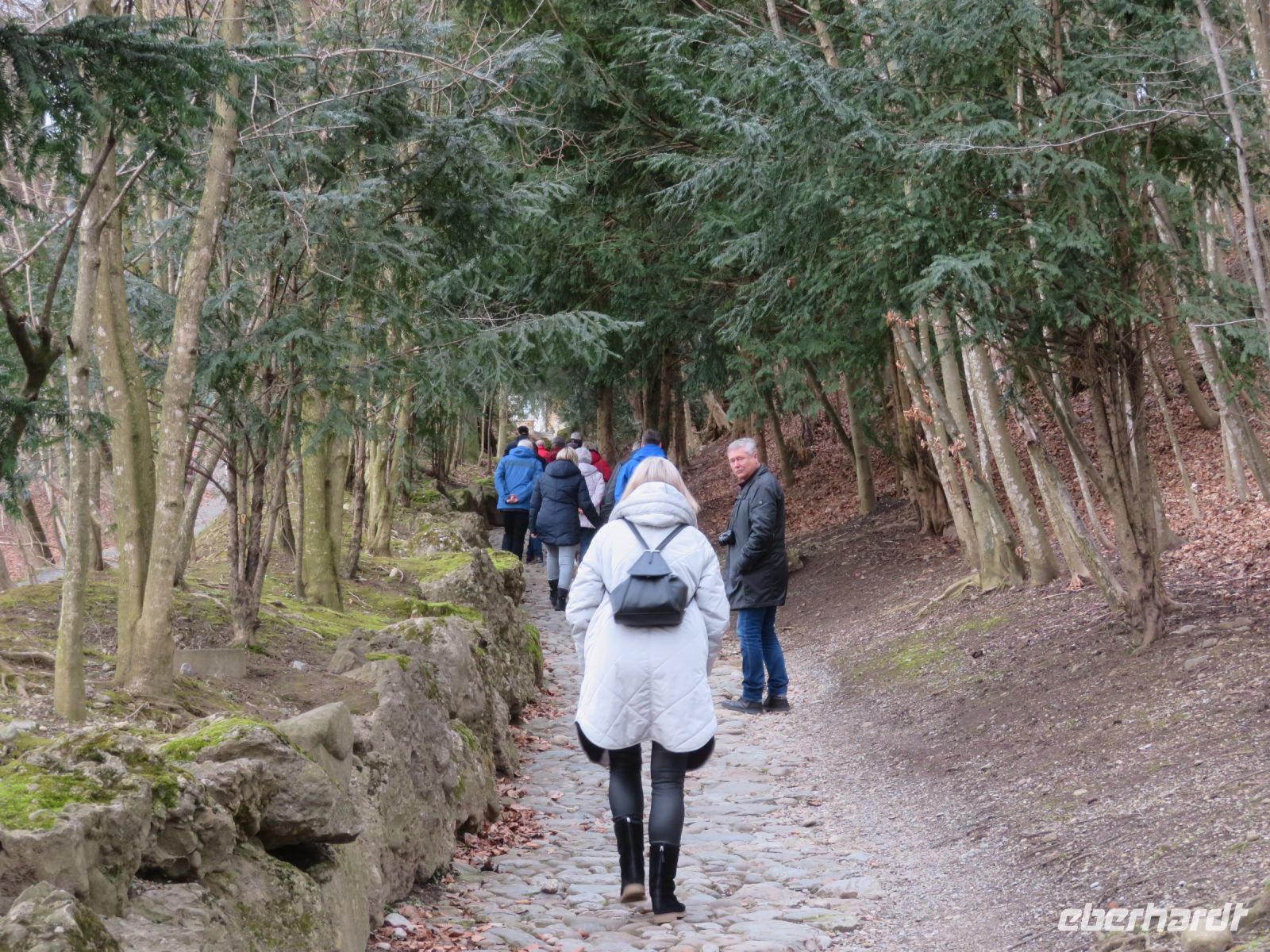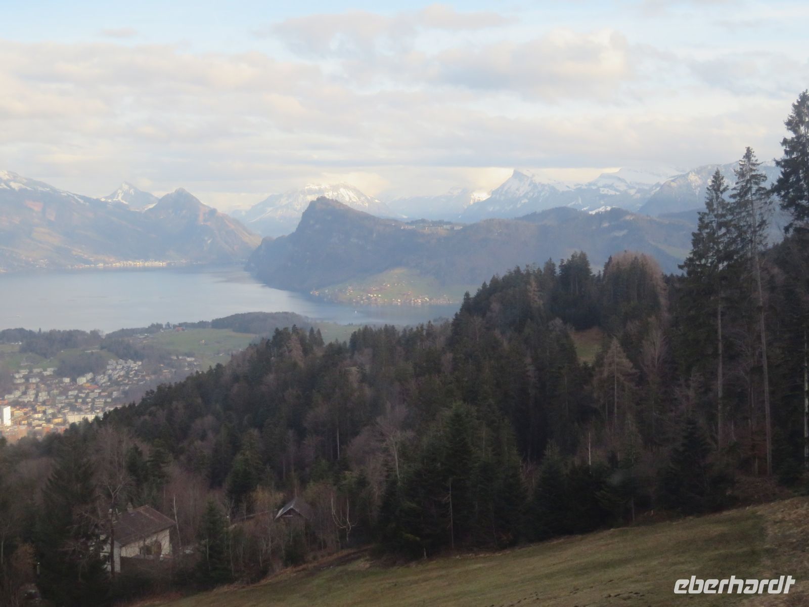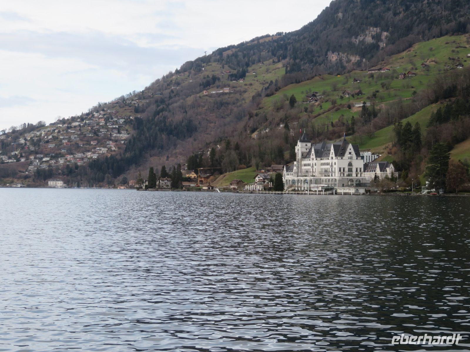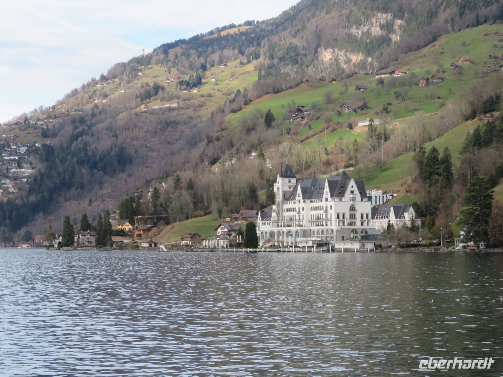 Nach dem Frühstück brechen wir zu unserem letzten Ausflug während unserer Reise auf: Die Rigi, auch Königin der Berge genannt, steht auf unserem Programm. Bei herrlichstem Sonnenschein – wiederum überrascht uns das Wetter, denn es war viel schlechter anagesagt – fahren wir mit dem nach Vitznau. Wir sind zu zeitig in Vitznau aber ganz problemlos können wir die Fahrt mit der Rigi-Bahn, der ältesten Zahnradbahn der Welt, um eine Stunde vorziehen. Der Zug windet sich über eine imposante Strecke ganz gemächlich durch die winterliche Landschaft auf die Rigi in 1.798 Metern Höhe. Auf dem Berg angekommen bietet sich uns ein einzigartiger Blick! Aber schnell merken wir, dass der Wind auch ganz heftig bläst und uns die kalte Luft um die Nase weht. Also entscheiden wir, auch die Rückfahrt etwas früher anzutreten. Nun genießen wir aber zunächst die fantastische Sicht auf das Panorama vom Säntis, die Glaner Alpen, die Zentralschweizer Alpen mit dem 3.200 Meter hohen Titlis und die Berge der Berner Alpen mit Eiger, Mönch und Jungfrau, Schreckhorn und Wetterhorn, die Viertausender bis zum Pilatus. Einfach nur atemberaubend, diese Landschaft! Auf der Nordseite liegen uns der Vierwaldstättersee, der Zugersee der Laurenzer See zu Füßen und in der Ferne sehen wir den Sempacher und den Sursee. Wir sind beeindruckt! Nun steht für uns ein historischer Wagen aus dem Jahr 1936 mit der netten, fröhlichen und sehr kompetenten Wagenführerin Melanie für die Rückfahrt bereits. Während der Talfahrt erfahren viele interessante Details zur Rigi-Bahn. Wir erreichen über Rigi-Staffelhöhe und Rigi-Kaltbad wieder Vitznau. Zum krönenden Abschluss dürfen wir noch einen kurzen Blick in das Depot der Rigi-Bahn werfen. Wir sehen einen neuen Triebwagen, welcher ab April 2022 auf der Strecke zum Einsatz kommt. Besonders interessant sind aber die historischen Loks und Wagen aus verschiedenen Epochen aus der 150jährigen Geschichte der Bahngesellschaft. Besonders die Lok 7 mit ihrem stehenden Kessel und die Dampflok 17 sind die Schätze der Rigi-Bahn und immer noch in Betrieb. Das ist noch ein toller Abschluss! Auf der Uferstraße reisen wir entlang des Sees. An der Hohlen Gasse, wo Wilhelm Tell mit einem Schuss mit seiner Armbrust den Landvogt Gessler getötet haben soll, legen wir noch eine kurze Pause ein. Wir lauschen im Info-Pavillon der Tell-Geschichte und der Geschichte der Erhaltung der Hohlen Gasse als Schweizer Nationaldenkmal. Am späten Nachmittag erreichen wir das Hotel Krone in Sarnen wieder.