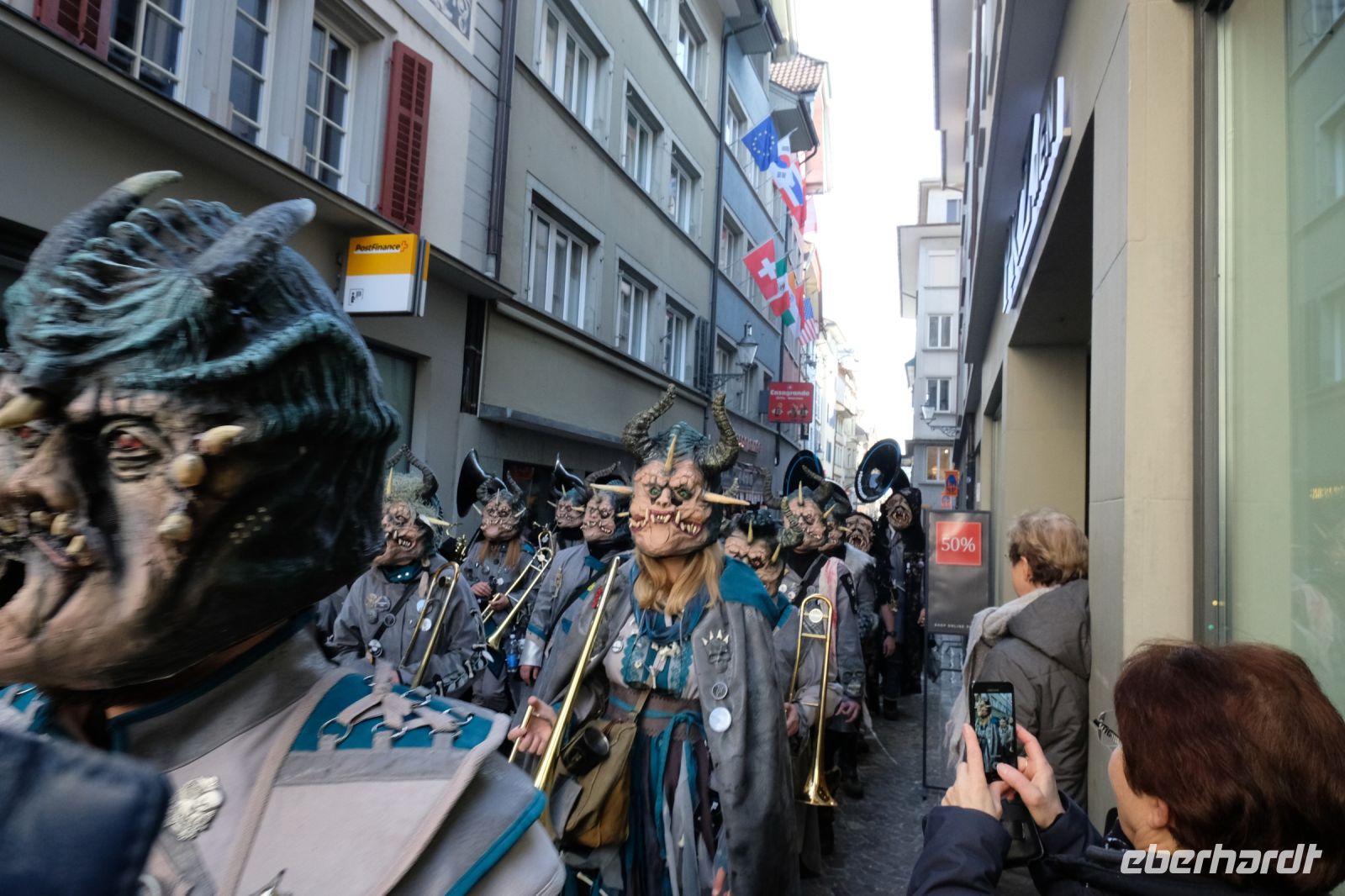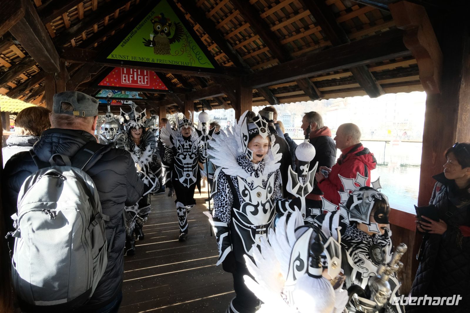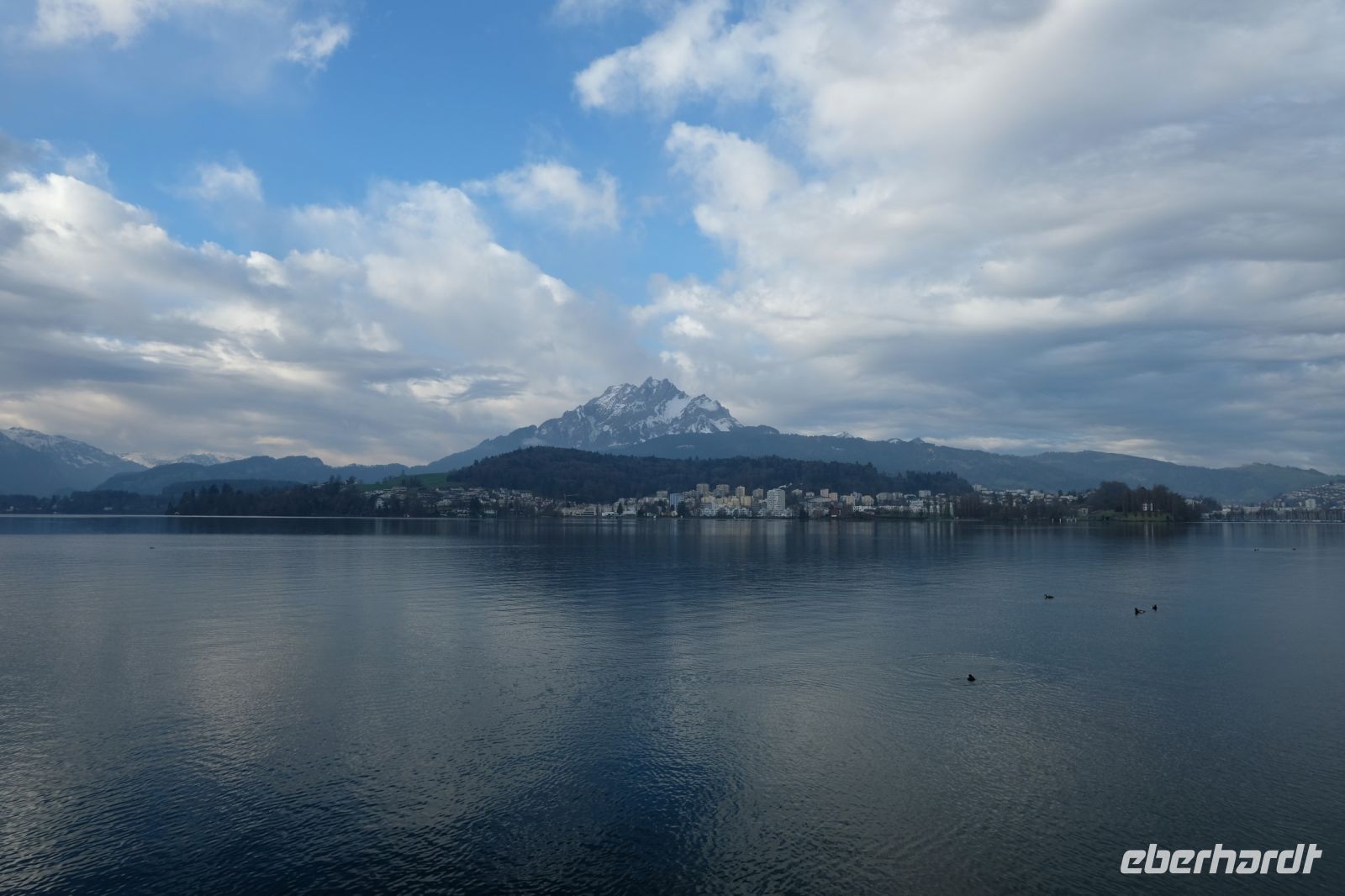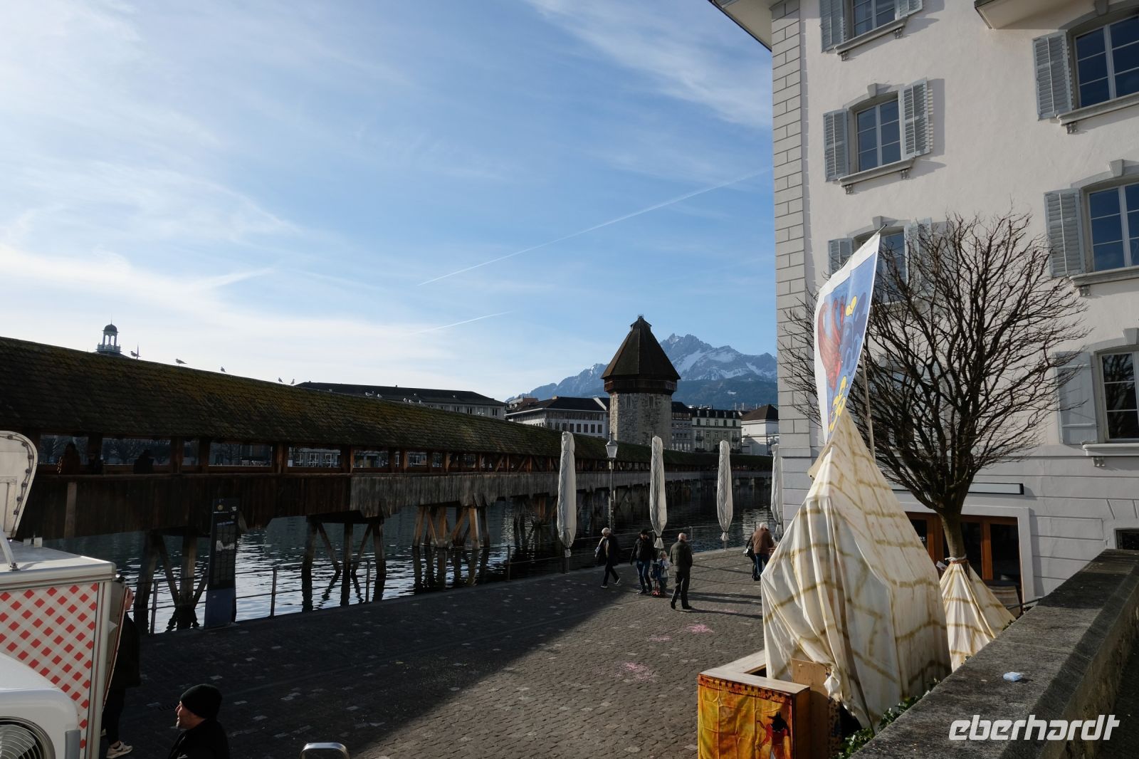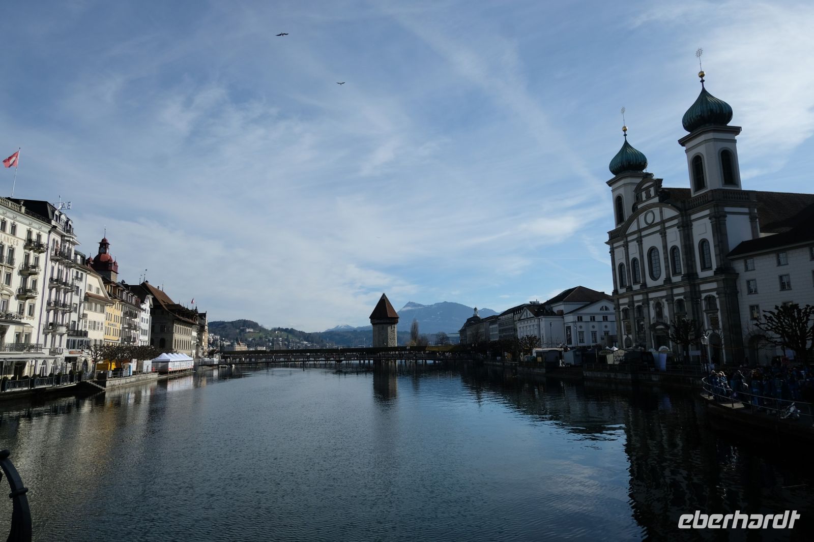 Nach unserem gemeinsamen Frühstück fuhren wir heute voller Erwartungen nach Luzern. Wir wussten dass heute Fasnacht ist, aber was das in Luzern bedeutet war uns nicht klar. Die Sonne lacht, und alle hatten beste Laune. Unser erstes Ziel war der Löwenplatz, wo uns schon Susy Hoffstetter, unsere Stadtführerin, erwartete. Nach umfangreichen Erklärungen am Löwendenkmal ging es dann zu Fuß durch die Stadt Luzern. Sie ist das Tor zur Zentralschweiz und eine der schönsten Städte des Landes. Susy führte uns über die Kapellbrücke und zur Jesuitenkirche. Leider war die Kirche wegen der Fastnachtsfeier geschlossen. Dann ging sie mit uns zum Marktplatz und weiter durch die Altstadt wieder zurück zum Schwanenplatz. Susy, die uns ihre Stadt sehr gut vermittelte, gab uns auch Einblicke in soziale Verhältnisse, Spannungsfelder und ökonomische Zwänge durch das Ausbleiben der asiatischen Gäste, aber auch über die Tradition der Fastnacht in Luzern. Die berühmte Guggenmusik begeisterte uns alle. Imposant die vielen Masken und Kostüme. Wir beobachteten wie sich die Stadt immer mehr in eine Fasnachtshochburg verwandelte. Nach der Verabschiedung unserer Stadtführerin blieb uns noch Zeit für einen individuellen Stadtbummel. Anschließend fuhren wir mit einigen Gästen nach Kriens. Sie wollten alle auf den Pilatus, in der Hoffnung auf atemberaubende Bergblicke. Zunächst mit der 4er Gondel bis nach Fräkmüntegg, danach weiter mit der Kabinenbahn bis zum Pilatus. Der Esel, als zentraler Gipfel (2122m) war nicht zu erklimmen, die Schneemassen waren noch zu heftig. Wir alle wurden nicht enttäuscht, die Berge waren zu sehen, selbst Eiger, Mönch und Jungfrau zeigten sich. Inzwischen hatte Jan, unser Busfahrer, den in der Stadt verbliebenen Gast geholt, und so konnten alle Reiseteilnehmer am späten Nachmittag zurück zum Hotel fahren. Zum Abendessen gab es ein leckeres Käsefondue.