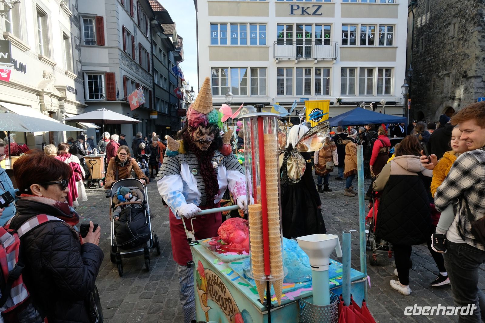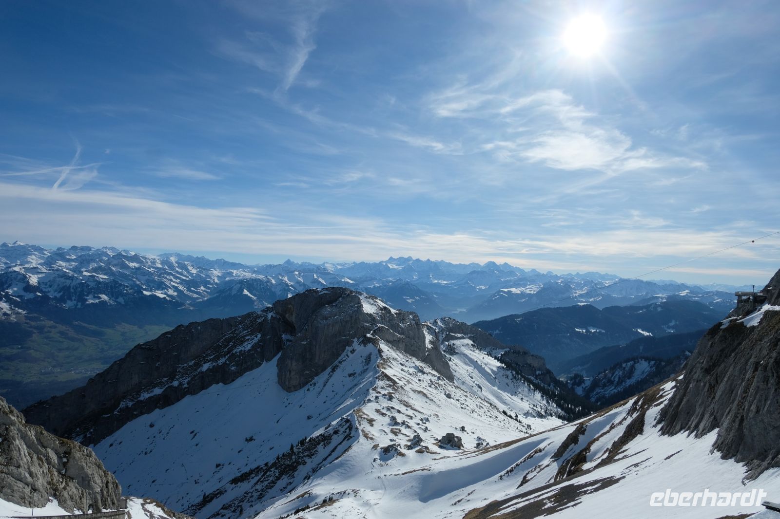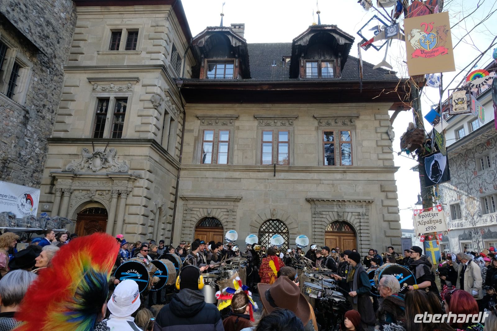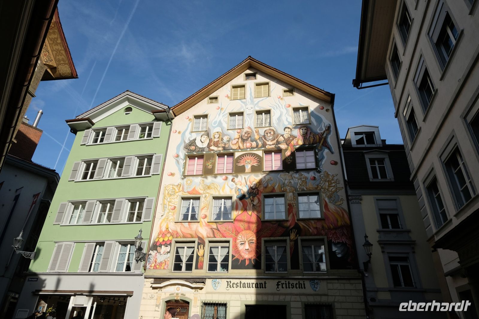 Nach unserem gemeinsamen Frühstück fuhren wir heute voller Erwartungen nach Luzern. Wir wussten dass heute Fasnacht ist, aber was das in Luzern bedeutet war uns nicht klar. Die Sonne lacht, und alle hatten beste Laune. Unser erstes Ziel war der Löwenplatz, wo uns schon Susy Hoffstetter, unsere Stadtführerin, erwartete. Nach umfangreichen Erklärungen am Löwendenkmal ging es dann zu Fuß durch die Stadt Luzern. Sie ist das Tor zur Zentralschweiz und eine der schönsten Städte des Landes. Susy führte uns über die Kapellbrücke und zur Jesuitenkirche. Leider war die Kirche wegen der Fastnachtsfeier geschlossen. Dann ging sie mit uns zum Marktplatz und weiter durch die Altstadt wieder zurück zum Schwanenplatz. Susy, die uns ihre Stadt sehr gut vermittelte, gab uns auch Einblicke in soziale Verhältnisse, Spannungsfelder und ökonomische Zwänge durch das Ausbleiben der asiatischen Gäste, aber auch über die Tradition der Fastnacht in Luzern. Die berühmte Guggenmusik begeisterte uns alle. Imposant die vielen Masken und Kostüme. Wir beobachteten wie sich die Stadt immer mehr in eine Fasnachtshochburg verwandelte. Nach der Verabschiedung unserer Stadtführerin blieb uns noch Zeit für einen individuellen Stadtbummel. Anschließend fuhren wir mit einigen Gästen nach Kriens. Sie wollten alle auf den Pilatus, in der Hoffnung auf atemberaubende Bergblicke. Zunächst mit der 4er Gondel bis nach Fräkmüntegg, danach weiter mit der Kabinenbahn bis zum Pilatus. Der Esel, als zentraler Gipfel (2122m) war nicht zu erklimmen, die Schneemassen waren noch zu heftig. Wir alle wurden nicht enttäuscht, die Berge waren zu sehen, selbst Eiger, Mönch und Jungfrau zeigten sich. Inzwischen hatte Jan, unser Busfahrer, den in der Stadt verbliebenen Gast geholt, und so konnten alle Reiseteilnehmer am späten Nachmittag zurück zum Hotel fahren. Zum Abendessen gab es ein leckeres Käsefondue.