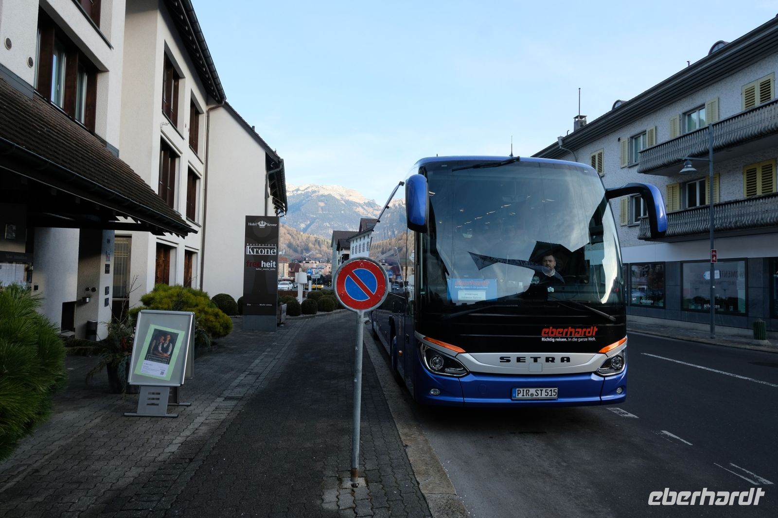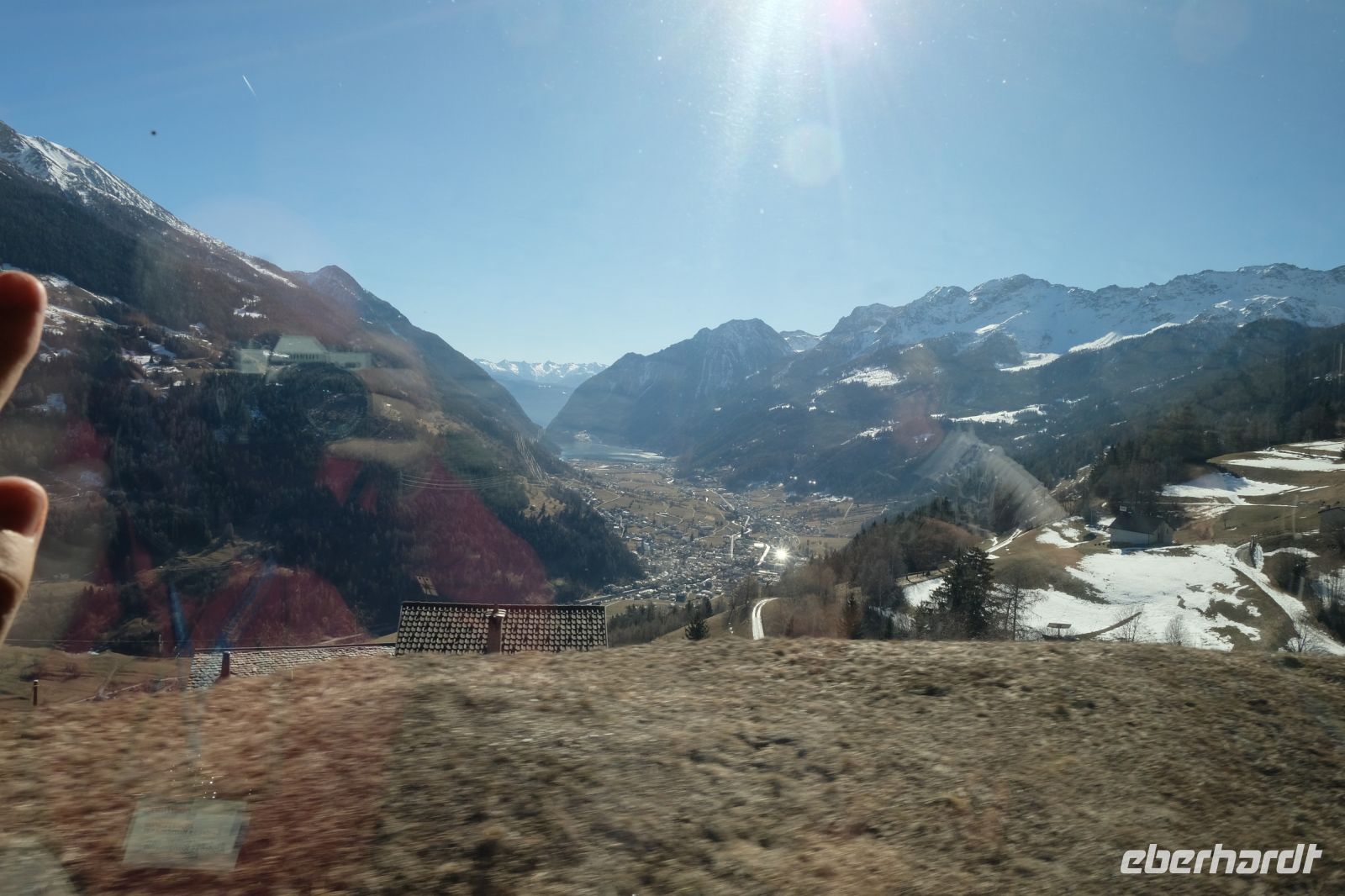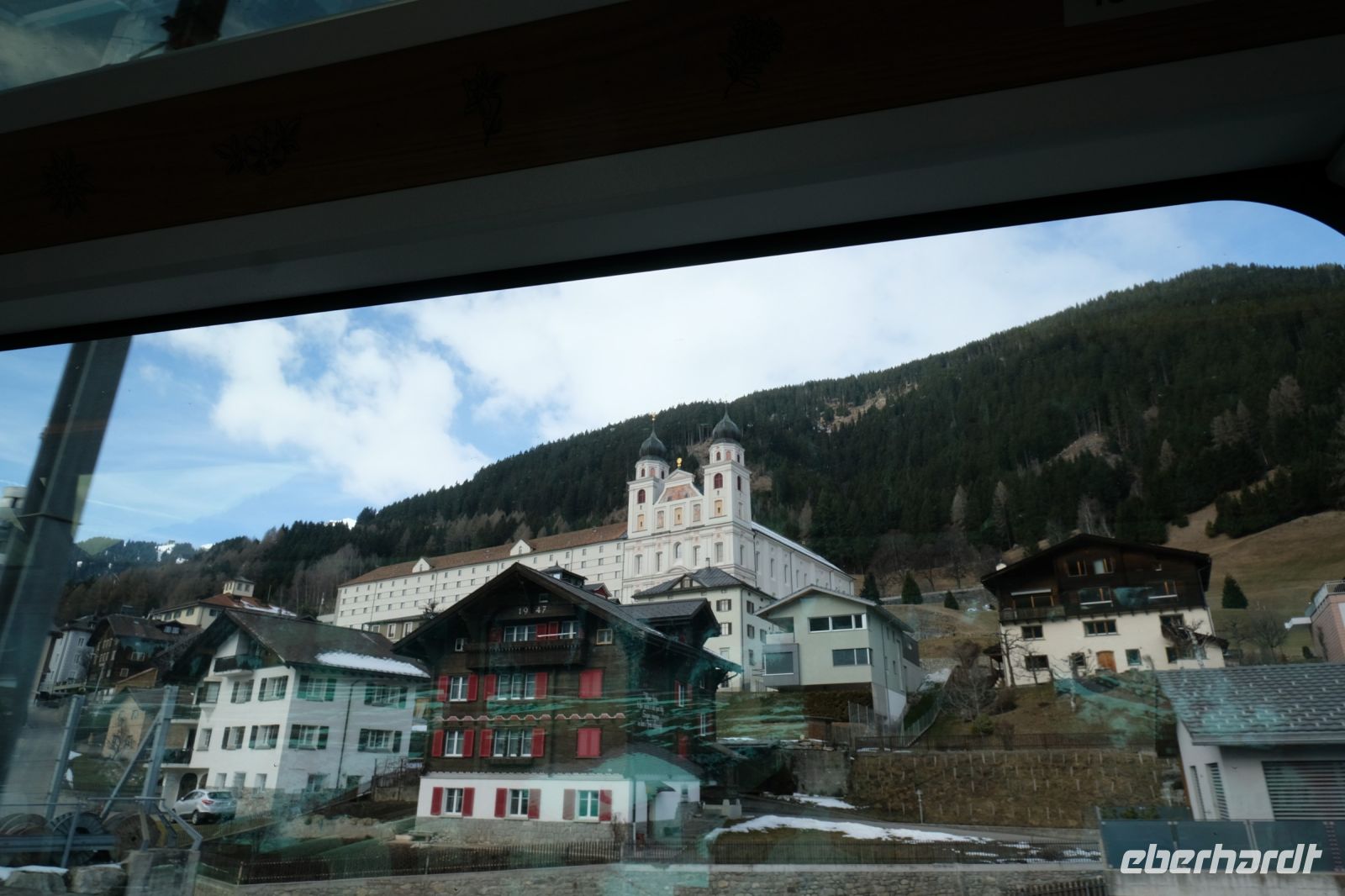 Heute mussten die Koffer nach dem Frühstück im Bus verladen werden, denn unser Busfahrer Jahn fuhr zunächst nach Andermatt, um uns dort zur Mittagszeit in Empfang zu nehmen. Nach einem ausgiebigen Frühstück spazierten wir zum Bahnhof und fuhren von dort mit dem Glacier-Express über Chur, Disentis nach Andermatt. In Disentis bewunderten wir das Benediktinerkloster St. Martin aus dem Zug heraus. Den langsamen Aufstieg zum Oberalppass konnten wir bei Sonnenschein und viel Schnee genießen. Wir konnten nur kurz die großen Veränderungen der letzten Jahre bemerken. Mit dem Tourismusprojekt Andermatt Swiss Alps, des ägyptischen Multimilliardärs und Investors Samih Sawiris, hofft man auf eine starke touristische Entwicklung. Er investiert in dieser Tourismusregion in mehrere Hotels, Apartmenthäuser, 25 Villen, eine Eissporthalle, Hallenbad, eine Konzert- und Kongresshalle und einen Golfplatz. Pünktlich 14.00 Uhr fuhren wir vom Bahnhof Andermatt nach Sarnen, unserem neuen Domizil für 3 Nächte. Wir machten noch einen Fotostopp an der Teufelsbrücke und am Telldenkmal in Altdorf. Im Hotel Krone in Sarnen wurden wir freundlich begrüßt, und es blieb noch Zeit einen kleinen Spaziergang durch den Ort zu unternehmen. Das 3-Gang Abendessen schmeckte sehr gut und wurde uns freundlich serviert.