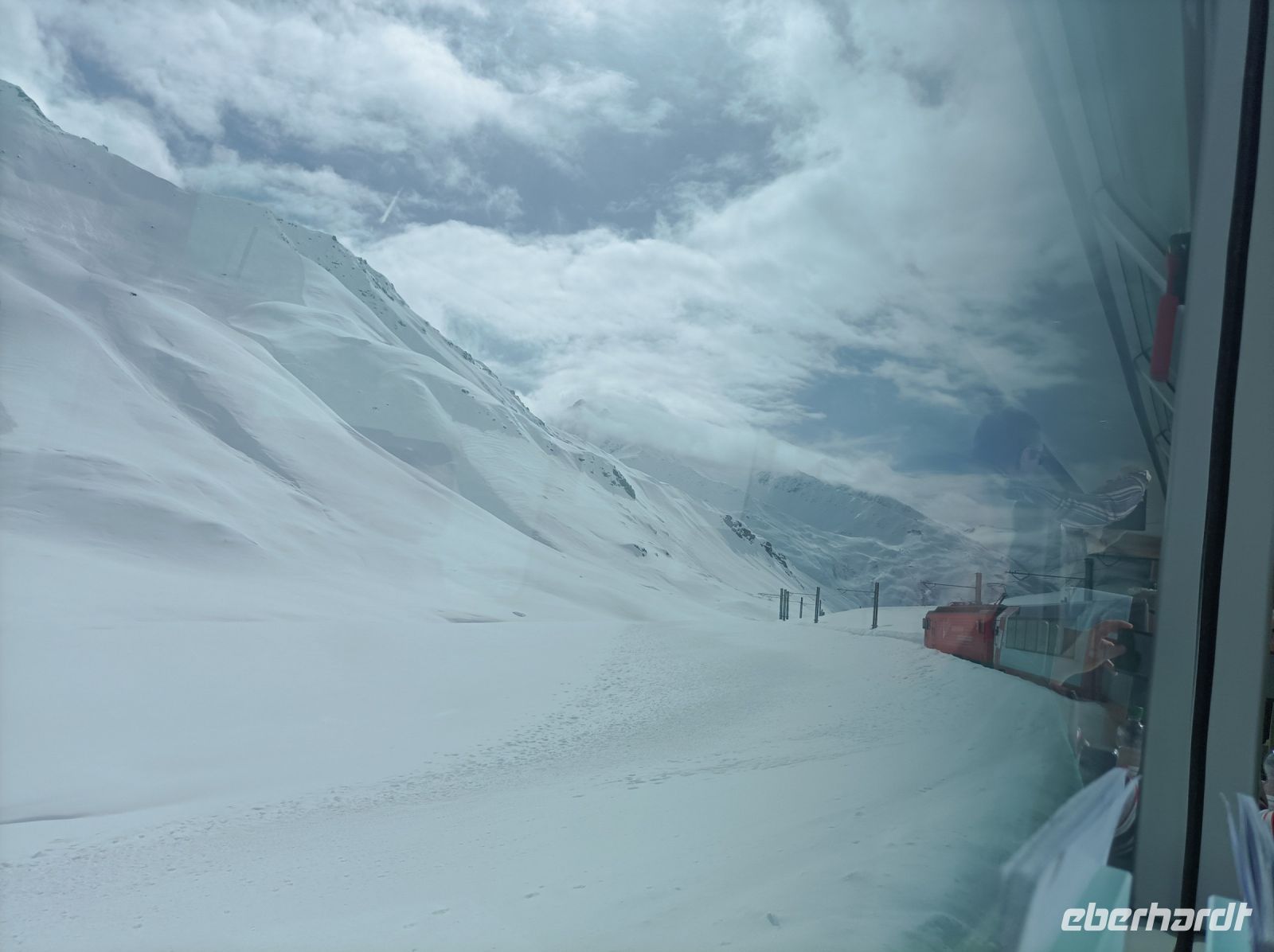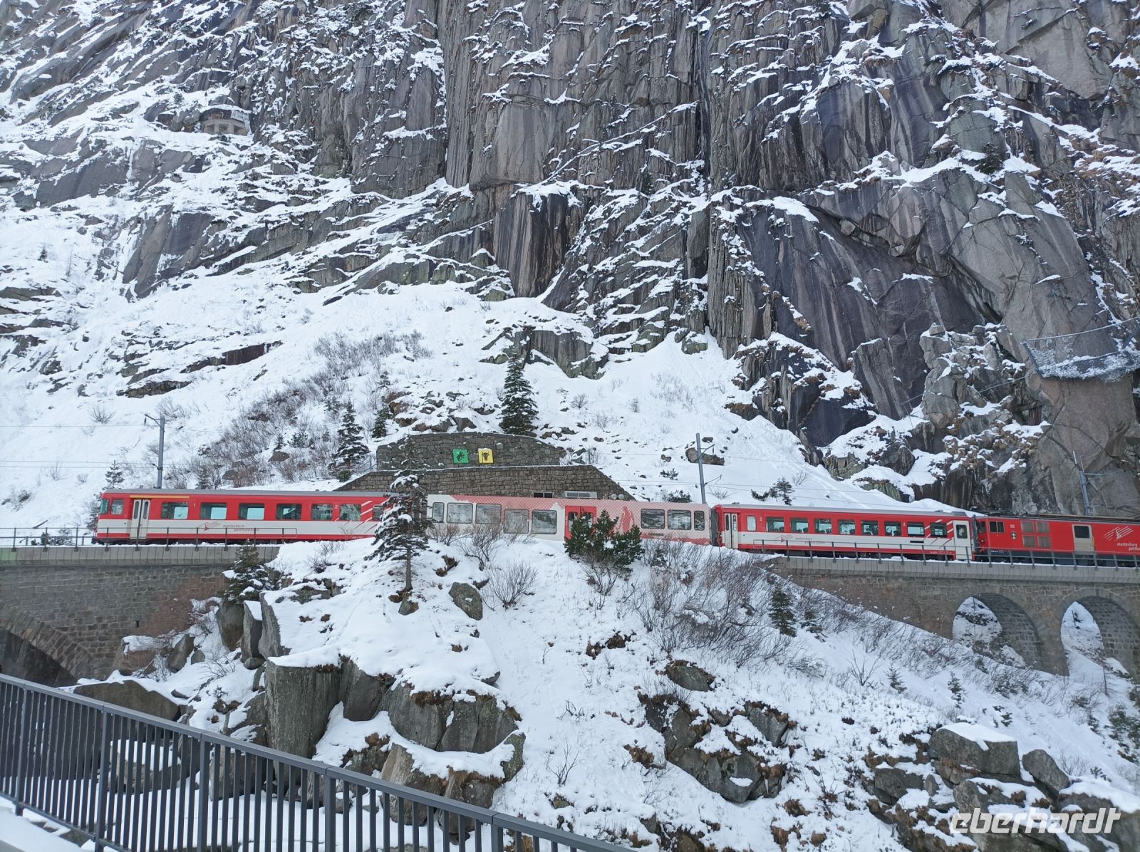 Heute haben wir eine beeindruckende Bahnfahrt auf dem Programm. Wir werden die höchste Bahnverbindung, die offen und ohne Scheiteltunnel über die Alpen führt, erleben.