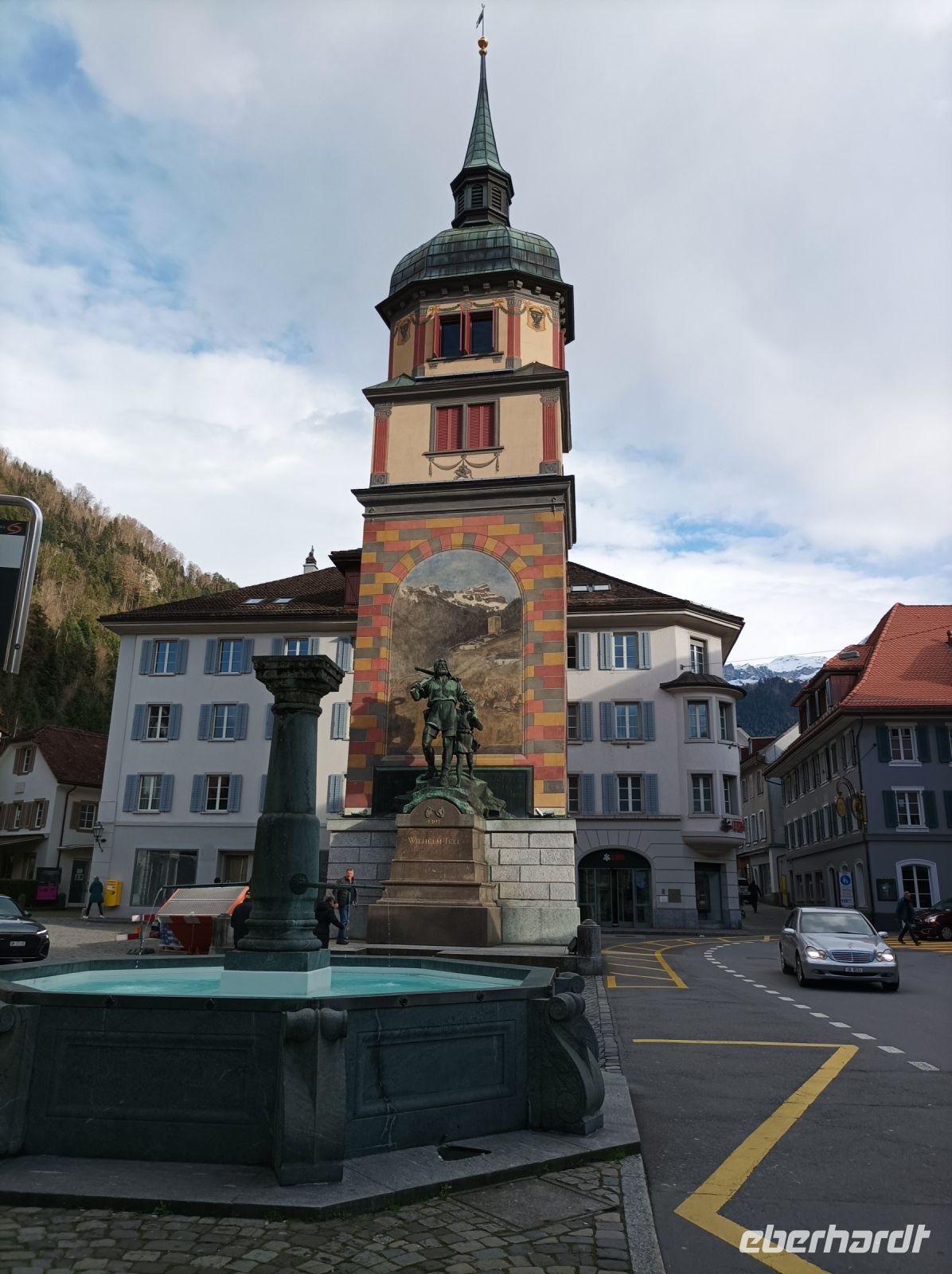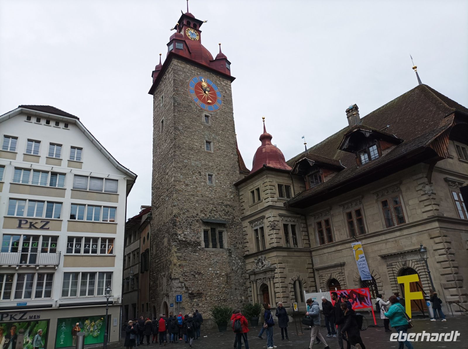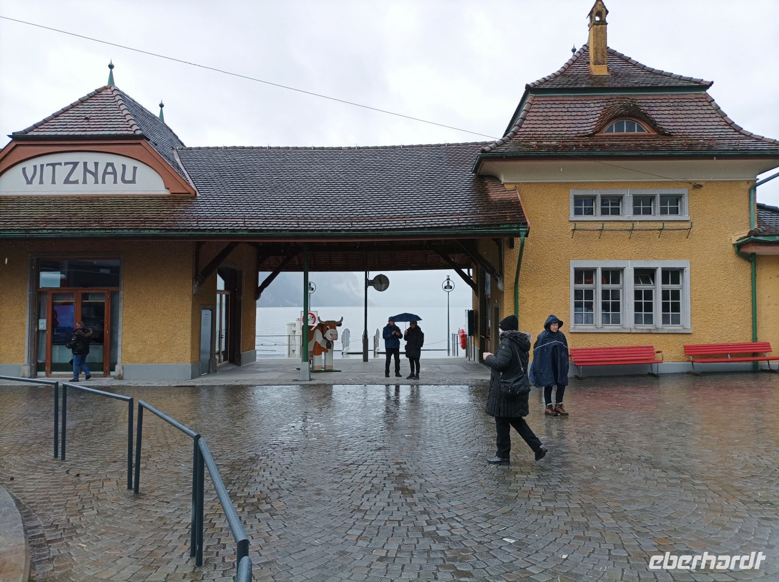 Mit dem Bus fahren wir gegen 09.00 Uhr nach Vitznau. Doch unterwegs lassen wir in Küssnacht die Geschichte von Wilhelm Tell noch einmal aufleben. Es handelt sich um die Holle Gasse. Zeit bleibt, um diese Gasse zu begehen und auch die Geschichte von Wilhelm Tell aufleben zu lassen. Nebenbei bleibt noch Zeit für einen Kaffee. Von Vitznau fahren wir mit der Bahn eine imposante Strecke auf die Rigi in 1.800 Meter. Der Zug fährt durch eine winterliche Landschaft, nur auf der Rigi war zu viel Schnee und keine Sicht in die Berge. Schade! Nach einer Stunde fahren wir zurück nach Vitznau. Von hieraus gibt es verschiedene Möglichkeiten, um nach Sarnen zu kommen. Während einige Gäste mit dem Schiff nach Luzern und mit der Bahn nach Sarnen kommen. Fährt der größere Teil der Gruppe mit dem Bus nach Sarnen und nutzt die Möglichkeit Sarnen zu erkunden.