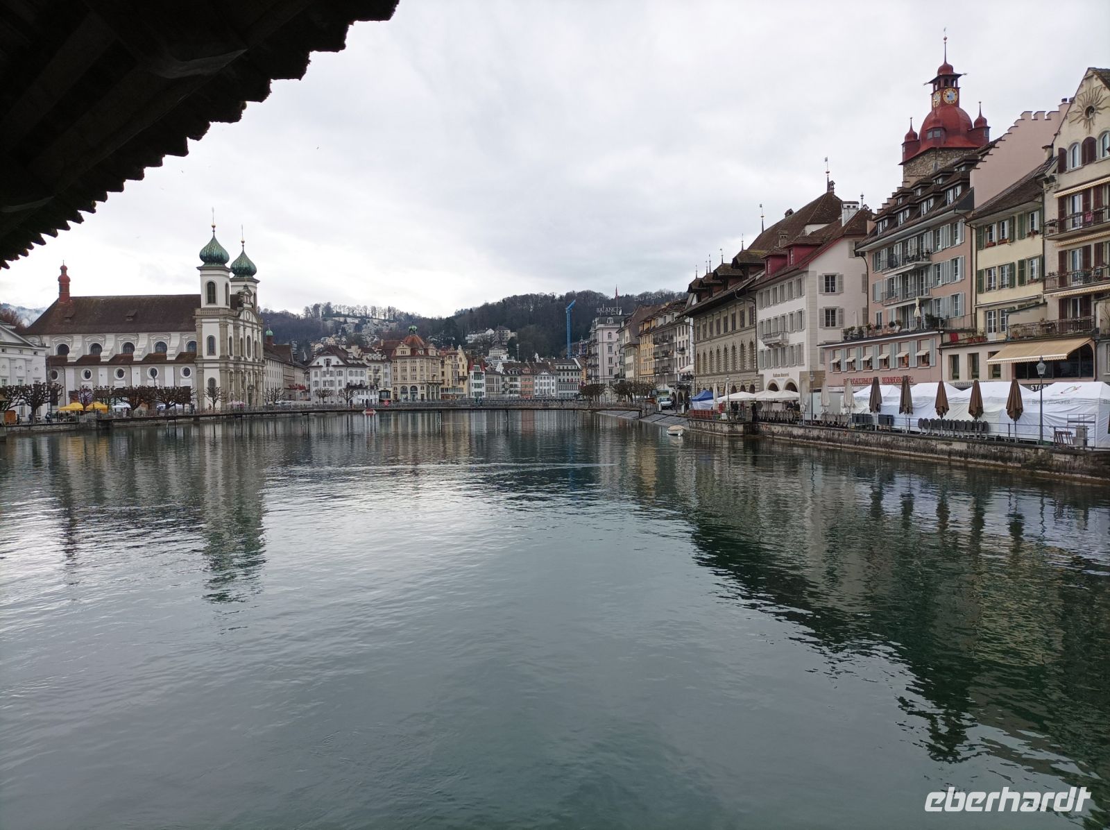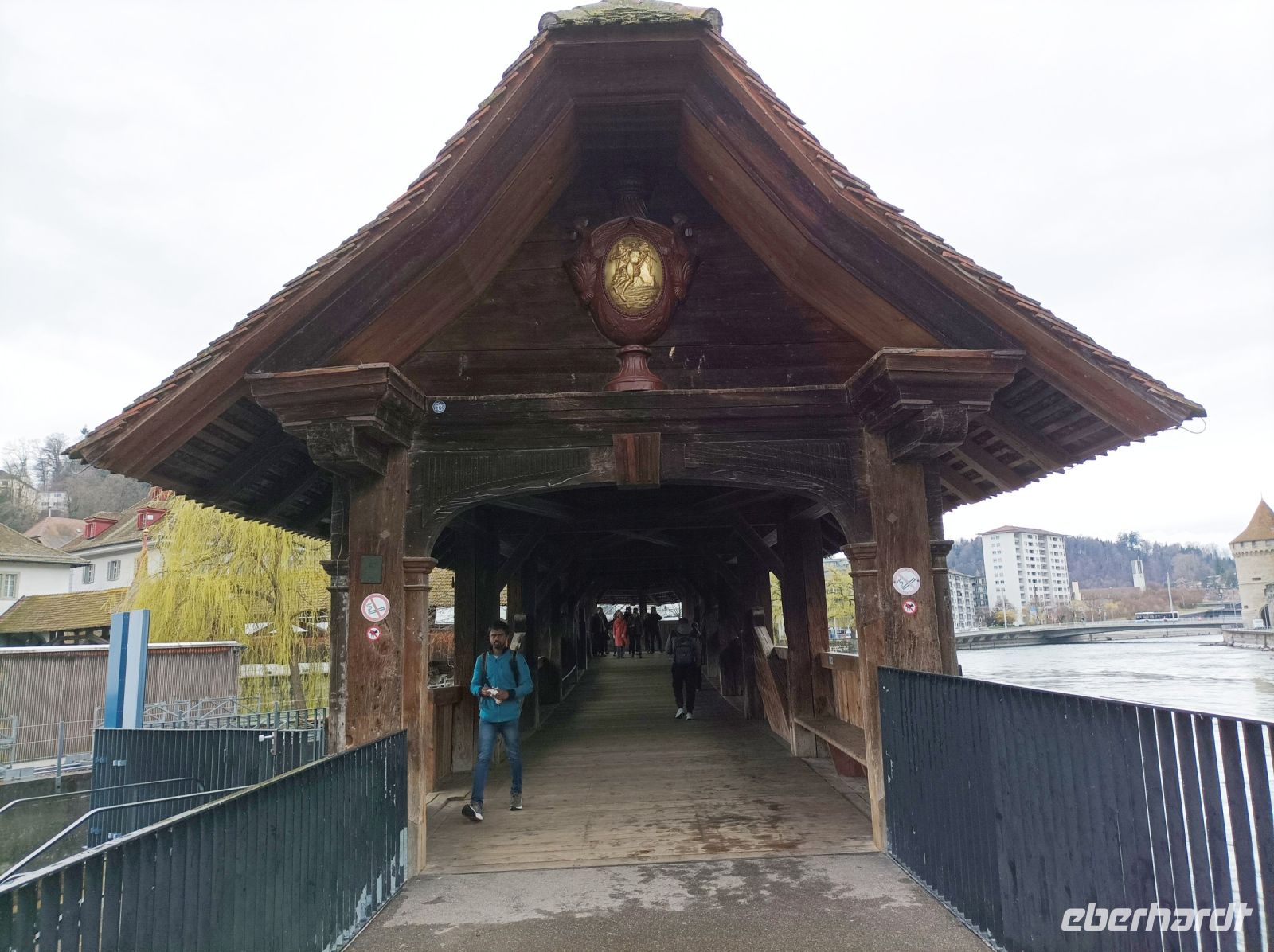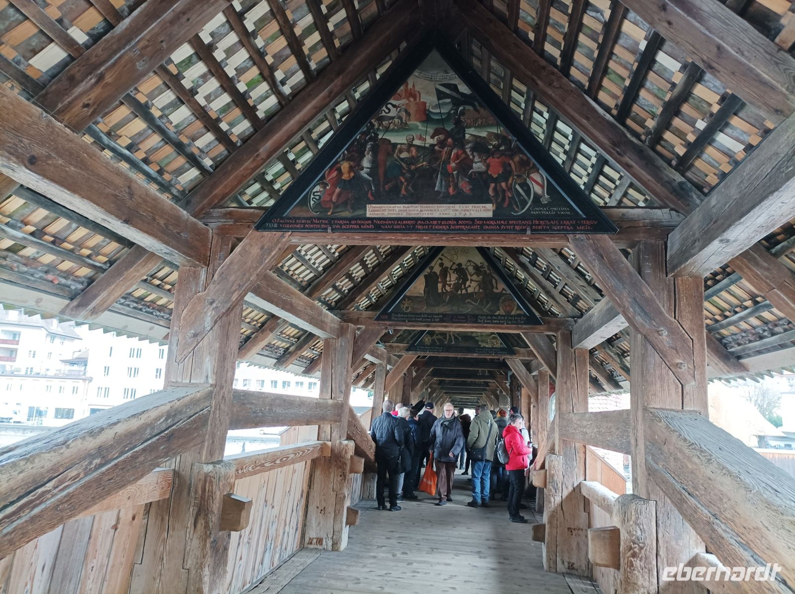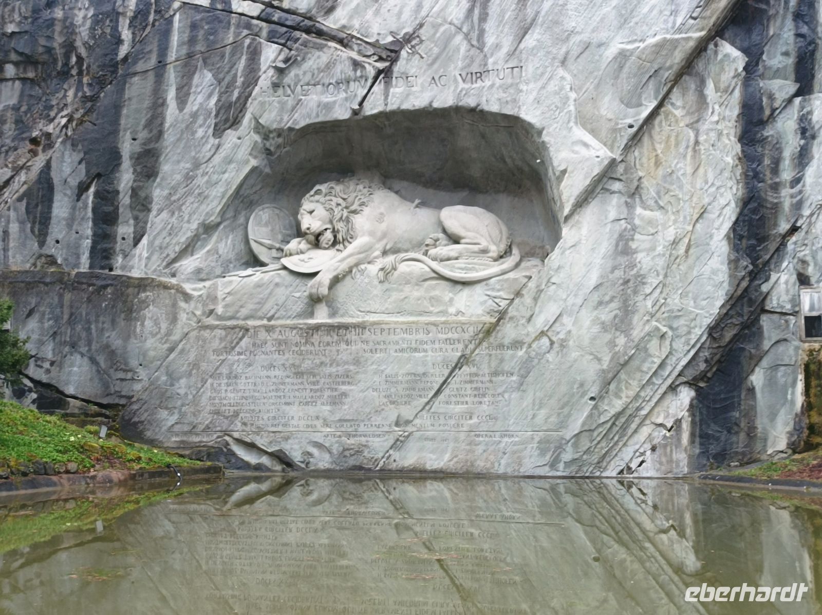 In Luzern angekommen, erwartet uns unsere Stadtführerin Prisca Spiller am Löwenplatz. Wir spazieren zusammen zum Löwendenkmal. Der sterbende Löwe, der in eine Sandsteinwand gemeißelt wurde, erinnert an den Tod der ca. 1000 Schweizer Offiziere und Soldaten. Sie standen im Dienst Ludwigs dem XVI. Während der Französischen Revolution verteidigten sie im Tuileriesturm 1792 in Paris die königliche Residenz. Nach dem Besuch des Löwendenkmals fahren wir mit dem Bus zum Schwanenplatz. Von hieraus spazieren wir durch die Altstadt über die Kapellbrücke, der ältesten erhaltenen Holzbrücke Europas, die nach dem Brand 1993 originalgetreu restauriert wurde, weiter zur Jesuiten Kirche mit Besichtigung. Danach führt uns Prisca immer an der Reus entlang, vorbei an dem technikgeschichtlich einzigartigen Nadelwehr(1860). Anschließend kommen wir an die malerischen Spreuerbrücke, die um 1408 gebaut und mit Totentanzbildern geschmückt wurde. Weiter führt Sie uns über die unterschiedlichen Plätze, über den Mühlenplatz, den Hirschenplatz, den Weinmarkt und dem Kapellplatz. Am Schwanenplatz verabschieden wir uns von Prisca und danken Ihr für die hervorragende Führung durch Luzern. Eine Stunde Zeit bleibt für einen Kaffee oder ein leckeres Essen.