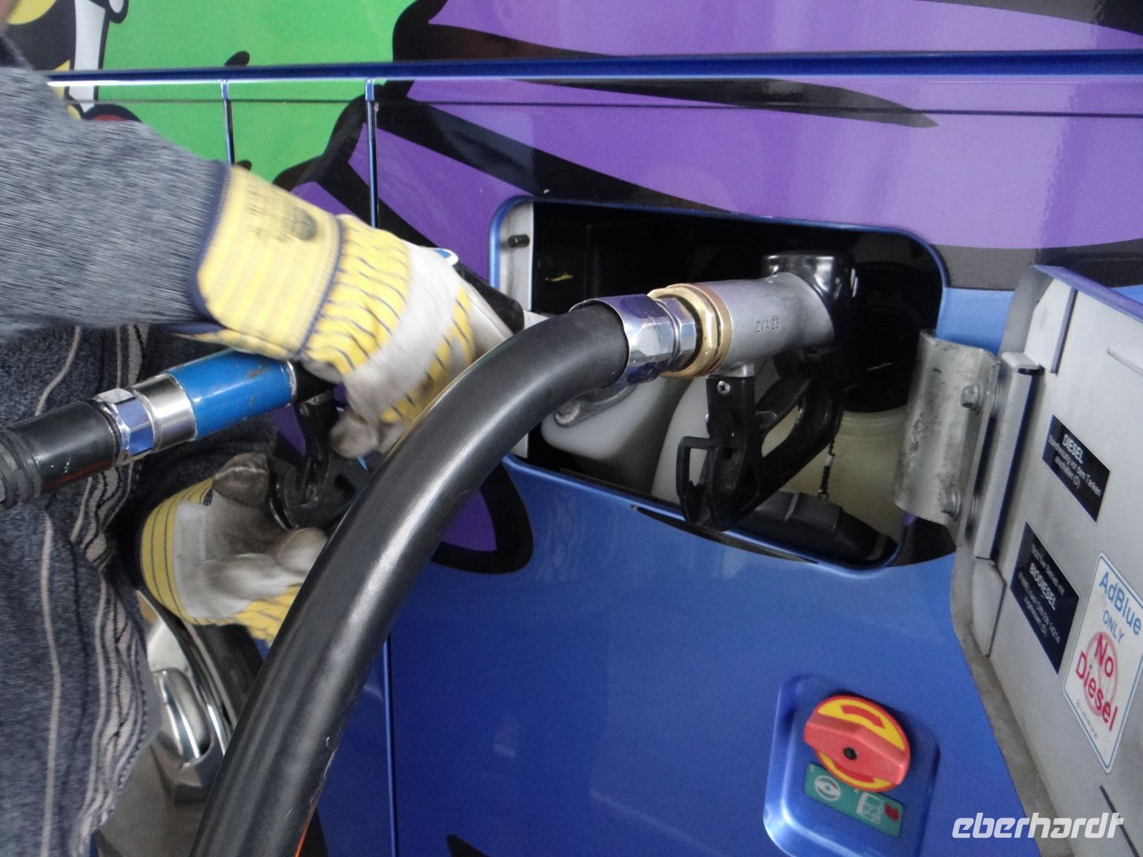 Heiko und unser schöner Bus wartet schon auf uns. Wie schön, erwartet zu werden. Das Mittagessen haben wir schon per Funk weitergegeben, so dass die Würstchen schon bereit sind, als wir ankommen. Und der Kaffee schmeckt.