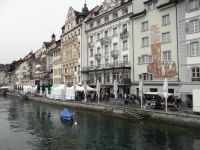 Wir schreiten runter zum Vierwaldstätter See, vorbei an der Hofkirche St. Leodegar. Auf unserem Weg liegen zwei prächtige Magnolienbäume. Am See laufen wir ein Stück die Promenade entlang, machen vor dem Hotel Schweizer Hof Halt und bewundern die Anlagestelle, die eigens zum Besuch Kaiser Wilhelms gebaut worden ist. Dann stehen wir in der Altstadt. Heute ist Markt auf beiden Ufern der Reuss, die hier den See verlässt. Gestern hat sie noch munter sprudelnd unseren Weg von Andermatt nach Altdorf begleitet und ist unter der Teufelsbrücke hindurchgerauscht. Heute treffen wir sie hier.