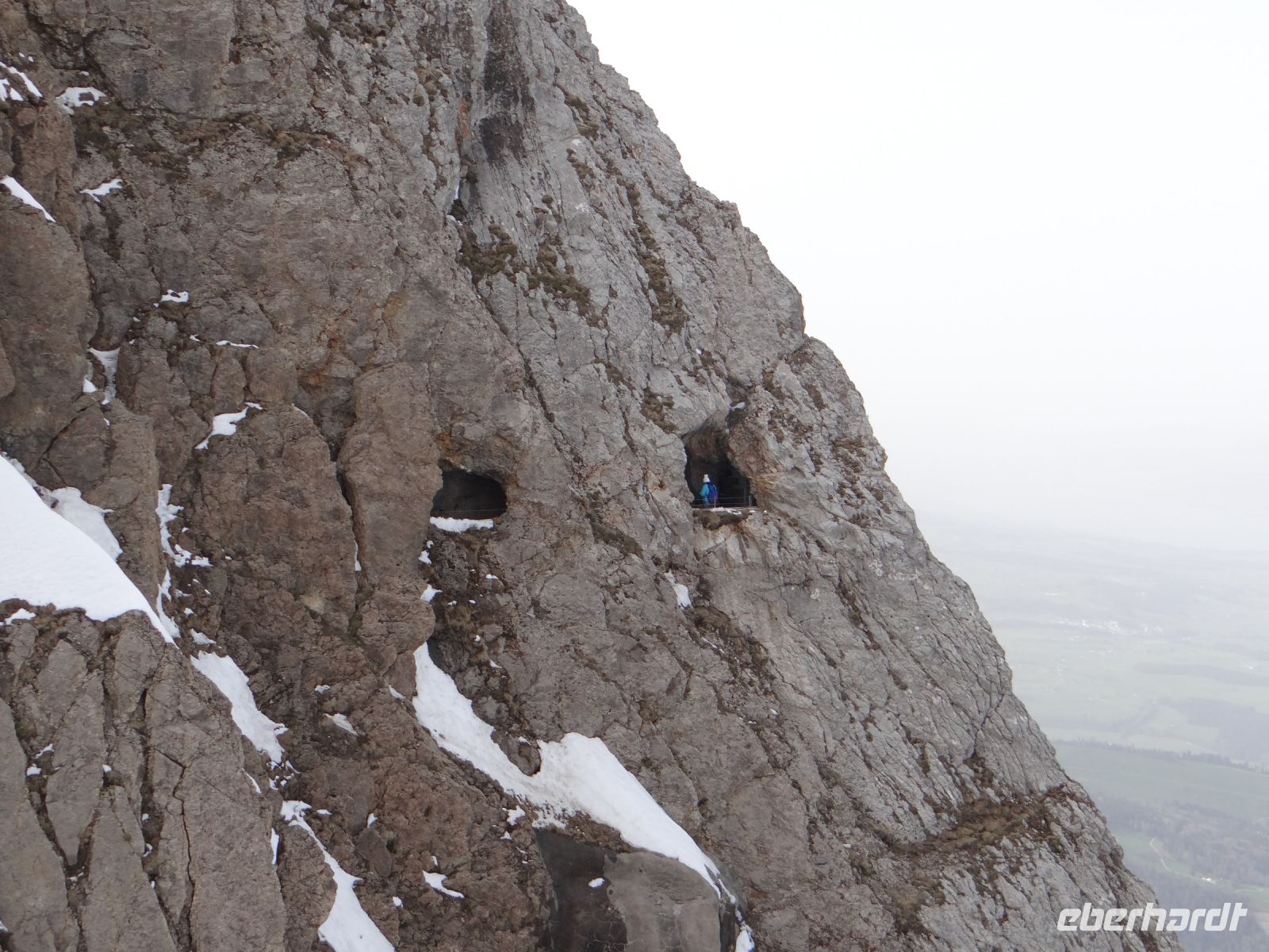 Wir laufen über den Drachenweg, der in den Fels geschlagen worden ist mit großen Balkonen und Fenstern, die den Blick in die Landschaft freigeben. Im Untergeschoss läuft eine Multimediashow über den Pilatus und seine Drachenlegende. Der lange Flur daneben zeigt anhand von Dokumenten den Bau von Bahn und Hotel. Irgendwie ging damals alles ganz schnell: der Abulatunnel mit 5 km wurde in vier Jahren gebaut, die Zahnradbahn auf den Pilatus in zwei Jahren. Das scheint heute unvorstellbar, zumal die Bauwerke immer noch Bestand und befahren werden.