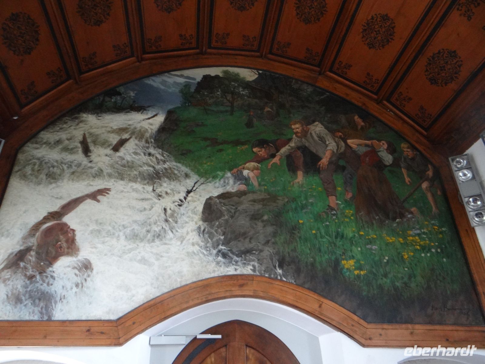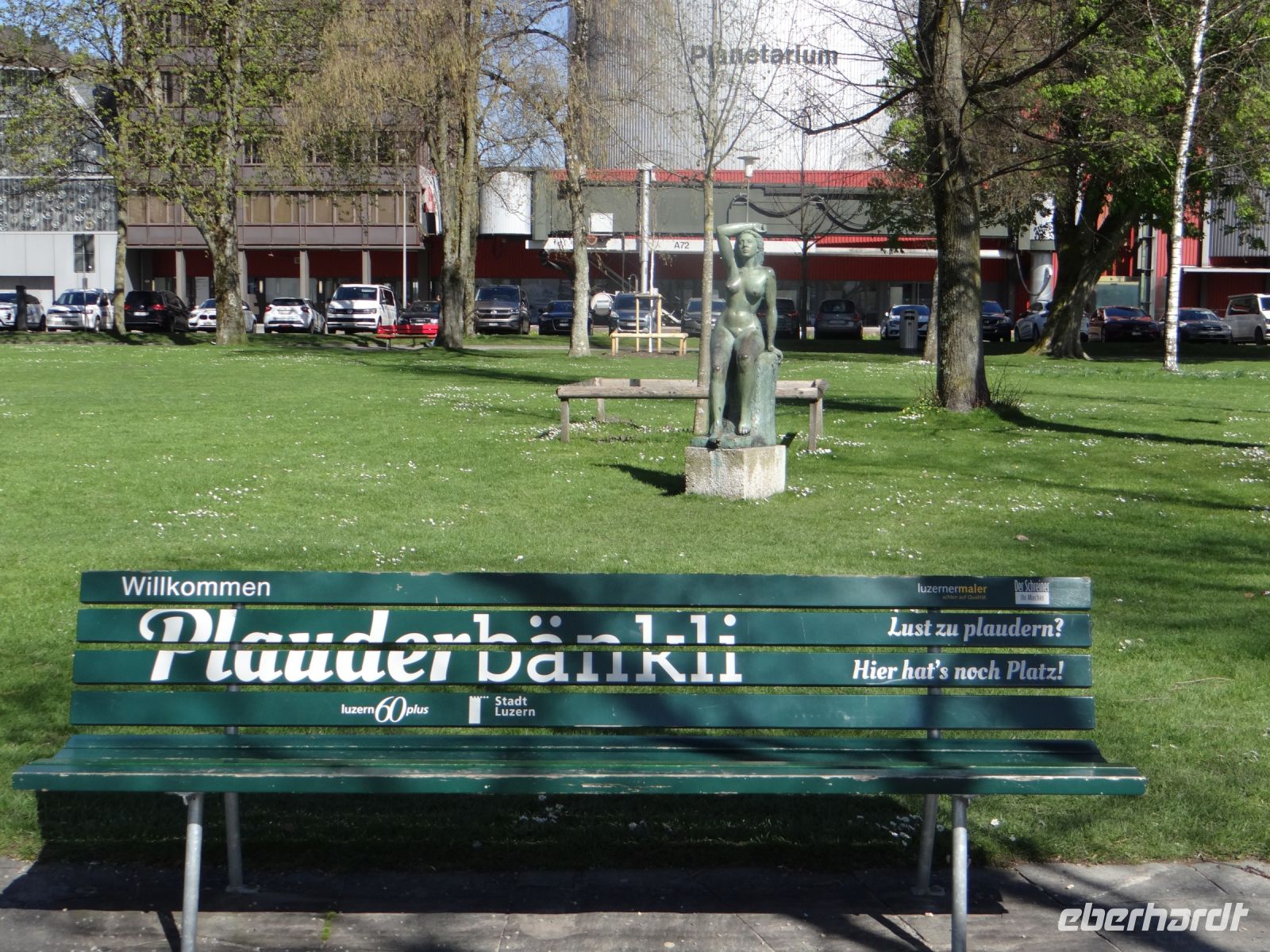Nun geht es weiter nach Sarnen, wo wir die kommenden vier Nächte sein werden. Ein raffiniertes Tunnelsystem führt uns am Vierwaldstättersee vorbei. Fast könnte man meinen, „gucken verboten“, doch wir haben ja noch so viel zu schauen in den nächsten Tagen. Der Tunnel spuckt uns wieder aus. Es ist warm und ein ordentlicher Wind schaukelt sich hoch. Wir erreichen das Hotel Krone und freuen uns an den schönen Zimmern. Das Essen im mit Holz geschmackvoll eingerichteten Restaurant schmeckt uns sehr.