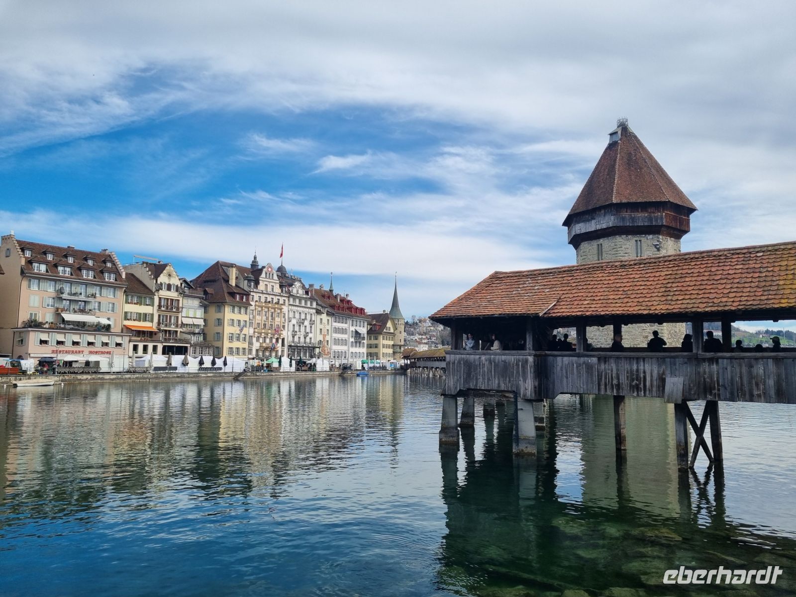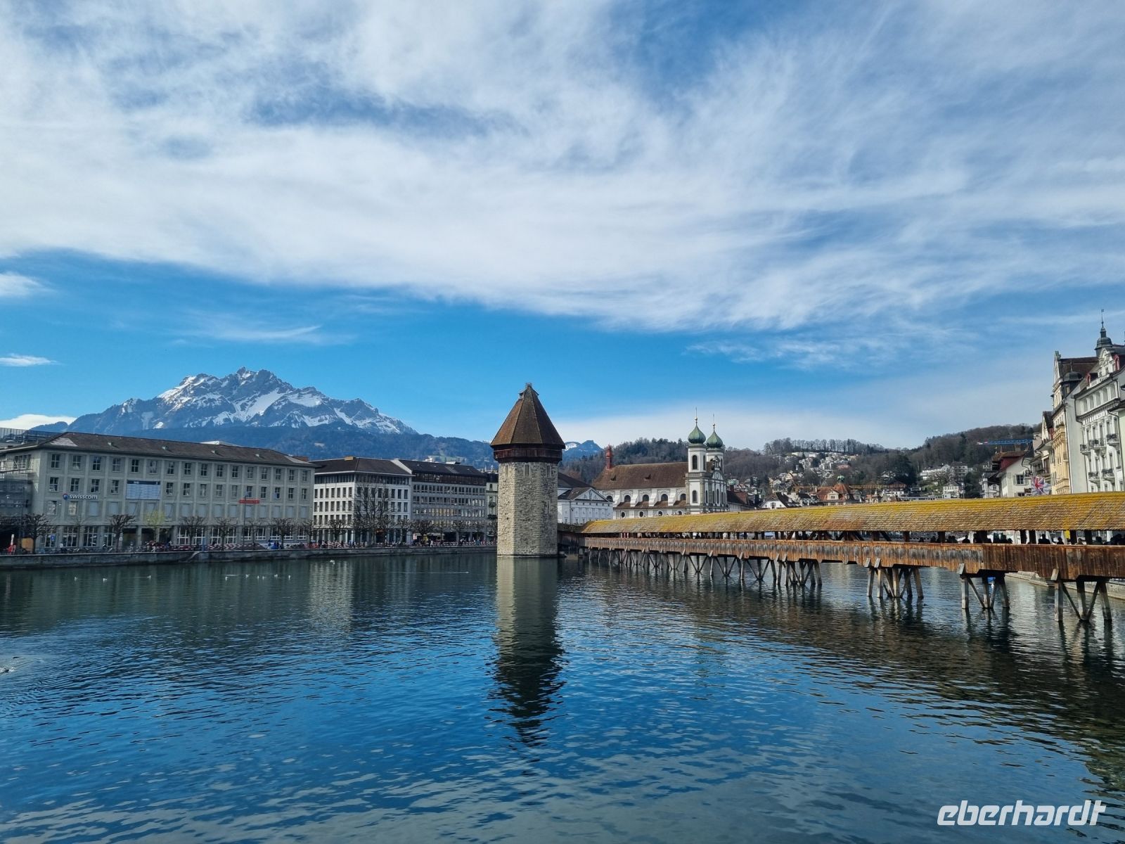 Der heutige Ausflugstag führte uns zunächst nach Luzern. Hier wurden wir bereits von zwei sympathischen Stadtführerinnen erwartet und gemeinsam mit ihnen lernten wir einen der schönsten und geschichtsträchtigsten Orte der Schweiz kennen. Entlang der Reuss sahen wir uns unter anderem die Kapellbrücke, die Jesuitenkirche und auch den wunderschönen historischen Stadtkern an. Anschließend konnten wir noch etwas individuell durch die Stadt schlendern, ehe uns unser Buschauffeur Frank zur Talstation der Pilatus-Bahn in Kriens chauffierte. Aufgrund des grandiosen Wetters war hier sehr viel los und wir waren demzufolge nicht die Einzigen, die auf den "Hausberg" Luzerns hinauf wollten. Der Pilatus hat seinen Namen wahrscheinlich von "Pileatus", der Bedeckte (mit Wolken), und wurde bis zum 17. Jahrhundert "Fräkmünt" genannt. Sein Name wird auch der Legende zugeschrieben, nach der der Leichnam des Pontius Pilatus in dem ehemaligen See auf der oberen Bründlenalp versenkt sei. Kaum zu glauben – hier oben konnten wir großartige Aussichten genießen, das war der Traum vieler unserer Gäste...! Verschiedene Wanderwege standen uns zwar im Winter aufgrund der Witterungsbedingungen nicht zur Verfügung, aber zumindest konnten wir beispielsweise die sogenannte "Drachengalerie" durchlaufen. Mit wunderschönen Eindrücken im Gepäck, ging es dann erneut mit der modernen cockpitähnlichen Kabinenseilbahn "Dragon Ride" innerhalb von nur dreieinhalb Minuten vom Pilatus-Kulm hinunter zum Fräkmüntegg. Wir hatten sogar zeitweise das Gefühl mit der Bahn zu fliegen! Weitere ca. 25 Minuten legten wir mit einer Umlaufbahn bis Kriens zurück. Zum Abendessen wurde uns heute im Hotel-Restaurant ein echtes Schweizer Spezialitäten-Menü serviert – eine kleine Trockenfleisch-Platte, Käsefondue und zum Abschluss ein fruchtiges Sorbet! Wir verzehrten immerhin ein echtes Schweizer Käsefondue, welches aus Weißwein, mindestens zwei verschiedenen Käsesorten sowie Kirschwasser besteht. Eine sehr gehaltvolle, allerdings sehr leckere Angelegenheit...!