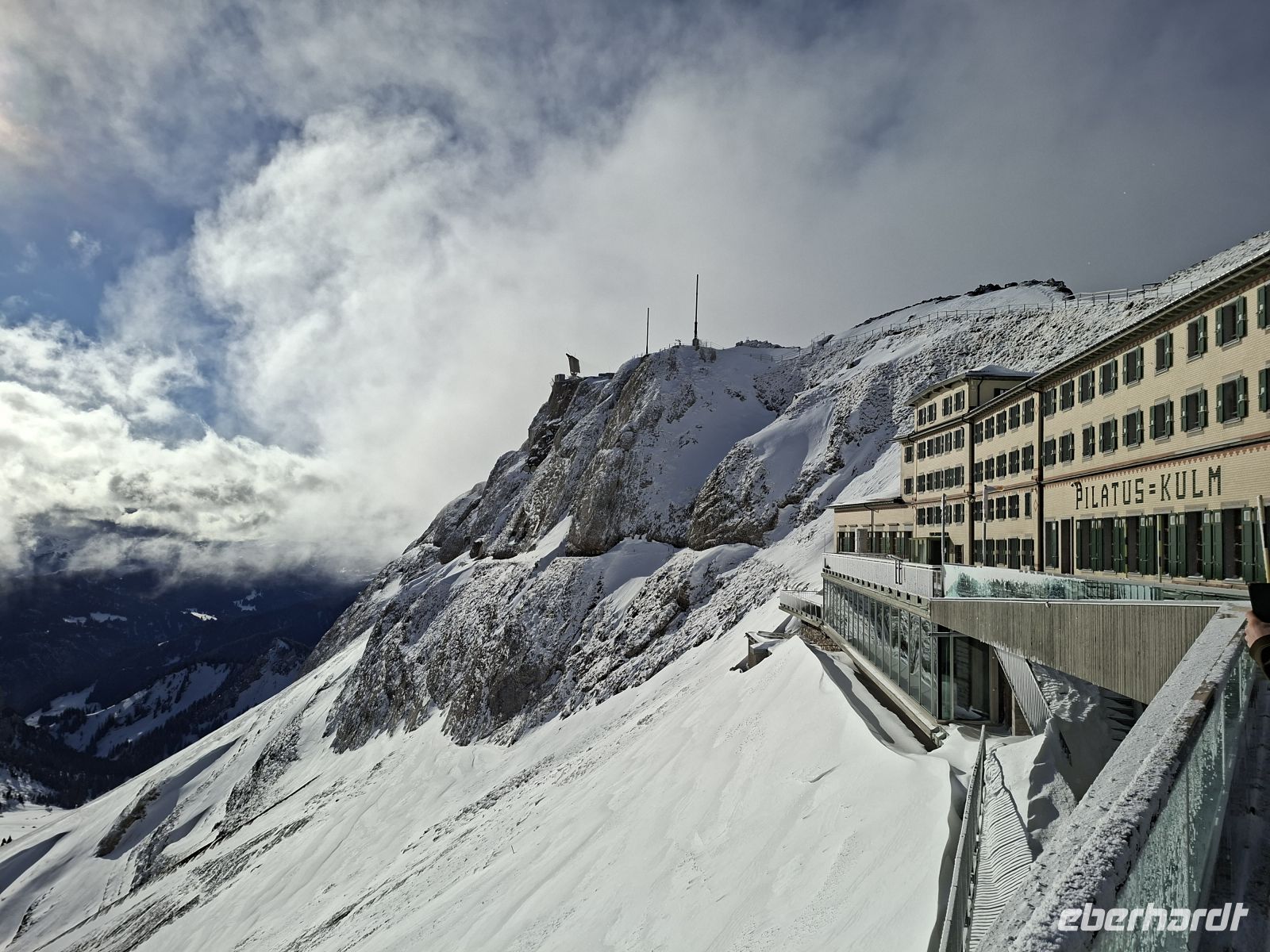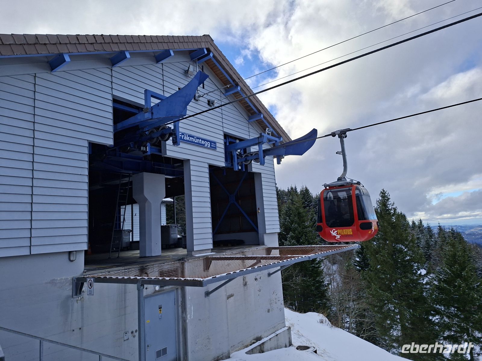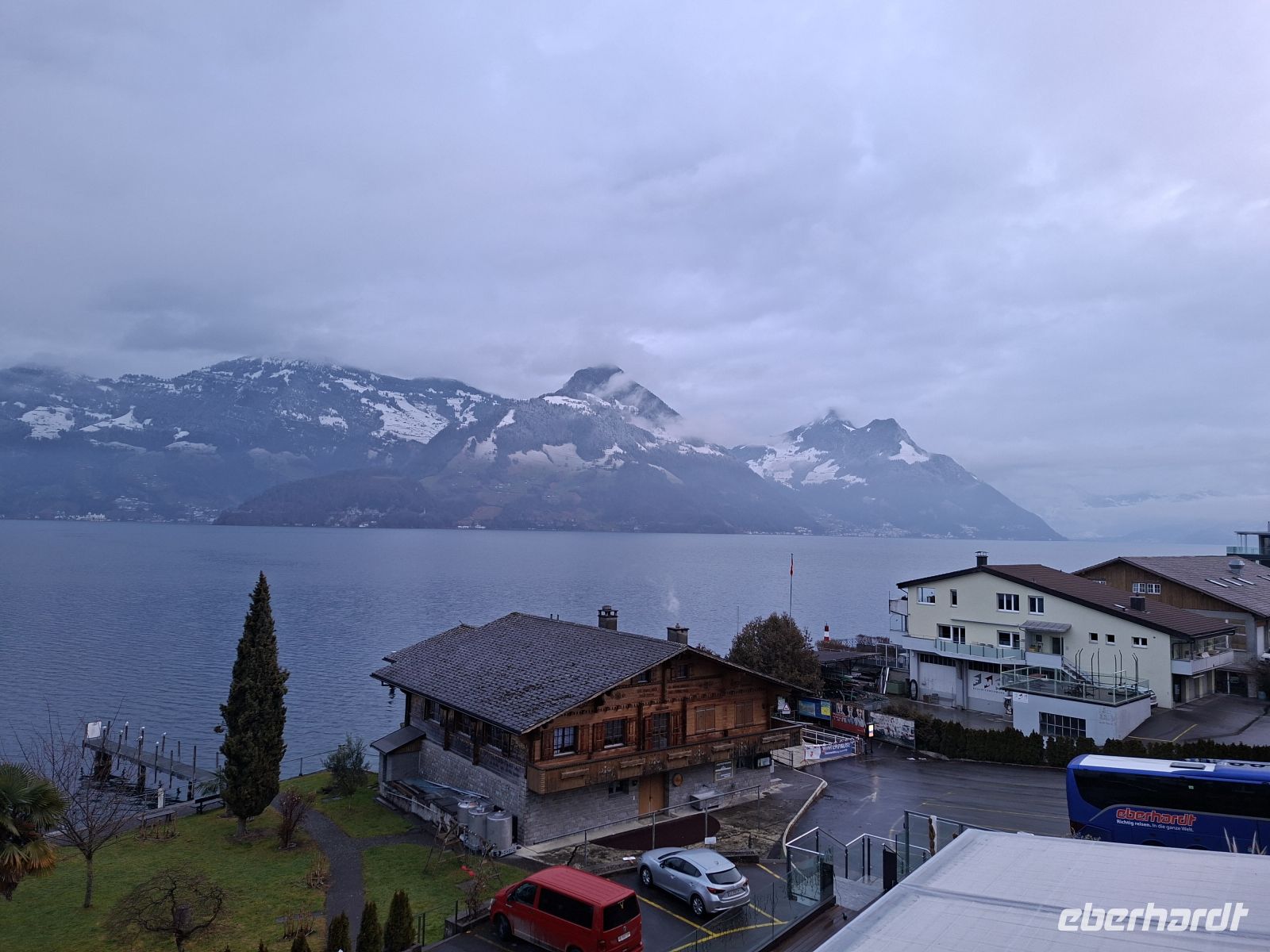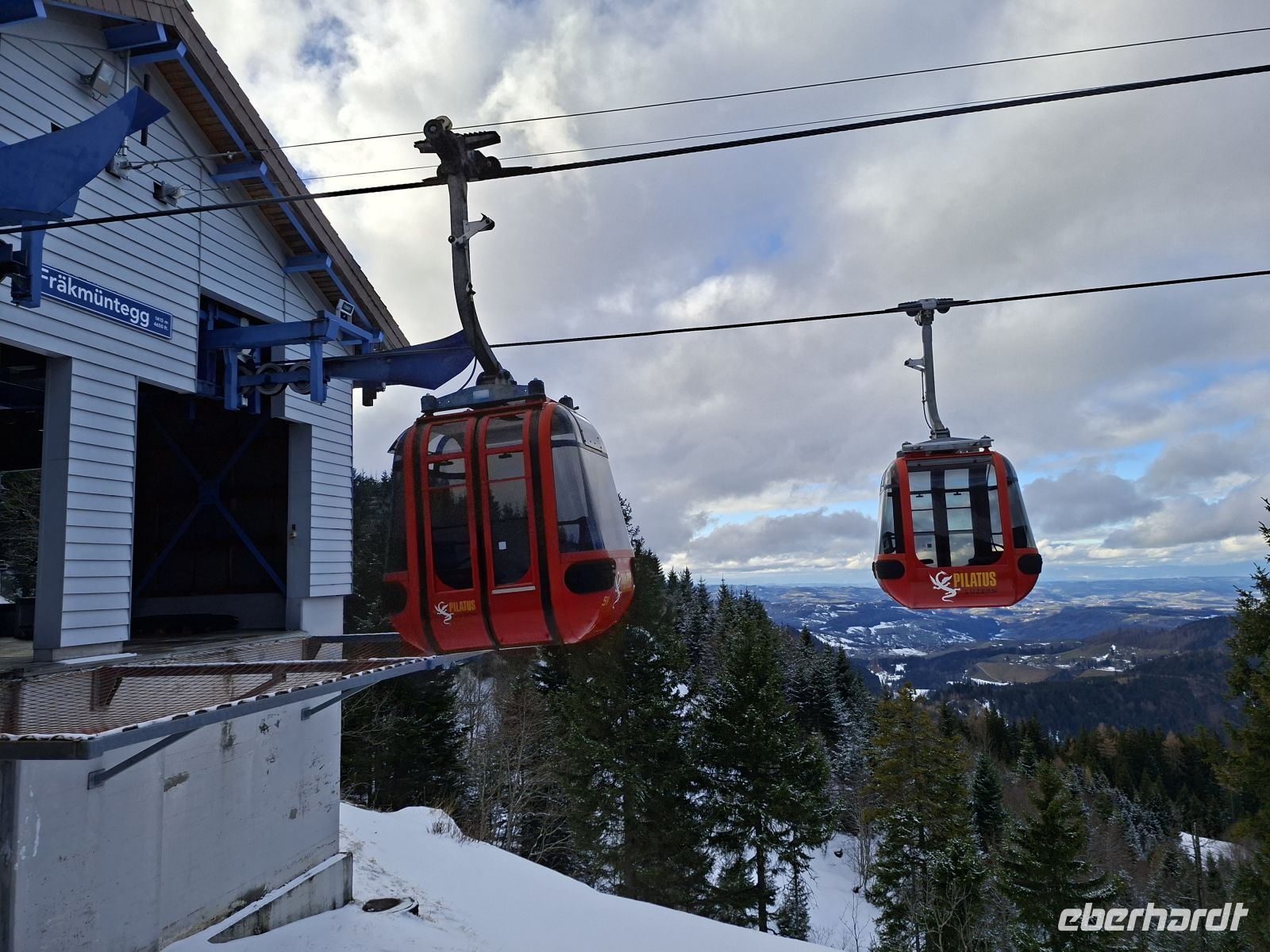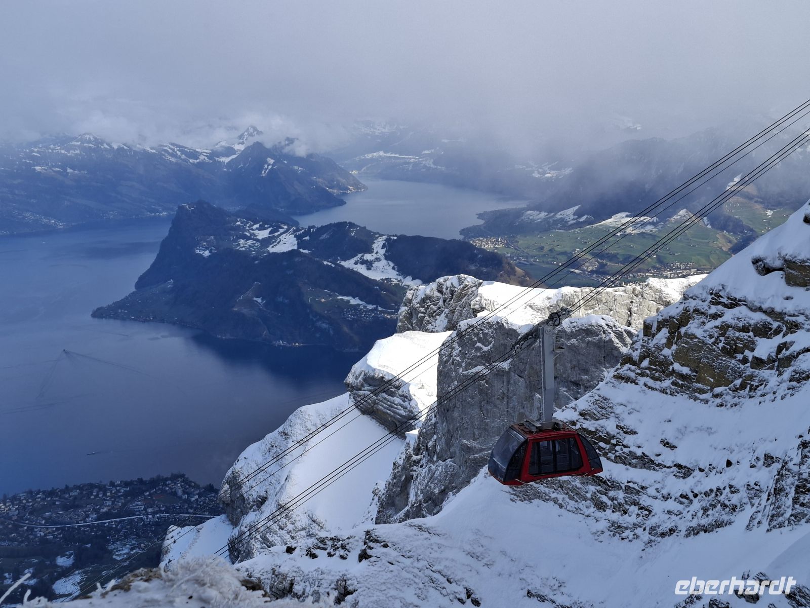Obwohl sich der Pilatus seinem Ruf als wolkenverhüllter Berg zeitweise alle Ehre machte, konnten wir immer wieder grandiose Ausblicke genießen, wenn sich die umliegenden Gipfel zeigten. Einige Wanderwege waren aufgrund der winterlichen Witterungsbedingungen zwar nicht zugänglich, doch zumindest konnten wir die beeindruckende „Drachengalerie“ durchqueren. Mit vielen wunderschönen Eindrücken im Gepäck ging es anschließend mit der modernen, cockpitähnlichen Kabinenseilbahn „Dragon Ride“ in nur dreieinhalb Minuten vom Pilatus Kulm hinunter zum Fräkmüntegg. Zeitweise hatten wir sogar das Gefühl, mit der Bahn zu fliegen. Weitere rund 25 Minuten legten wir mit einer Umlaufbahn bis nach Kriens zurück. Von dort aus brachte uns der Bus schließlich wieder zurück nach Beckenried.