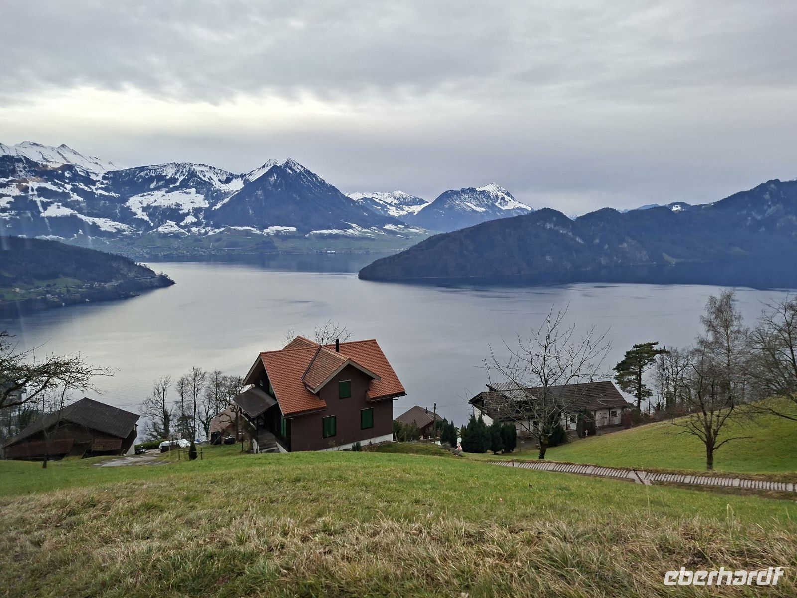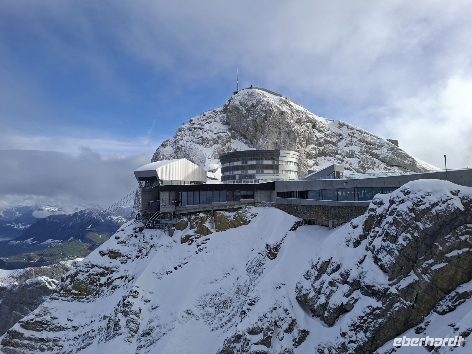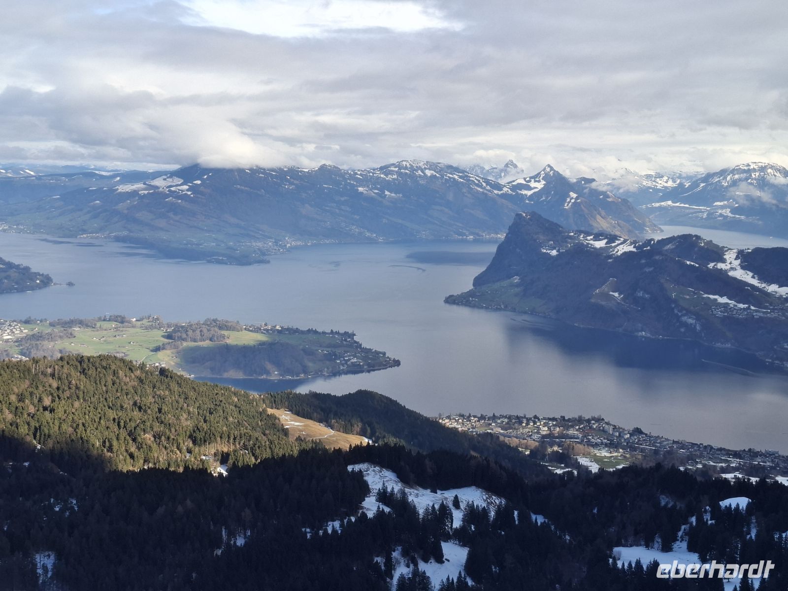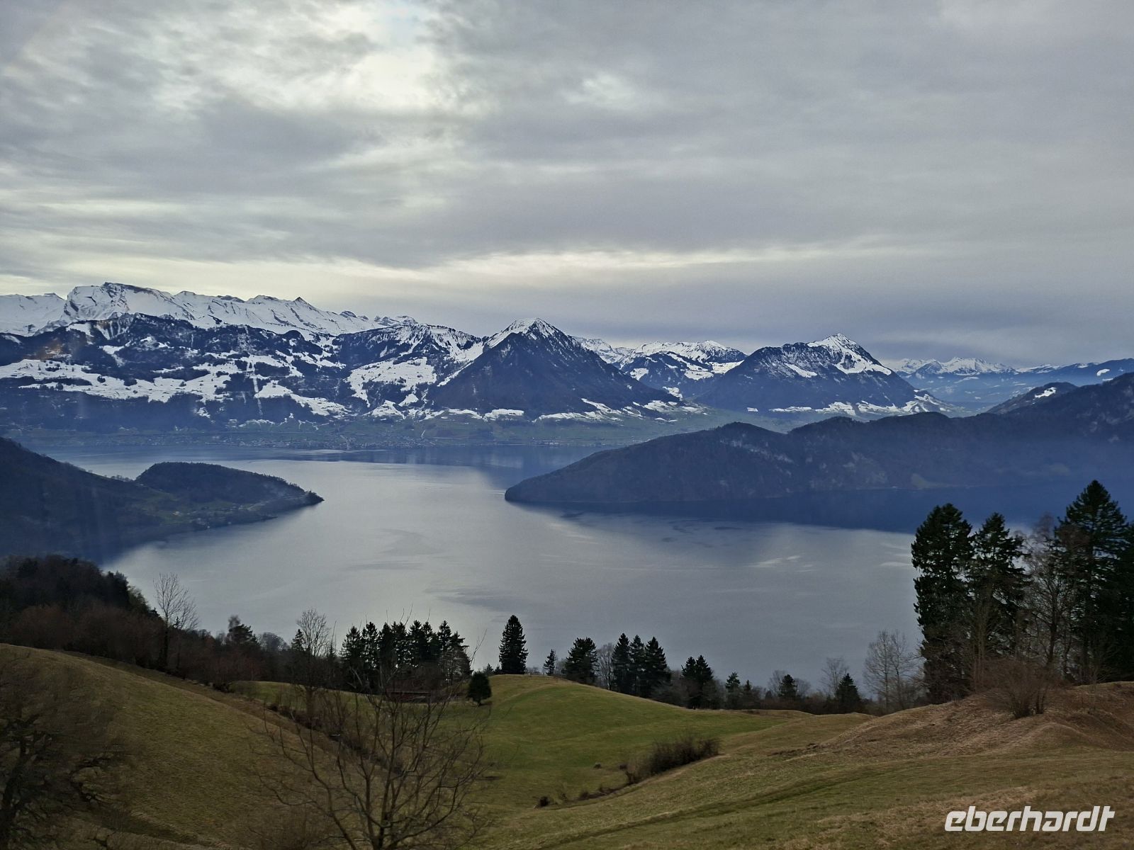 Obwohl sich der Pilatus seinem Ruf als wolkenverhüllter Berg zeitweise alle Ehre machte, konnten wir immer wieder grandiose Ausblicke genießen, wenn sich die umliegenden Gipfel zeigten. Einige Wanderwege waren aufgrund der winterlichen Witterungsbedingungen zwar nicht zugänglich, doch zumindest konnten wir die beeindruckende „Drachengalerie“ durchqueren. Mit vielen wunderschönen Eindrücken im Gepäck ging es anschließend mit der modernen, cockpitähnlichen Kabinenseilbahn „Dragon Ride“ in nur dreieinhalb Minuten vom Pilatus Kulm hinunter zum Fräkmüntegg. Zeitweise hatten wir sogar das Gefühl, mit der Bahn zu fliegen. Weitere rund 25 Minuten legten wir mit einer Umlaufbahn bis nach Kriens zurück. Von dort aus brachte uns der Bus schließlich wieder zurück nach Beckenried.