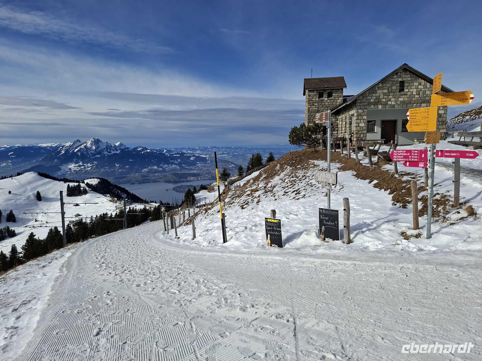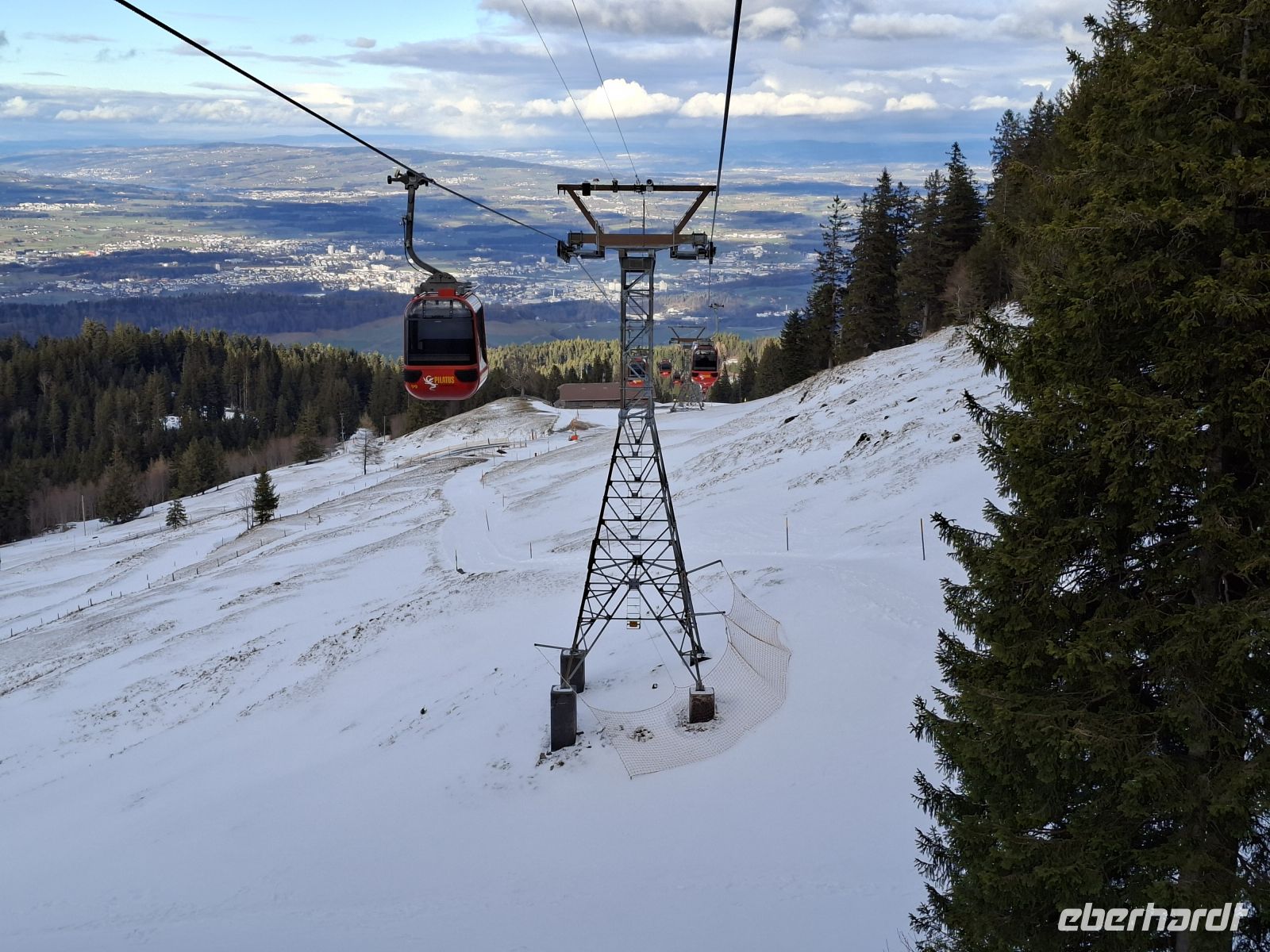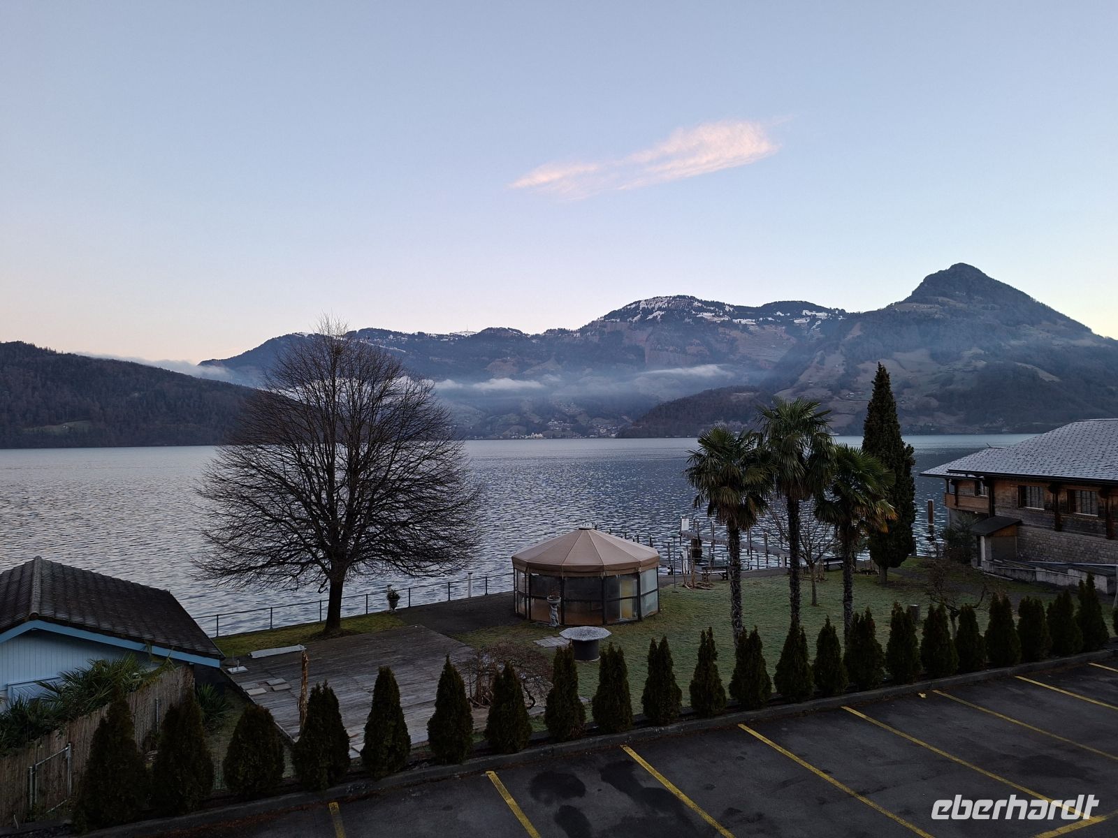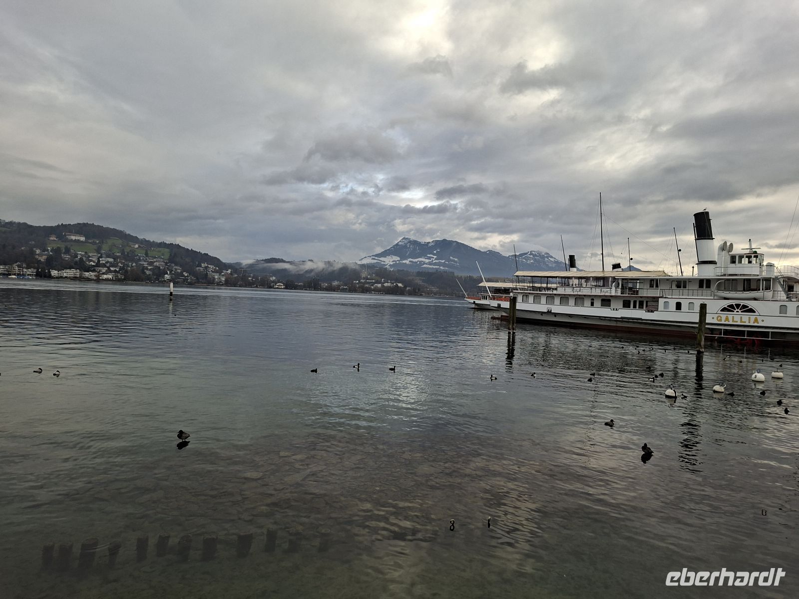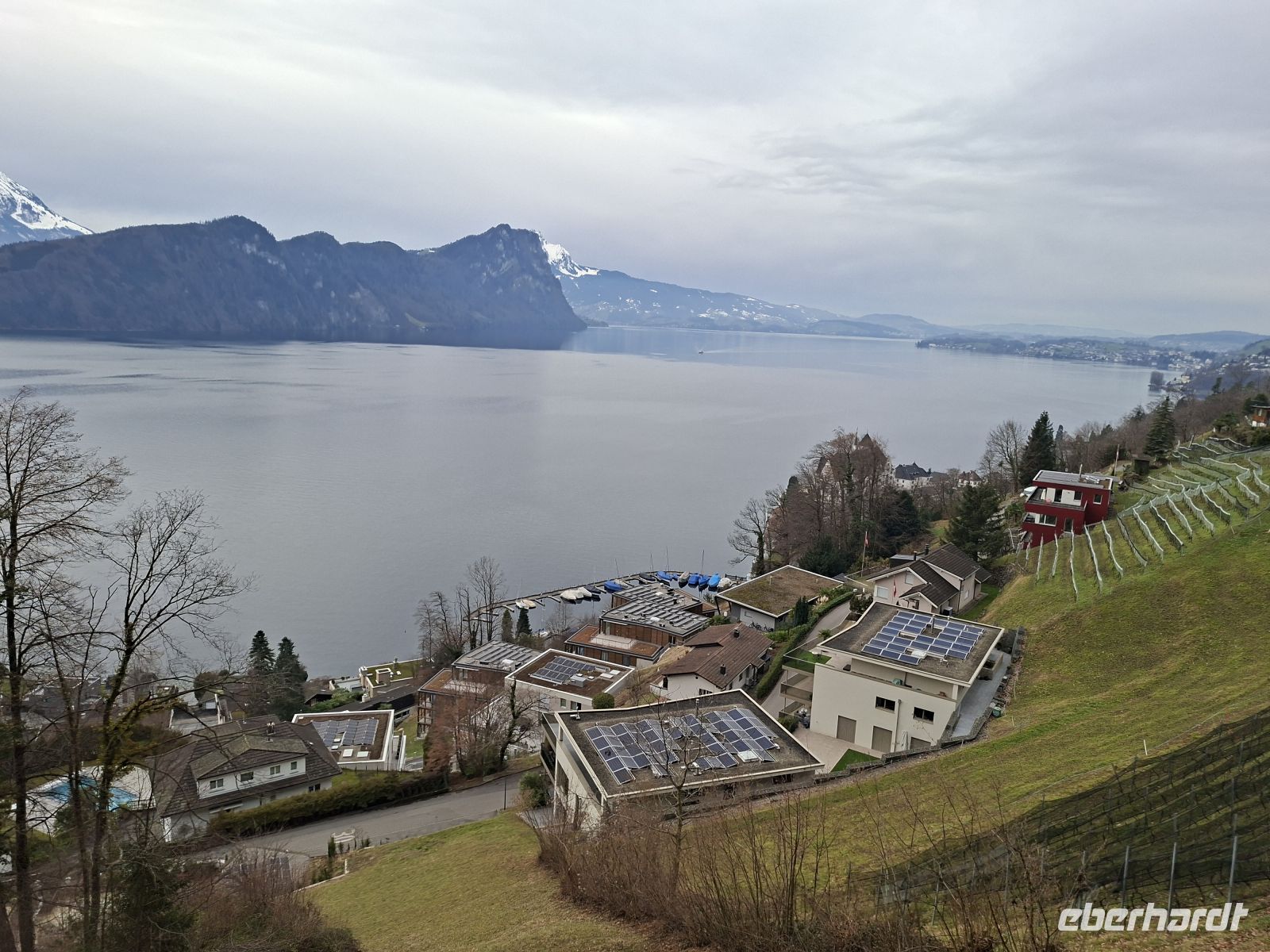 Obwohl sich der Pilatus seinem Ruf als wolkenverhüllter Berg zeitweise alle Ehre machte, konnten wir immer wieder grandiose Ausblicke genießen, wenn sich die umliegenden Gipfel zeigten. Einige Wanderwege waren aufgrund der winterlichen Witterungsbedingungen zwar nicht zugänglich, doch zumindest konnten wir die beeindruckende „Drachengalerie“ durchqueren. Mit vielen wunderschönen Eindrücken im Gepäck ging es anschließend mit der modernen, cockpitähnlichen Kabinenseilbahn „Dragon Ride“ in nur dreieinhalb Minuten vom Pilatus Kulm hinunter zum Fräkmüntegg. Zeitweise hatten wir sogar das Gefühl, mit der Bahn zu fliegen. Weitere rund 25 Minuten legten wir mit einer Umlaufbahn bis nach Kriens zurück. Von dort aus brachte uns der Bus schließlich wieder zurück nach Beckenried.