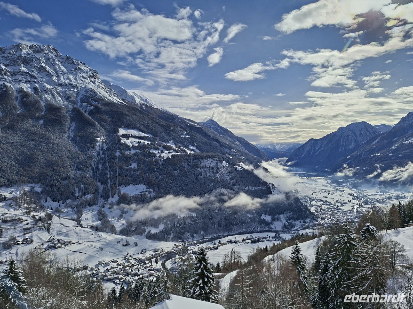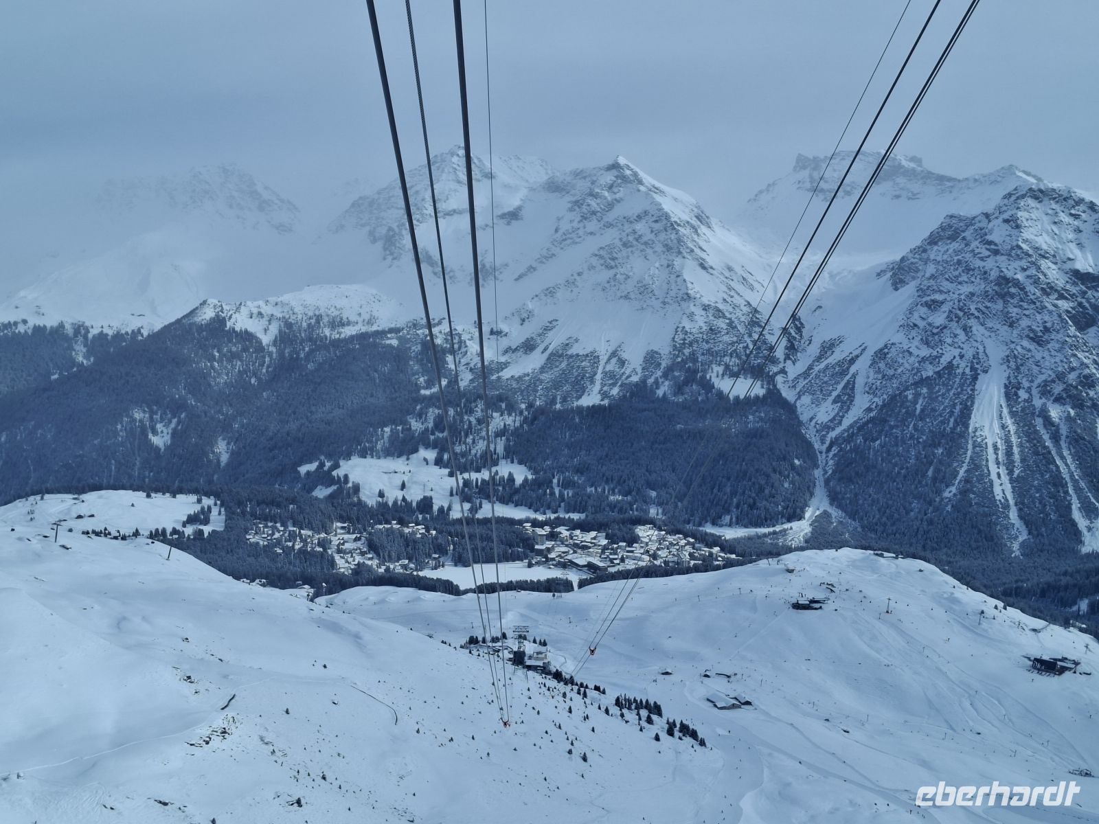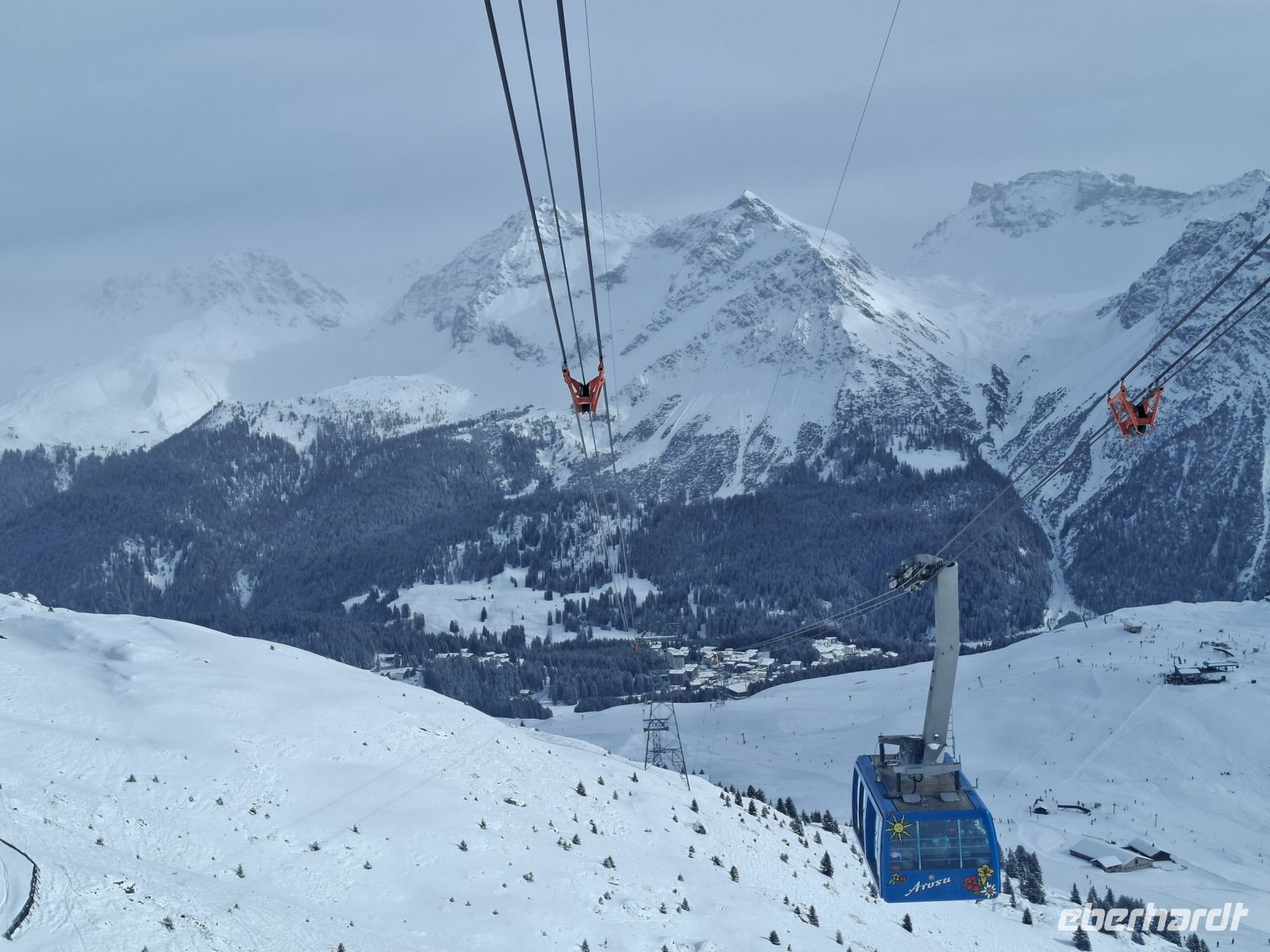 Nach dem Frühstück erreichten wir über die landschaftlich besonders reizvolle Strecke der Lenzerheide die Stadt Chur, den Hauptort des Kantons Graubünden. Dort bot sich uns zunächst die Gelegenheit, durch die älteste städtische Siedlung der Schweiz zu flanieren. Die verwinkelten Gassen sowie die eindrucksvollen Gebäude aus dem 15. bis 17. Jahrhundert vermittelten einen lebendigen Eindruck der langen Geschichte der Stadt. Am Bahnhof von Chur stiegen wir anschließend in die Rhätische Bahn ein, um auf der Arosa-Linie durch die anmutige Landschaft des Schanfigg nach Arosa zu fahren. Die Zugfahrt führte über spektakuläre Viadukte und durch tief verschneite Ortschaften hinauf in den bekannten Kur- und Wintersportort. In Arosa angekommen, ging es zunächst mit der Seilbahn auf den Gipfel des 2.653 Meter hohen Weisshorns. Von hier aus eröffnete sich uns zeitweise ein fantastischer Panoramablick auf die Welt der Bündner Alpen, denn auch heute zeigte sich der Wettergott immer mal wieder von seiner freundlichen Seite. Schnee, Berge und klare Höhenluft ließen uns diesen Moment in vollen Zügen genießen. Am Nachmittag blieb sogar noch etwas Zeit für einen gemütlichen Spaziergang durch den Wintersportort Arosa, bevor wir mit der Rhätischen Bahn nach Chur zurückkehrten. Dort wartete bereits unser Bus, der uns anschließend wieder nach Tiefencastel brachte.