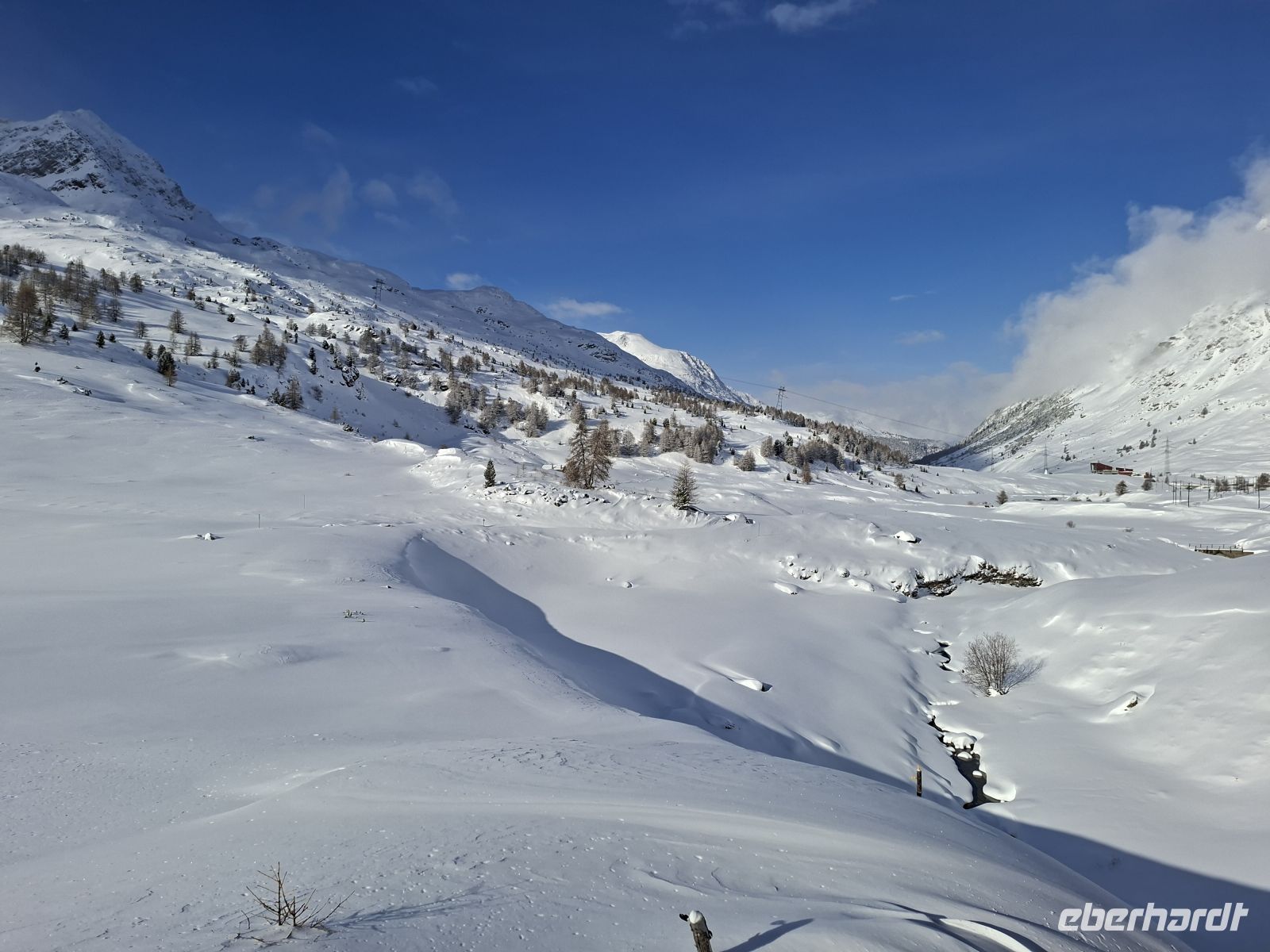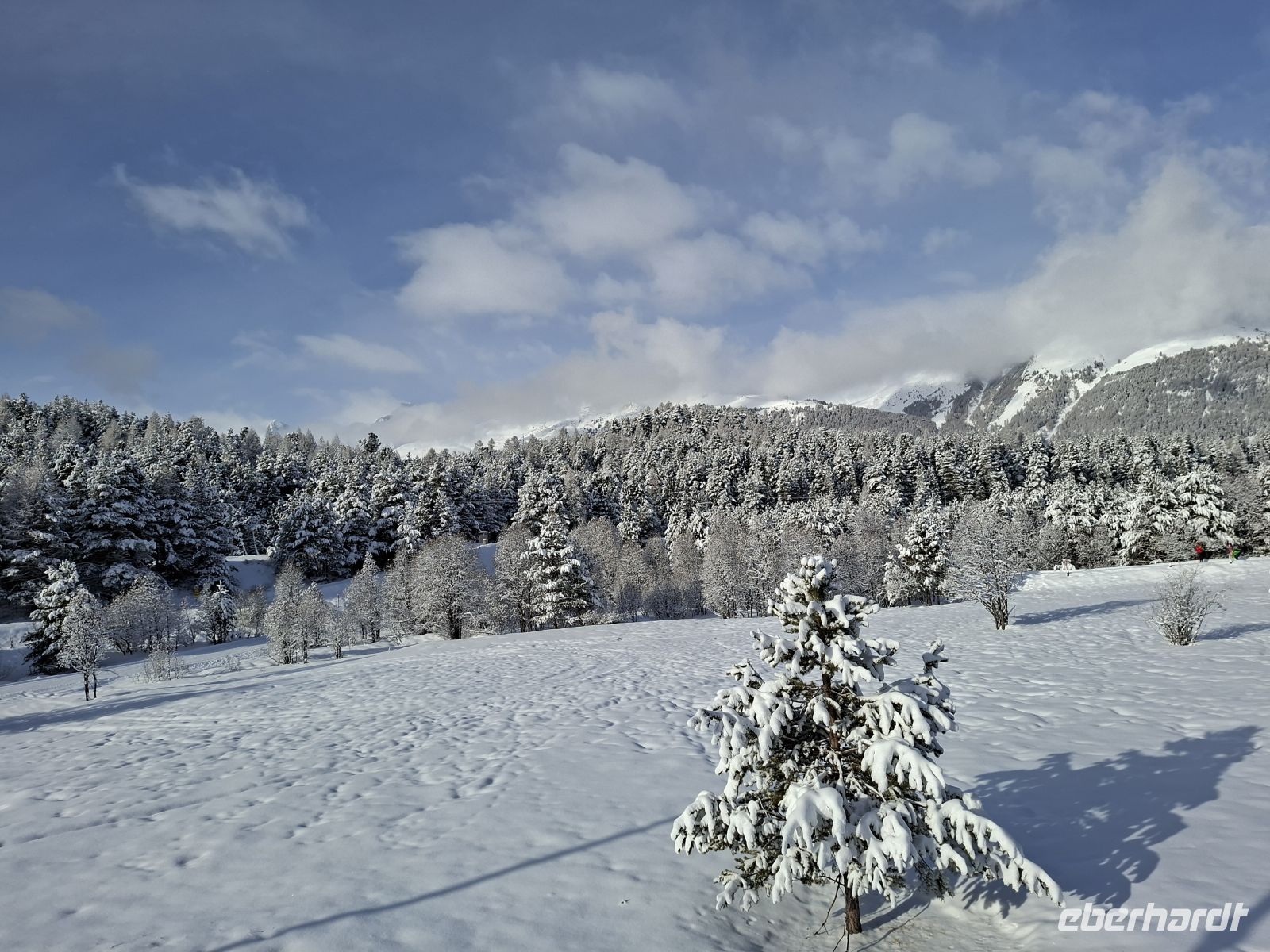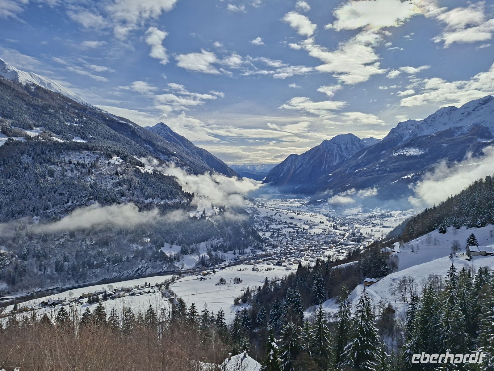Nach dem Frühstück erreichten wir über die landschaftlich besonders reizvolle Strecke der Lenzerheide die Stadt Chur, den Hauptort des Kantons Graubünden. Dort bot sich uns zunächst die Gelegenheit, durch die älteste städtische Siedlung der Schweiz zu flanieren. Die verwinkelten Gassen sowie die eindrucksvollen Gebäude aus dem 15. bis 17. Jahrhundert vermittelten einen lebendigen Eindruck der langen Geschichte der Stadt. Am Bahnhof von Chur stiegen wir anschließend in die Rhätische Bahn ein, um auf der Arosa-Linie durch die anmutige Landschaft des Schanfigg nach Arosa zu fahren. Die Zugfahrt führte über spektakuläre Viadukte und durch tief verschneite Ortschaften hinauf in den bekannten Kur- und Wintersportort. In Arosa angekommen, ging es zunächst mit der Seilbahn auf den Gipfel des 2.653 Meter hohen Weisshorns. Von hier aus eröffnete sich uns zeitweise ein fantastischer Panoramablick auf die Welt der Bündner Alpen, denn auch heute zeigte sich der Wettergott immer mal wieder von seiner freundlichen Seite. Schnee, Berge und klare Höhenluft ließen uns diesen Moment in vollen Zügen genießen. Am Nachmittag blieb sogar noch etwas Zeit für einen gemütlichen Spaziergang durch den Wintersportort Arosa, bevor wir mit der Rhätischen Bahn nach Chur zurückkehrten. Dort wartete bereits unser Bus, der uns anschließend wieder nach Tiefencastel brachte.