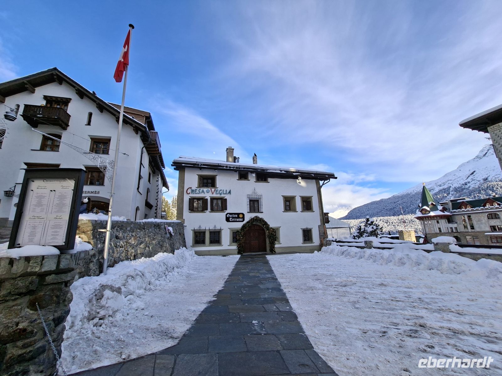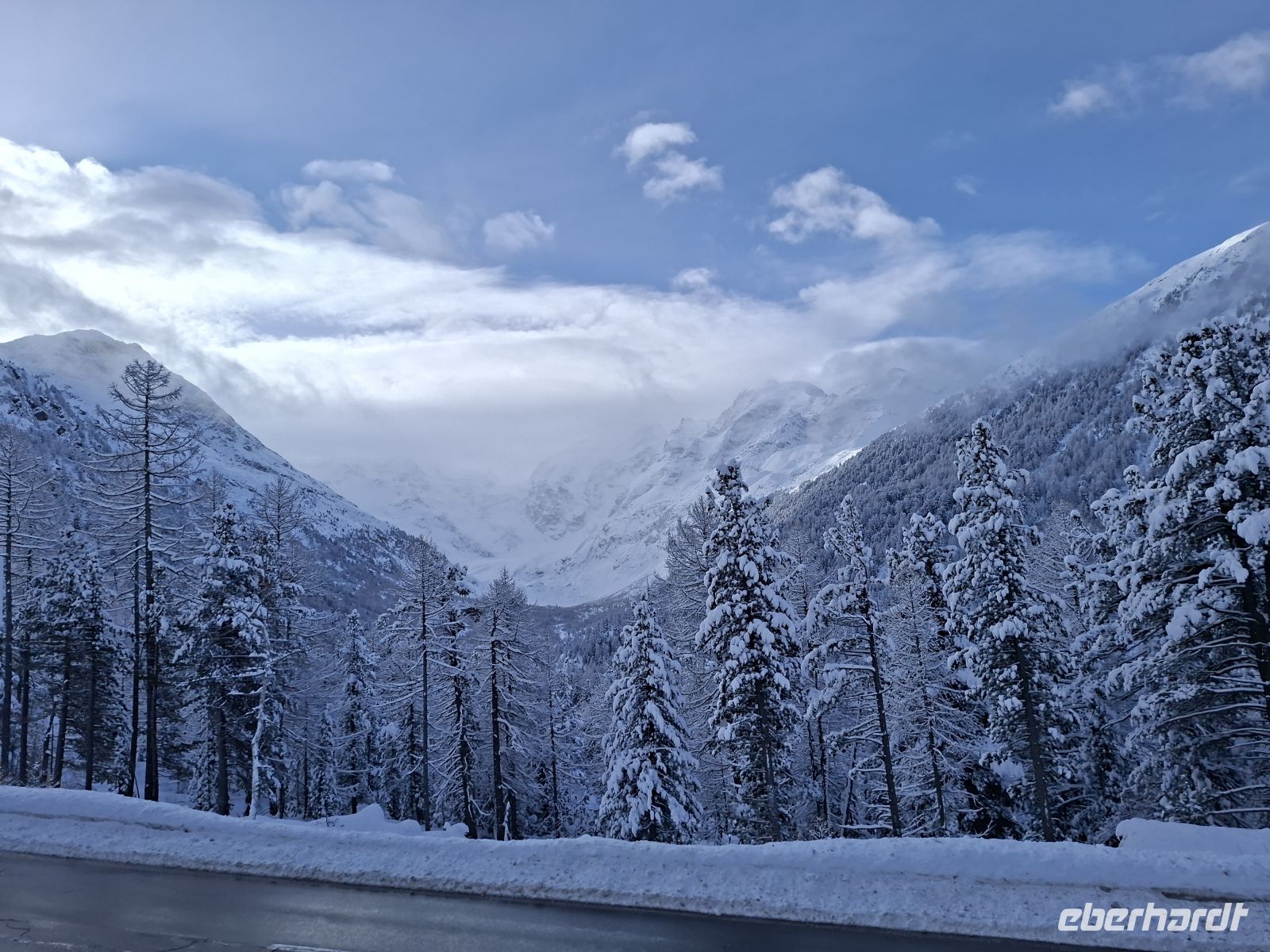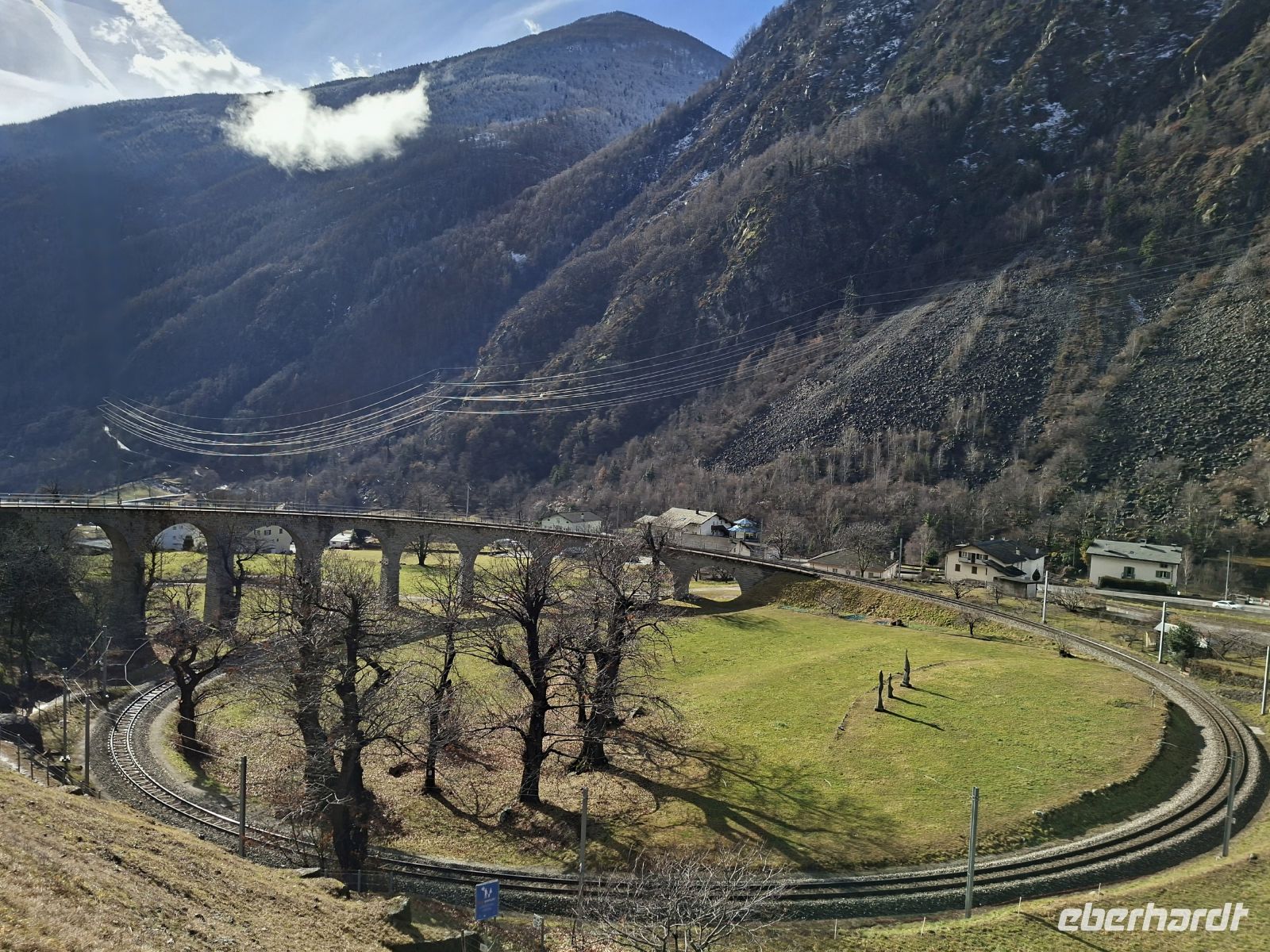 Heute unternahmen wir nach einem ausgiebigen Frühstück eine erneut beeindruckende Zugfahrt. Am Bahnhof von Tiefencastel bestiegen wir nicht nur den Panoramawagen der Rhätischen Bahn, sondern reisten im originalen Bernina-Express durch die faszinierende Schweizer Bergwelt. Wir befanden uns jetzt in der immerhin einzigen Schweizerbahn, die seit ihrer Fertigstellung im Jahre 1910 offen über die Alpen führt. Zunächst ging es entlang der einzigartigen Albula-Linie ins Oberengadin, wenig später vorbei am Morteratsch-Gletscher bis hinauf zu den Gletschern des Berninapasses auf 2.253 m ü. d. M., dem höchsten Punkt unserer Reise. Weiter ging es serpentinenartig hinunter auf 553 m ü. d. M., ins schweizerische Grenzdorf Campocologno. Der Höhenunterschied zwischen Ospizio Bernina und Tirano beträgt immense 1.800 Meter, die Horizontaldistanz misst nämlich nur etwa 20 Kilometer. Diese Höhendifferenz wird absolut ohne Zahnrad-Strecken überwunden – trotz Steigungen von bis zu 70o/oo! Auch die Wahl der Linienführung ist sehr raffiniert und ermöglicht nicht nur die Überwindung der großen Höhenunterschiede, sie eröffnete uns auch immer wieder atemberaubende Ausblicke auf eine grandiose Bergwelt, auf zahlreiche Gletscher und imposante Täler. Nach einer reichlich 3-stündigen Fahrt erreichte unser Bernina-Express das milde Puschlav bzw. das italienische Tirano im Veltlin, wo Andreas mit dem Bus bereits auf uns wartete und wir die Rückfahrt gen Norden antraten. Wie versprochen, legten wir auf der Rückfahrt auch ein paar tolle Foto-Stopps ein, denn während unserer Bahnfahrt am Vormittag durften wir leider nicht aussteigen! Nach nur wenigen Minuten Fahrtzeit sollte das berühmte Kreisviadukt von Brusio unser erstes Ziel sein, denn dort erlebt man eine wahre Einzigartigkeit – der Bernina-Express beschreibt hier nämlich eine über 107 Meter lange Schleife und zählt zu den gigantischsten und meistfotografierten Bauwerken auf dem Netz der Rhätischen Bahn. Diese 360-Grad-Kehre bringt wertvolle Höhenmeter und das ist ein Griff in die Trickkiste der Bahnbauer, der sonst nur bei Kehrtunnels angewendet wird. Wir warteten geduldig auf einen Zug, damit unser Foto perfekt wurde – für ein tolles Eisenbahn-Foto tut man doch so einiges...! Mit schönen Bildern im Gepäck ging es weiter zum Lago di Poschiavo hinab und durch die verschiedenen Ortschaften des Val Poschiavo, einem italienisch-sprachigen Südtal des Kantons Graubünden. Danach erreichten wir die Bernina-Passstraße, der Verbindung zwischen dem Puschlav im Süden und dem Engadin im Norden. Nach einem kurzen Aufenthalt auf dem Bernina-Pass ging es am Nachmittag in den mondänen Wintersportort St. Moritz im Mittelpunkt des Oberengadins. Wir flanierten durch den durch luxuriöse Bauten und vornehme Geschäfte geprägten Ortsteil St. Moritz-Dorf bzw. erfuhren auch, dass St. Moritz die Wiege des Ende des 19. Jahrhunderts einsetzenden alpinen Wintertourismus war. Das unumstrittene Wahrzeichen ist der 33 Meter hohe „Schiefe Turm“, der Rest einer alten Kirche, der erstmals Mitte des 12. Jahrhunderts urkundlich erwähnt wurde. Am frühen Abend kehrten wir über den Julierpass zum Hotel zurück.
