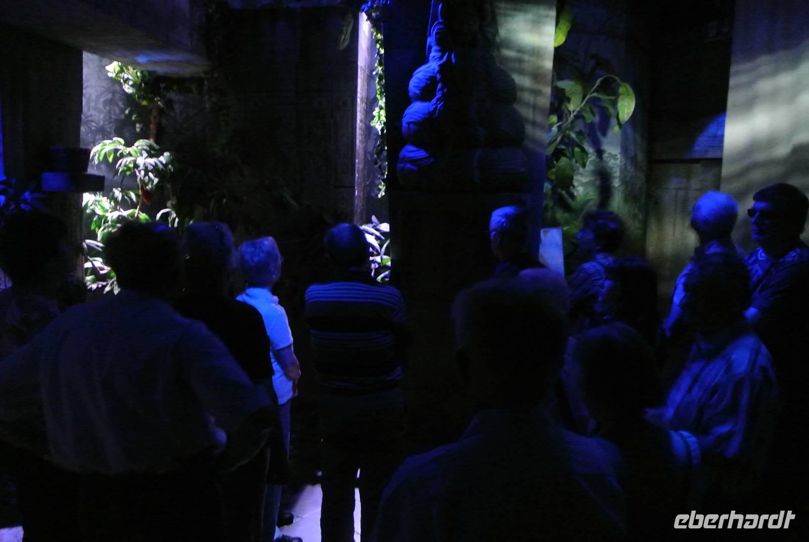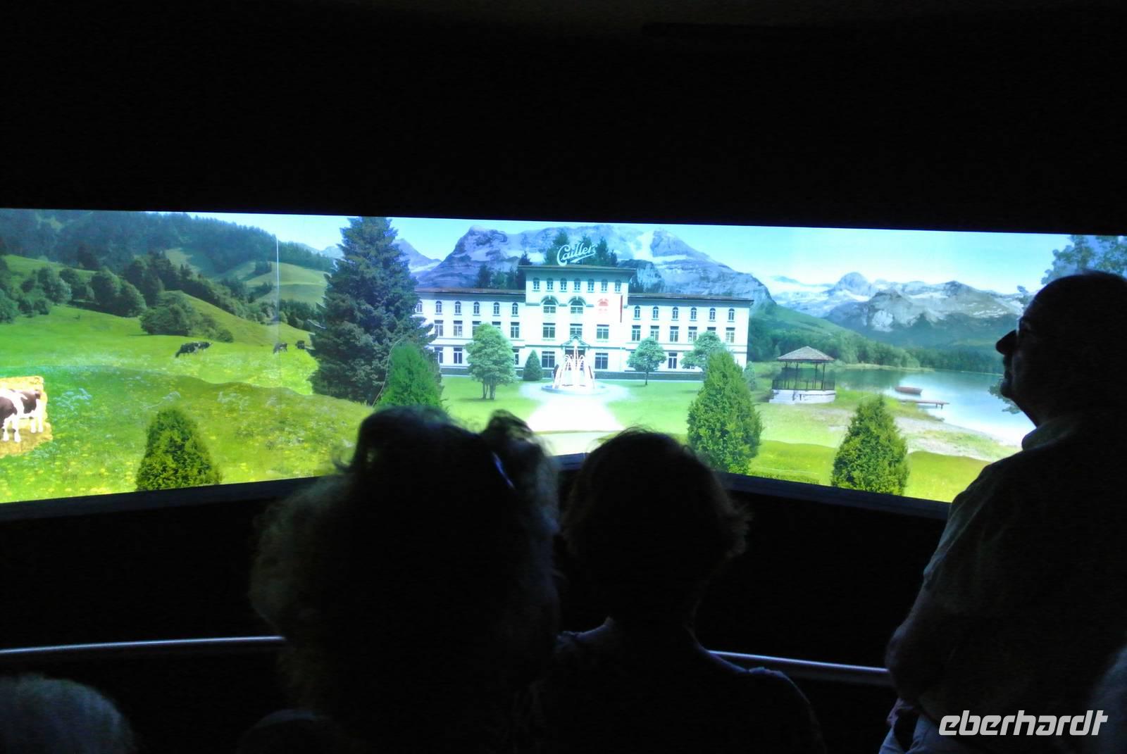 Ab 10:30 Uhr begann eine faszinierende Führung durch das Schokoladenmuseum. In einer sehr gut inszenierten Show mit wirkungsvollen Licht- und Toneffekten wurde die Geschichte von der Kakaobohne bis Schokolade eindrucksvoll präsentiert. So erfuhren wir u.a., dass bei den Inkas die Kakaobohnen mehr Wert war als Gold. Die besondere Wirkung und große Bedeutung des Kakaos und Schokolade in den letzten Jahrhunderten wurde uns genauso spannend erklärt wie die Entwicklung dieses süßen Lasters bis heute. Dabei wurde auch die wechselvolle Entstehung des Imperiums Nestle und Cailler aufgezeigt.